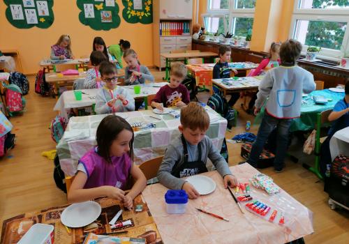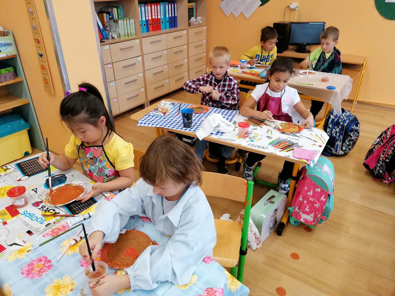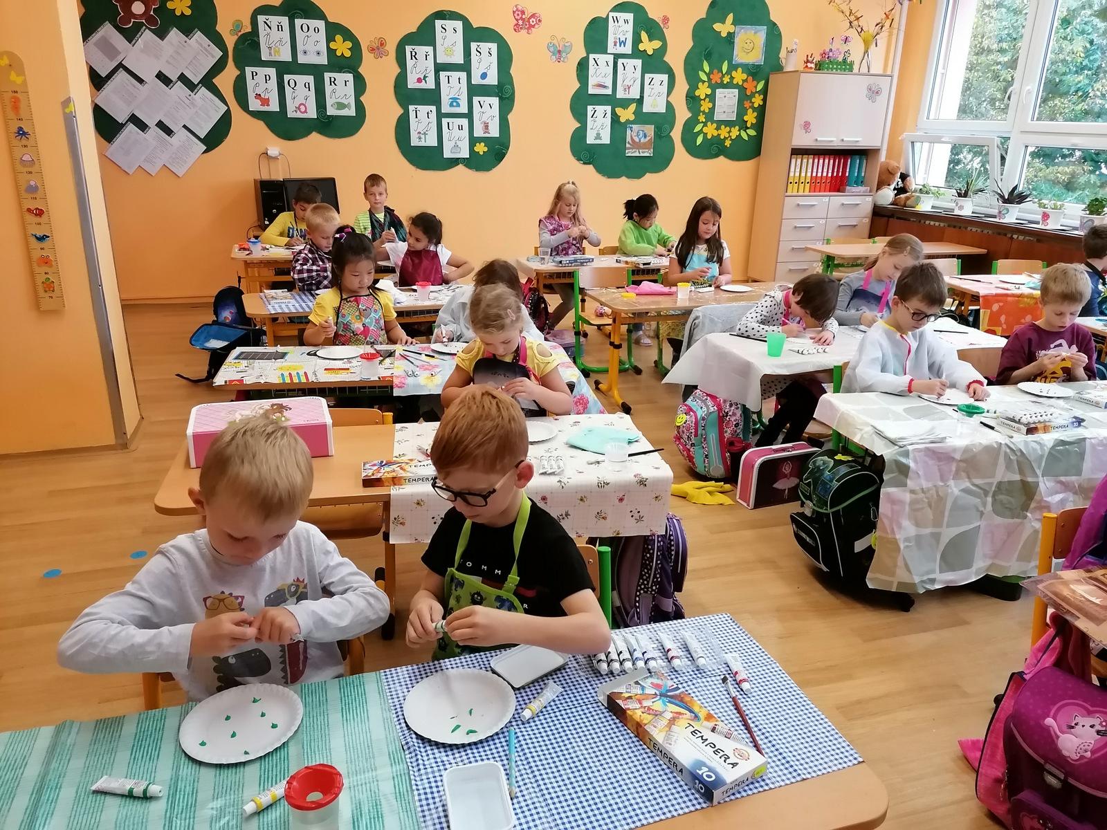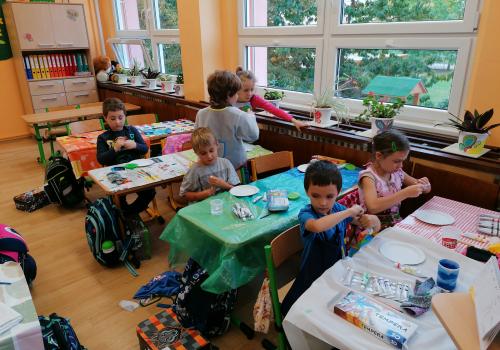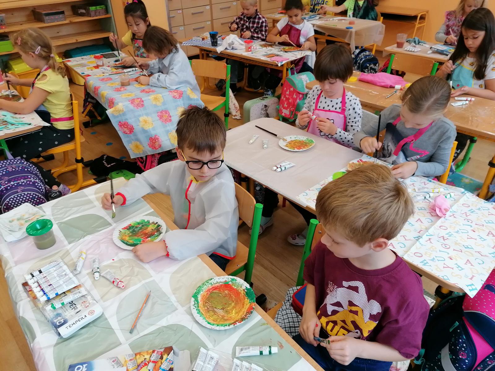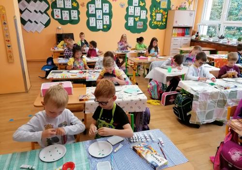 Papírový talíř, podzimní barvičky a stromek je tu.