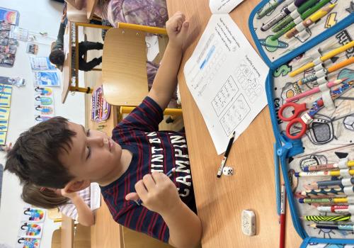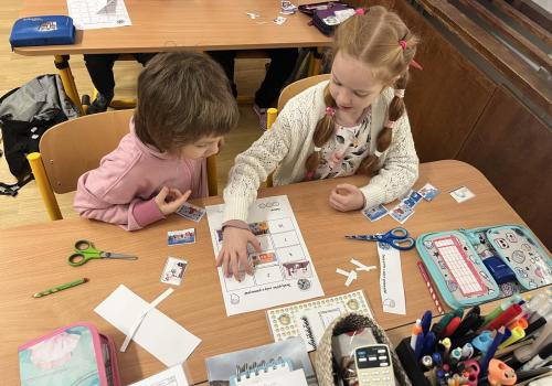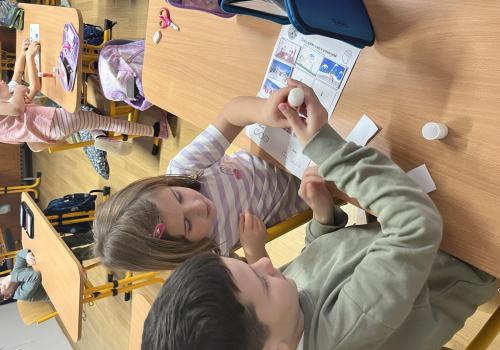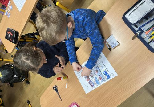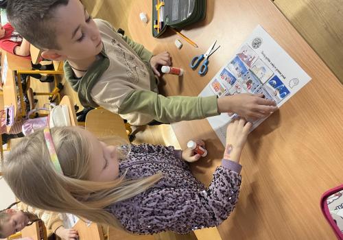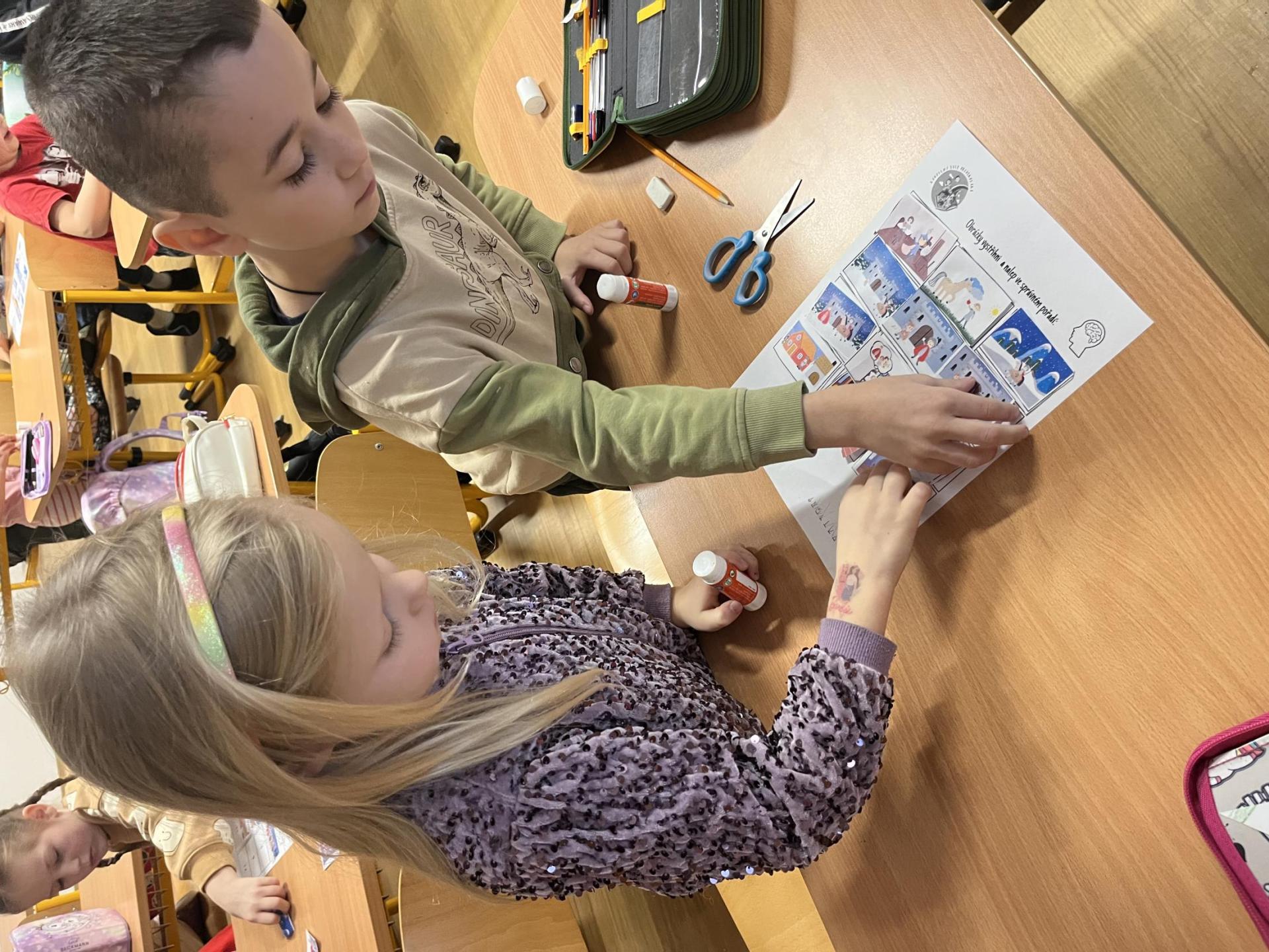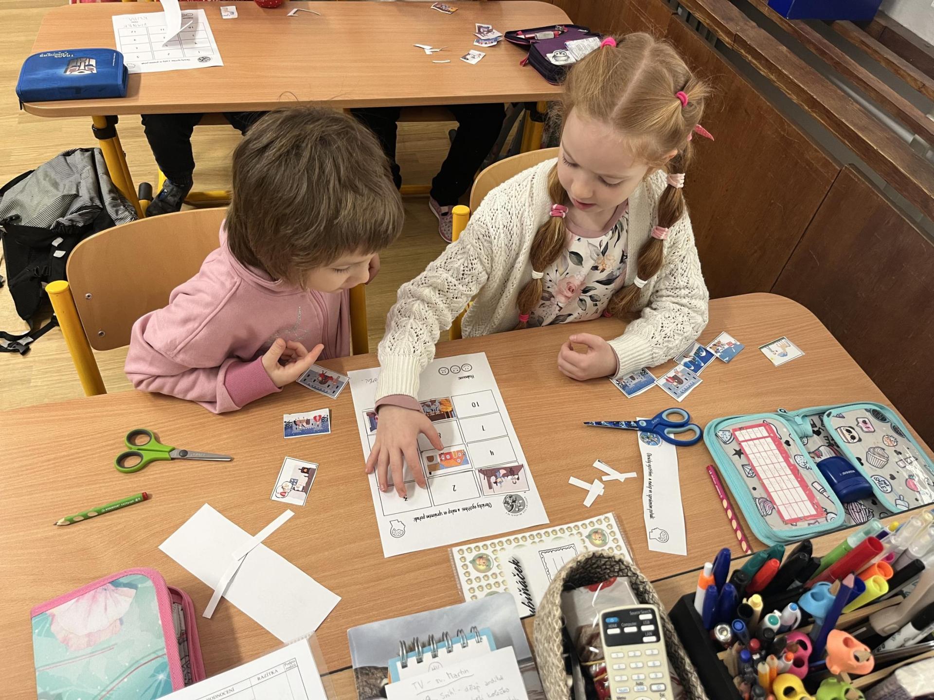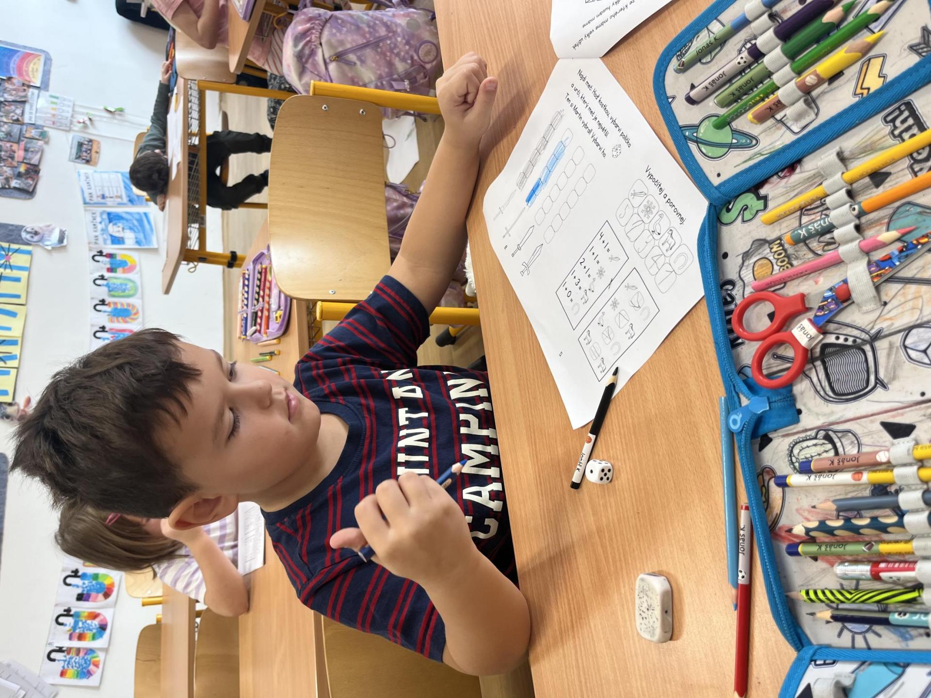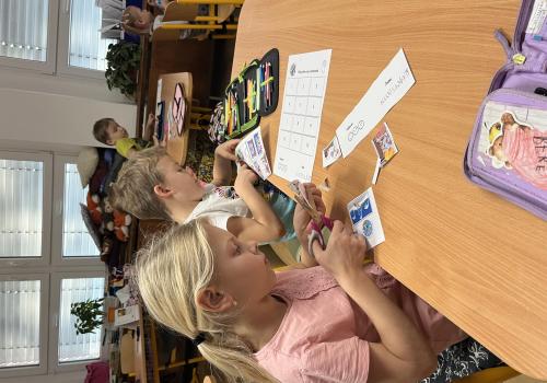 Děti pracovaly s tematickou knížečkou, díky které jsme si pověděli, kdo byl svatý Martin a jaké tradice se k jeho svátku vážou. Na pracovních listech jsme procvičili počítání, porovnávání, slabiky, písmena i grafomotoriku. Pracovali jsme také ve dvojicích, kde děti trénovaly spolupráci. Při vyprávění legendy o svatém Martinovi skládaly obrázky podle pořadí a procvičily si tak posloupnost děje. V tělesné výchově jsme si hráli na koníky, překonávali překážky a nechyběla ani hra na sníh a oblevu, kdy děti tvořily „andělíčky“ nebo skákaly jako kapky deště. Ke konci vyučování nám přišli zazpívat žáci písničky, které se pojí k tomuto svátku. Tímto ještě jednou děkujeme paní učitelce Jiskrové a žákům z 5.A.