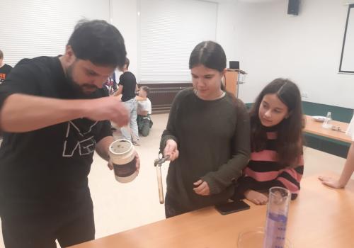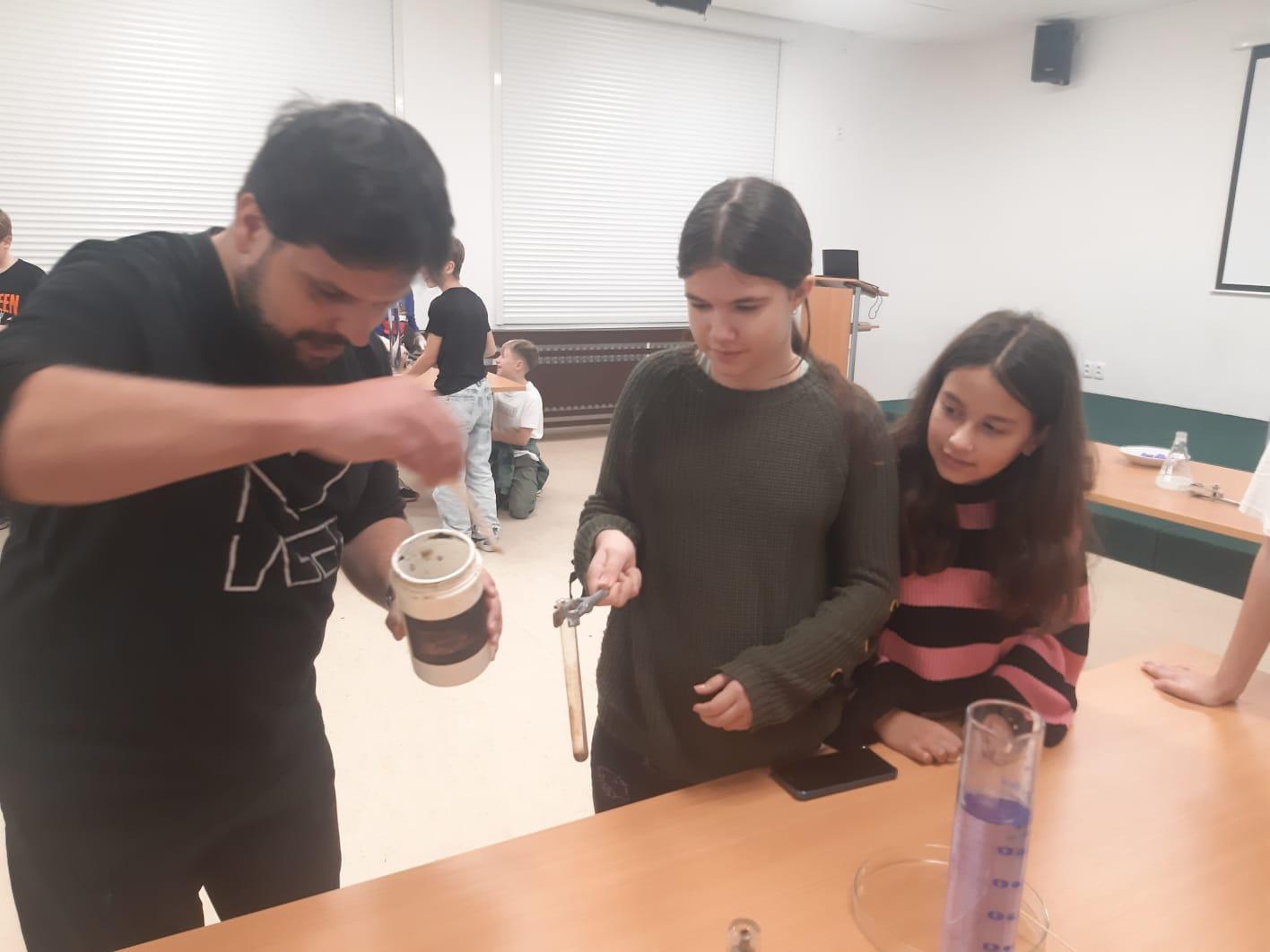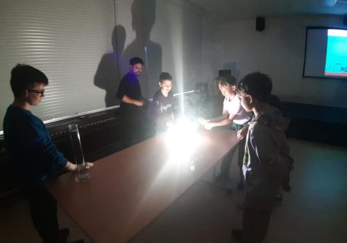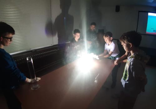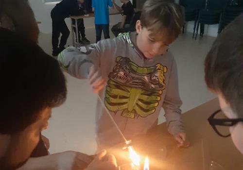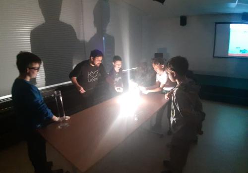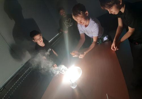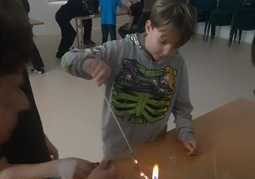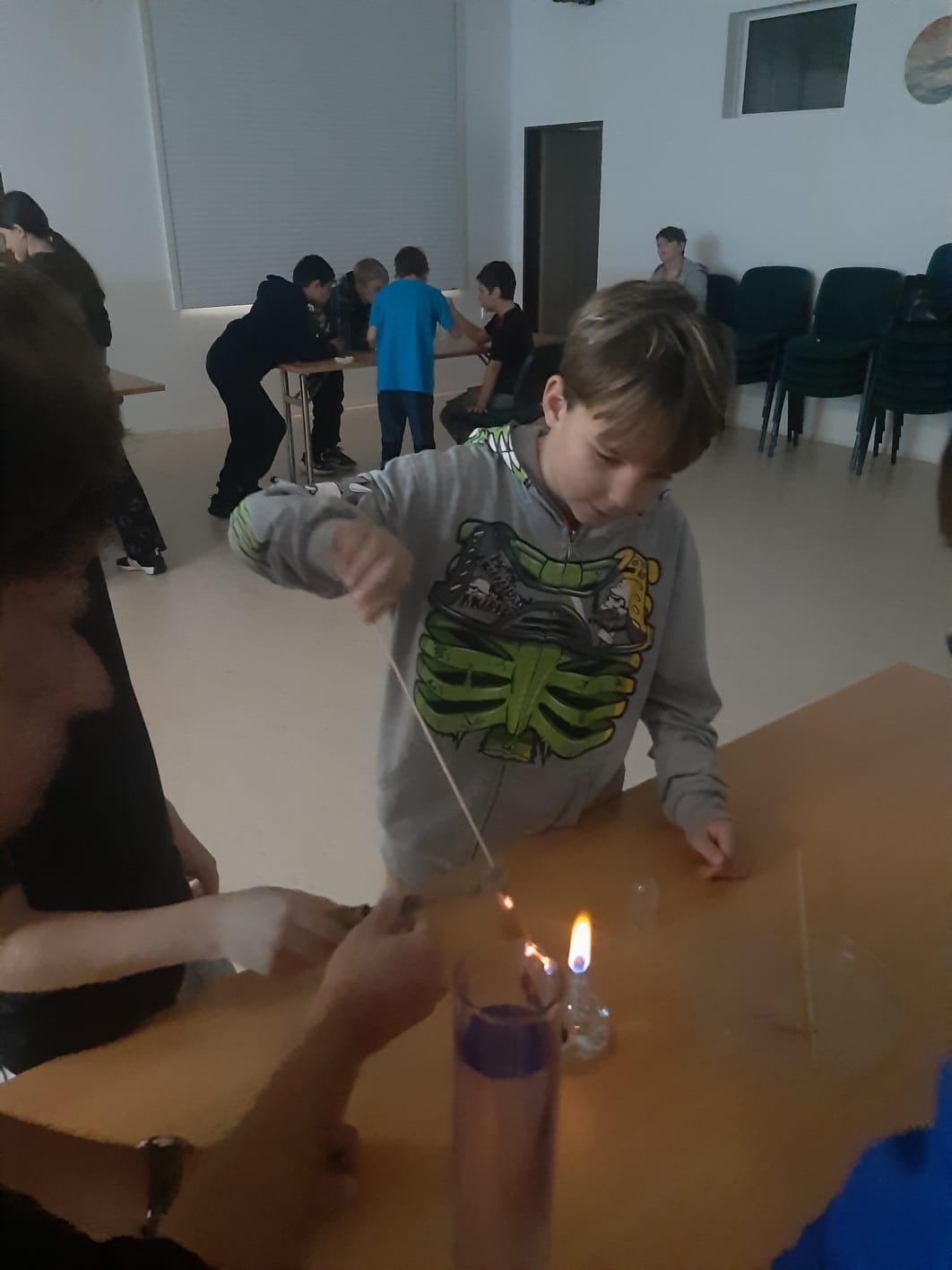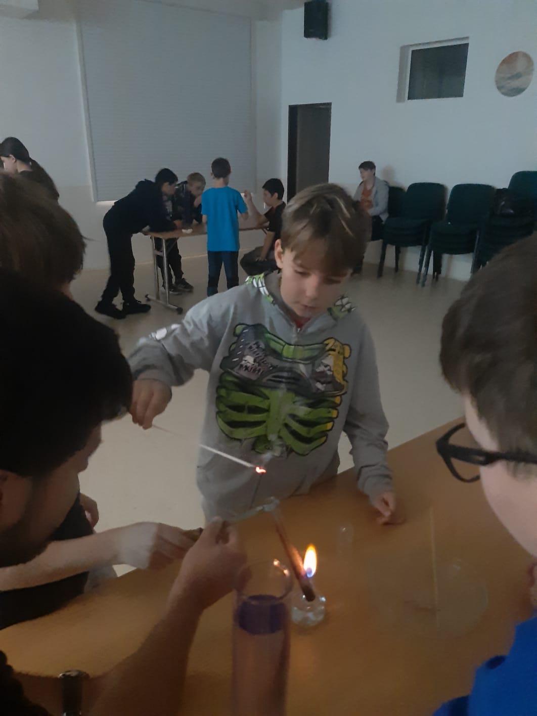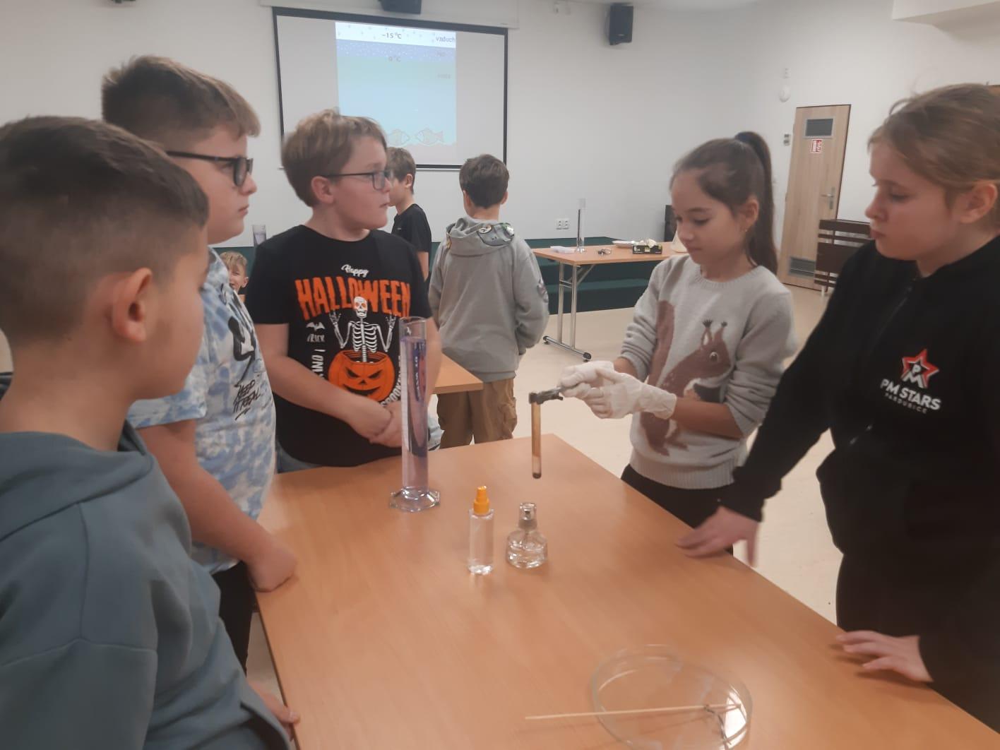 Trocha teorie na začátku, edukativní film a už se děti hrnou k pokusům, které pro ně připravil pan ředitel hvězdárny.
