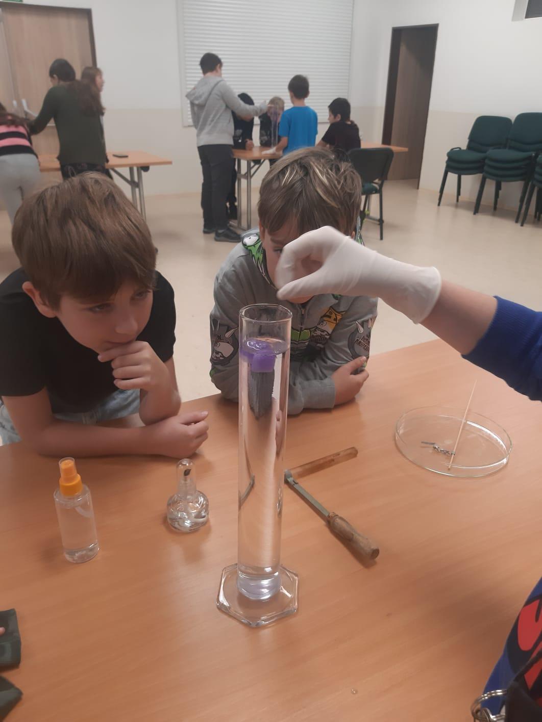 Mimo jiné experimentovaly s vodou, dozvěděly se o hustotě jako fyzikální veličině a jejím vlivu na hmotnost a plování těles ve vodě, o Vesmíru a vodě v něm obsažené. O výjimečnosti naší Země, kde se voda vyskytuje ve všech 3 skupenstvích. Také si děti ujasnily, co je eroze a jak probíhá. Nezapomnělo se ani na důležitost půdy. Jak se povrchová voda stává podzemní a jak dlouho to trvá.