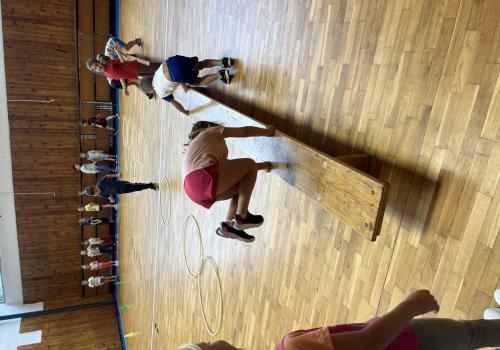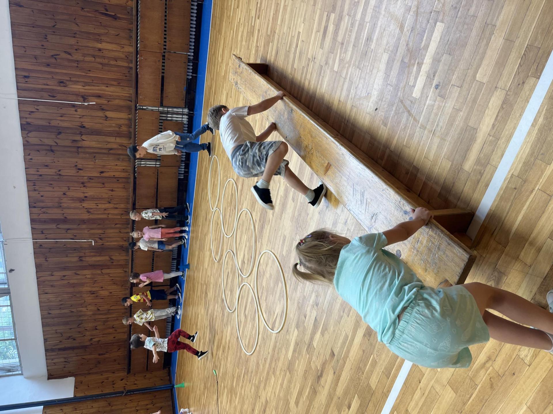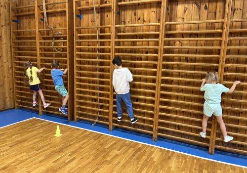 Dnes jsme si v tělocvičně připravili pořádnou „opičí dráhu“. Děti se s nadšením zapojily do všech úkolů – šplhaly po žebřinách, přeskakovaly překážky, trénovaly rovnováhu i vytrvalost. Opičí dráha nebyla jen o pohybu, ale i o rozvoji důležitých dovedností. Posilovali jsme sílu, koordinaci, odvahu a soustředění, a také schopnost překonávat výzvy.