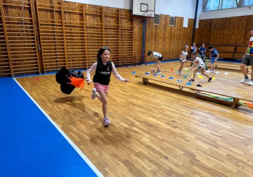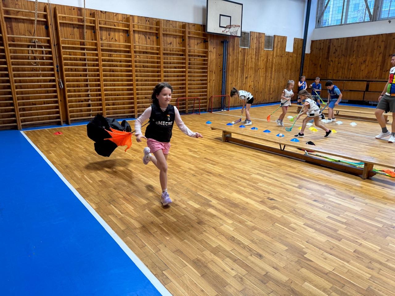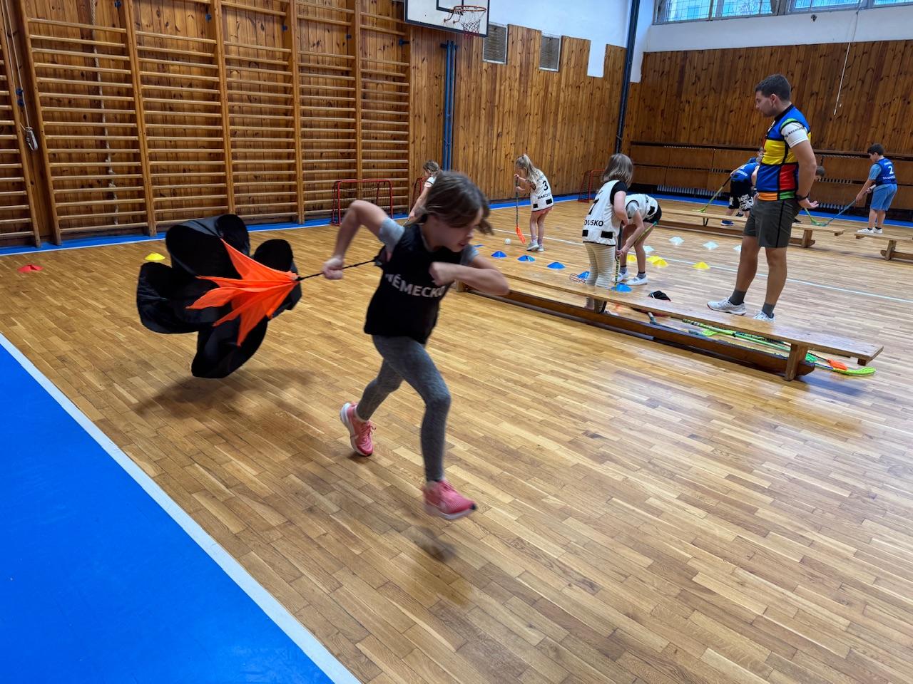 Každé čtyři týdny se nám mění trenéři a zároveň sporty, které si zkoušíme. Poznáváme spousty nových průpravných her, využíváme pomůcky, které ve škole k dispozici bohužel nejsou. Zlepšují se nám dovednosti a moc nás to baví!