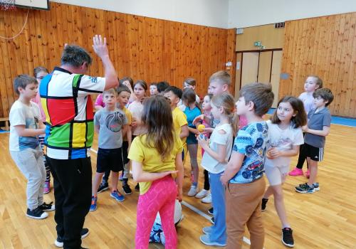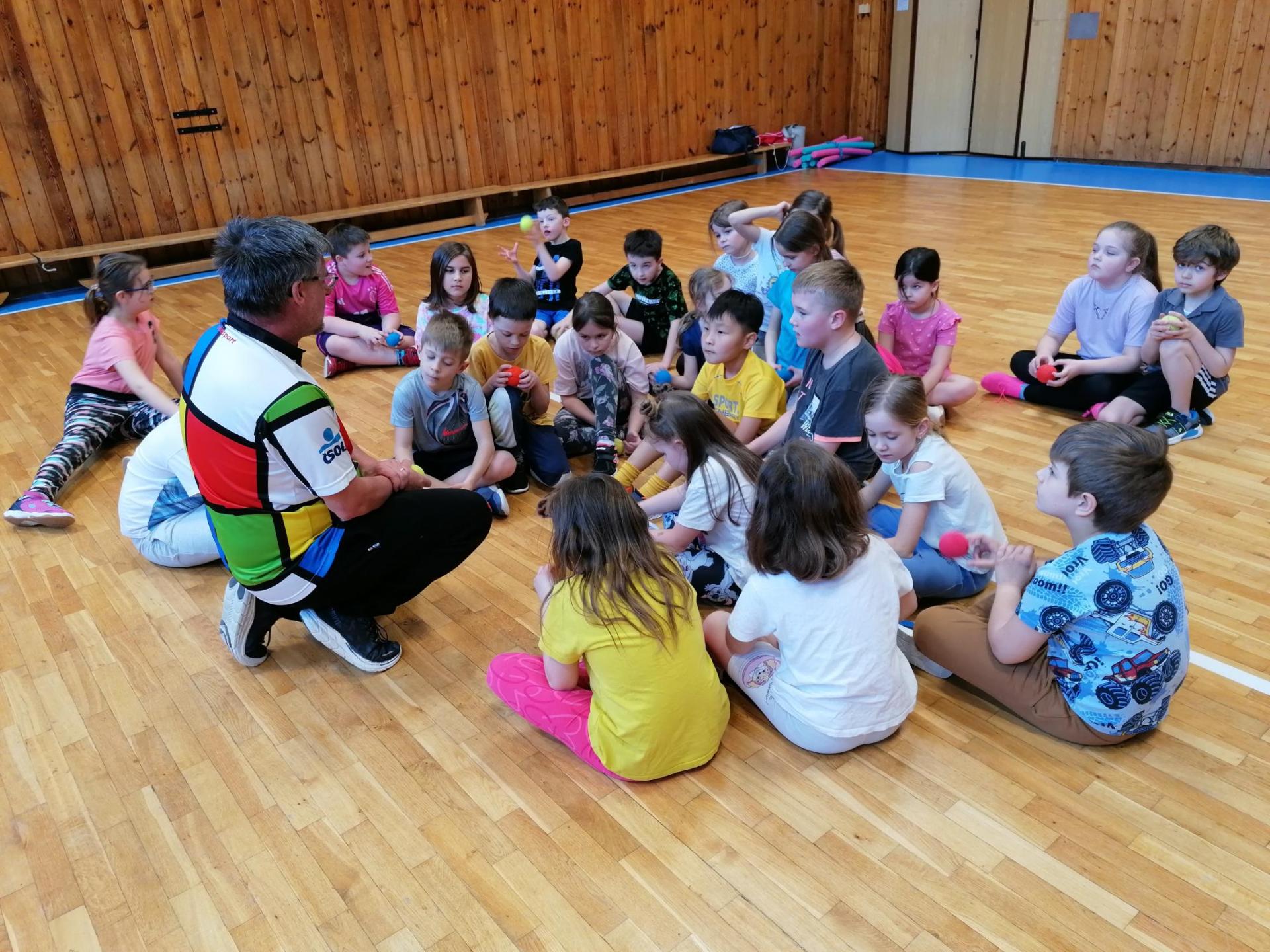 Bílý míček letí polem, hráči běží pěkně kolem.