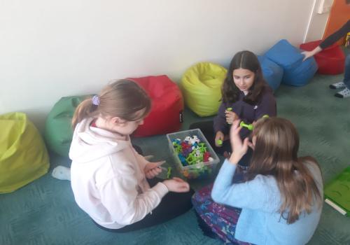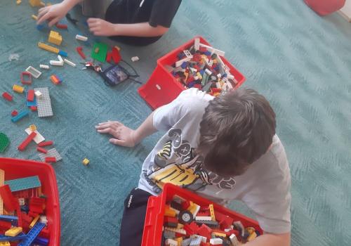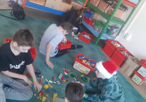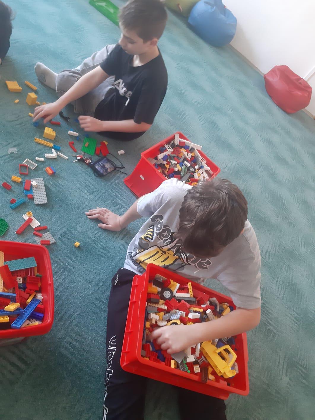V rámci pracovních činností se aktivně zbytek naší třídy zapojil do roztřídění stavebnic LEGO v učebně, kde paní učitelky zpracovávaly inventarizaci.