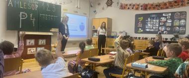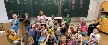 Dnešní den se nesl v duchu jablíček. Na úvod jsme si o nich povídali – popisovali jsme jejich barvu, tvar i vůni a zkoušeli jsme porovnat, kde je jablíček více a kde méně. Společně jsme také vytvořili myšlenkovou mapu, do které jsme zapisovali všechno, co nás k dnešnímu tématu napadlo.