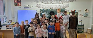 Dnes k nám do třídy zavítala vzácná návštěva – Mikuláš, anděl a čert. Děti už od rána napjatě vyhlížely, jestli k nim dorazí, a když se na chodbě rozezněly zvonečky a lehké „zachřestění řetězu“, bylo jasné, že je tu máme.