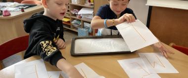 Již od září jsme připravovali ruku na psaní. Důležité bylo uvolnit ruku a pohlídat si držení tužky ve špetkovém úchopu. Ke správnému držení tužky nám pomáhá říkanka: