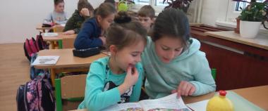 Minulý týden nám poprvé přišli číct "páťáci". Všechny děti si to náramně užily, našly si nové kamarády. Někdo dokonce už i četl staršímu spolužákovi. Společně kreslí obrázky do sešitu, povídají si o přečteném.