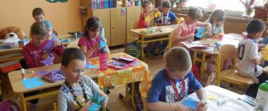 Svítilo nám sluníčko, uvařili jsme si výborný čajíček, opekli brambory v popelu, stihli jsme nasbírat i barvičky pro vílu Barvínku, aby měla dost barev na barvení listů. Byli jsme hodní, nikdo se neztratil ani se nespálil u ohniště, takže - prima den v Ekocentru Paleta.