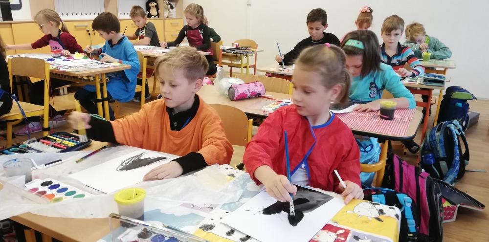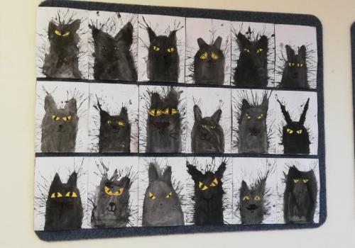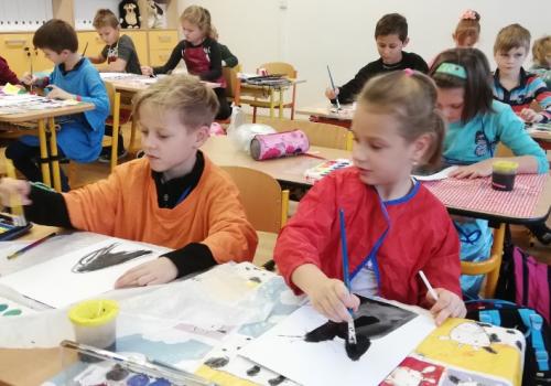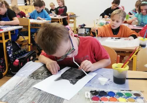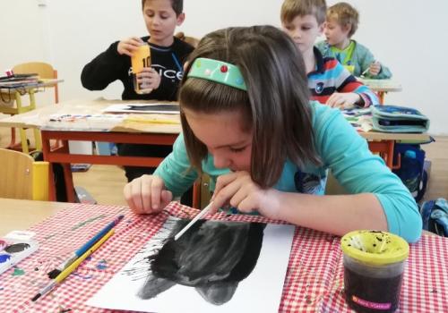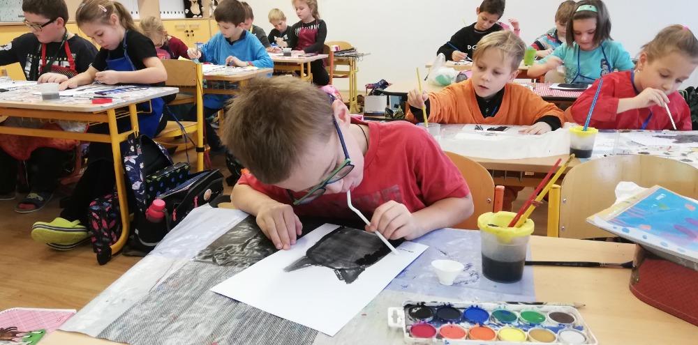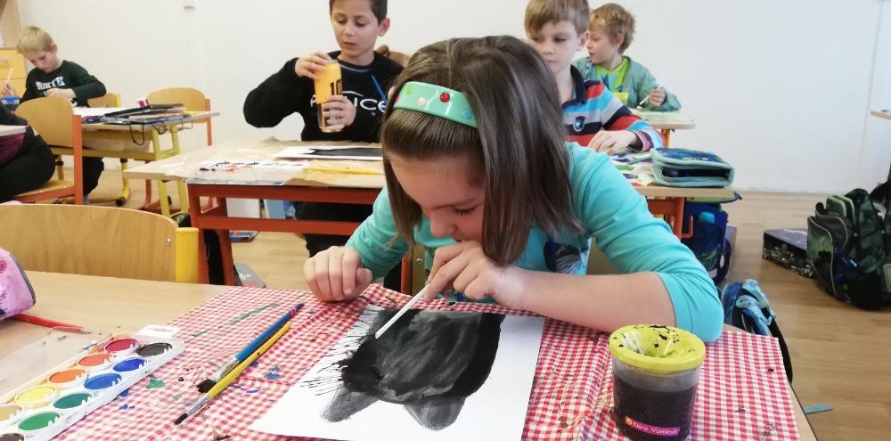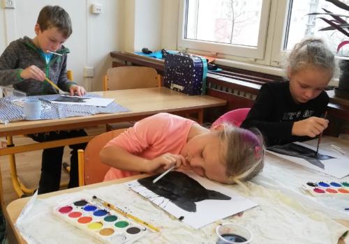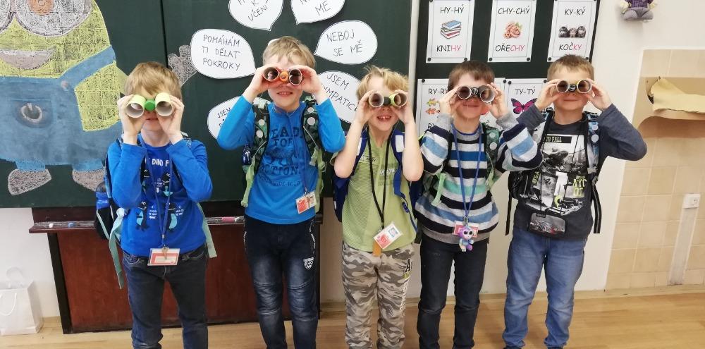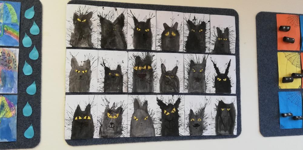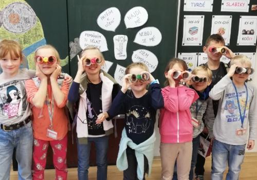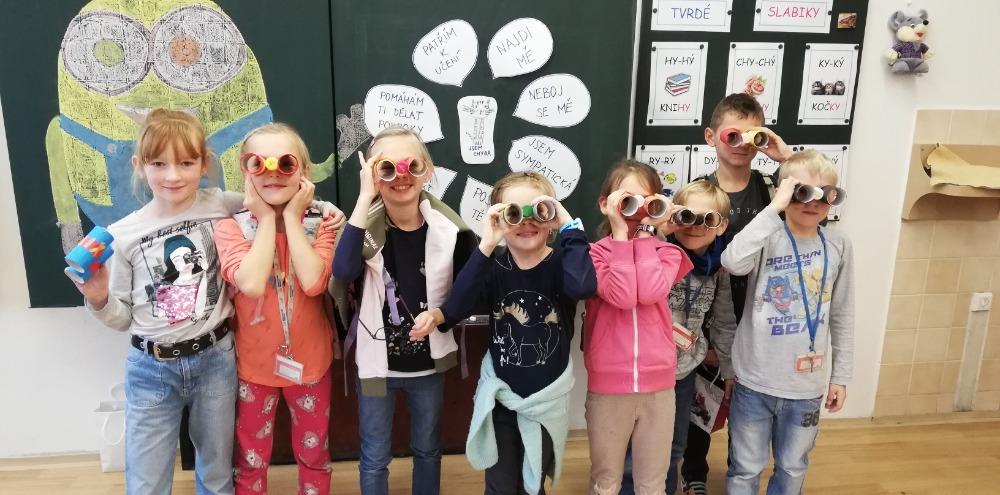 Při tvořivých činnostech jsme si vyrobili dalekohledy a malovali jsme vystrašené kočky. Baví mě, jak to děti baví a jak jsou šikovné