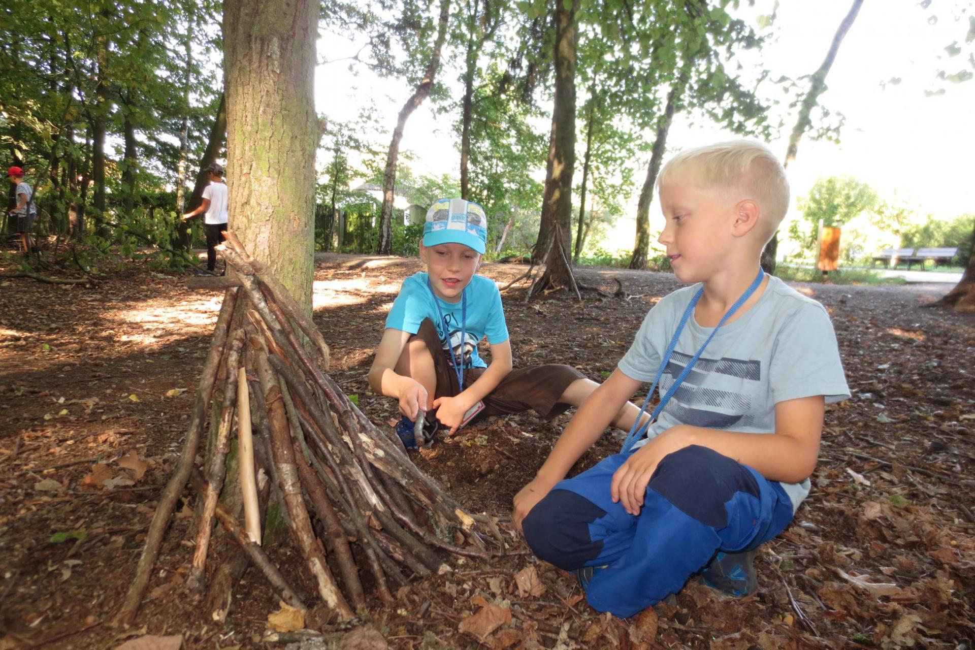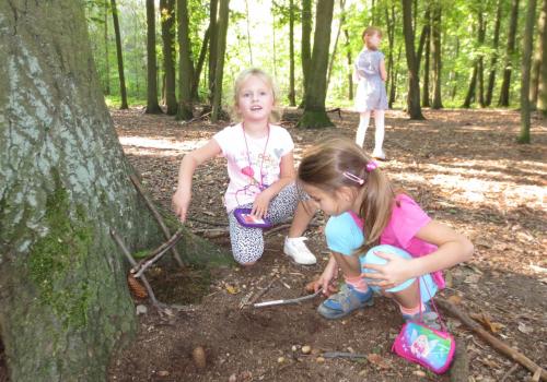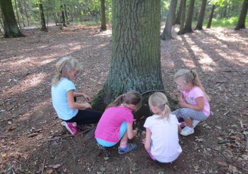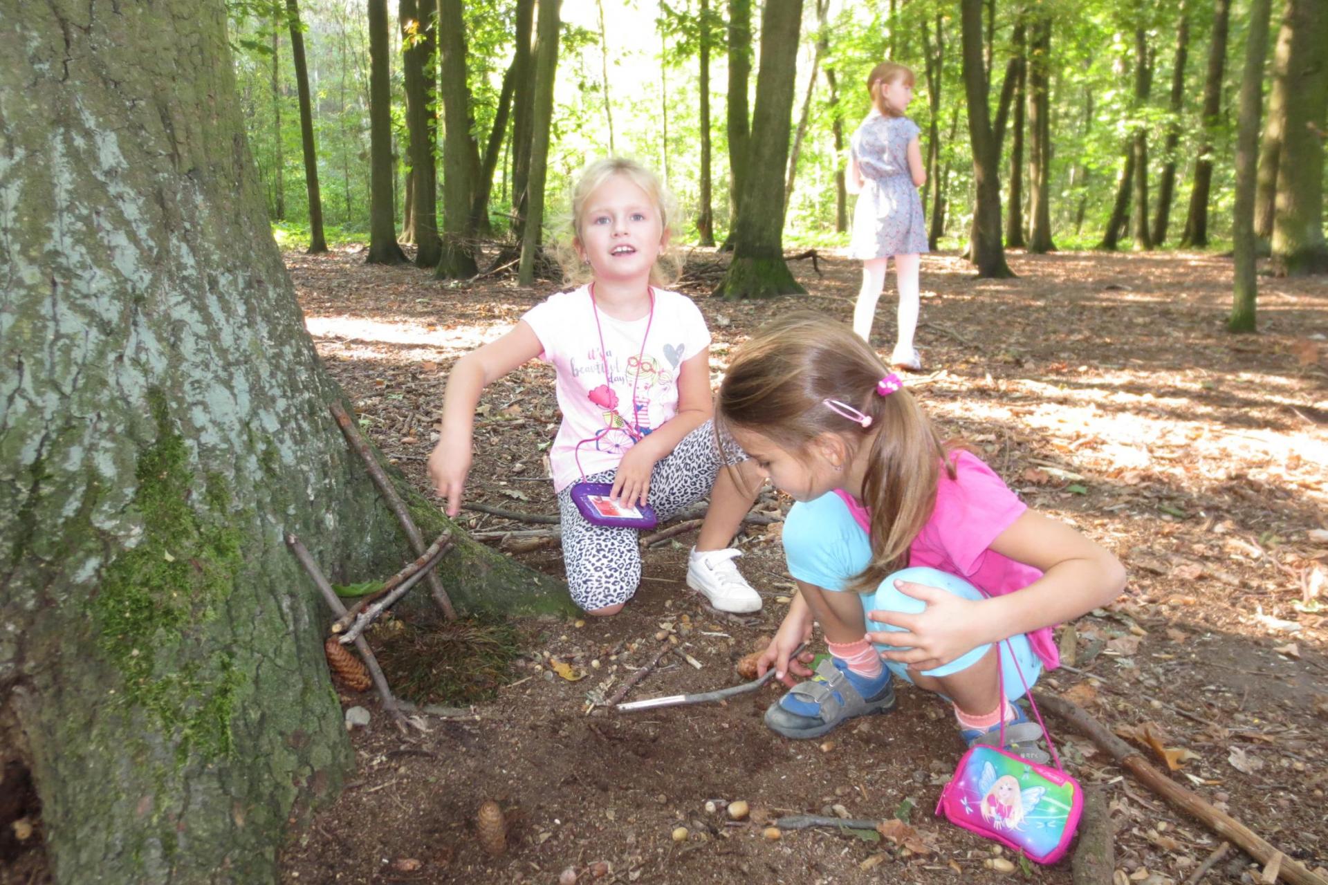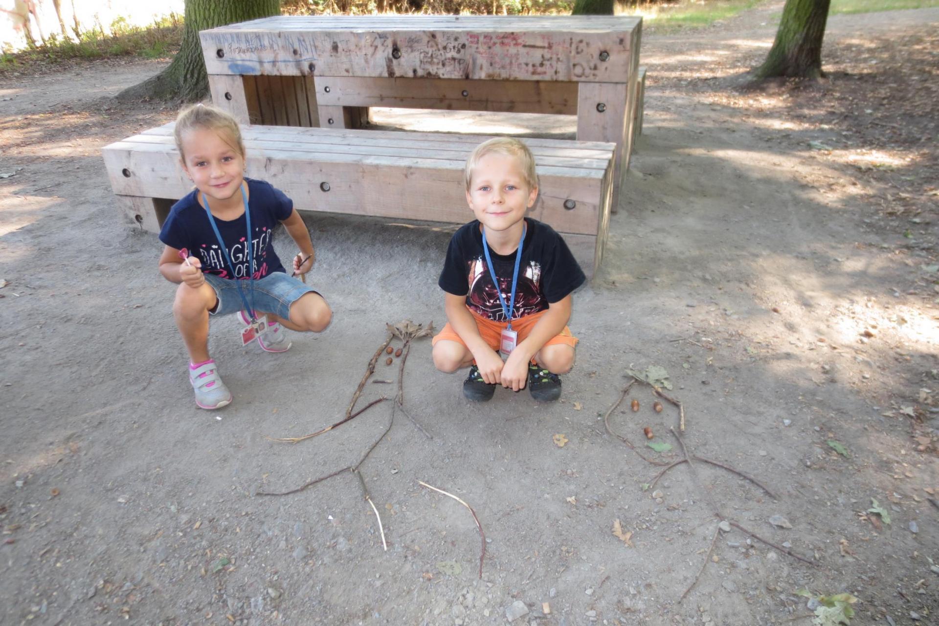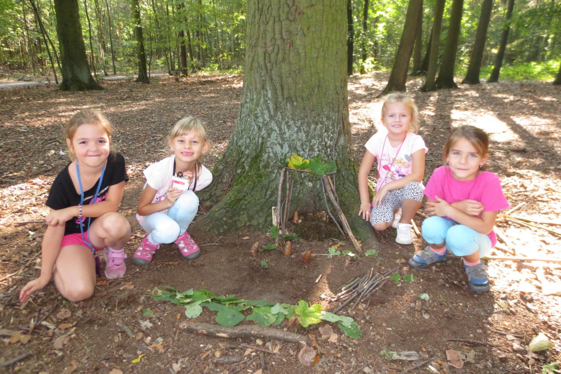 Využili jsme pěkného počasí a na tvořivé činnosti jsme šli do lesa. A matematika...? 1-5 je trošku nuda, tak to občas trošku proložíme něčím těžším...