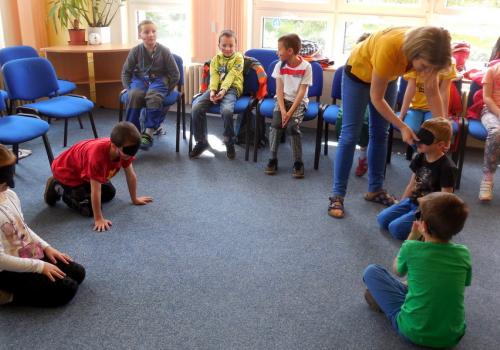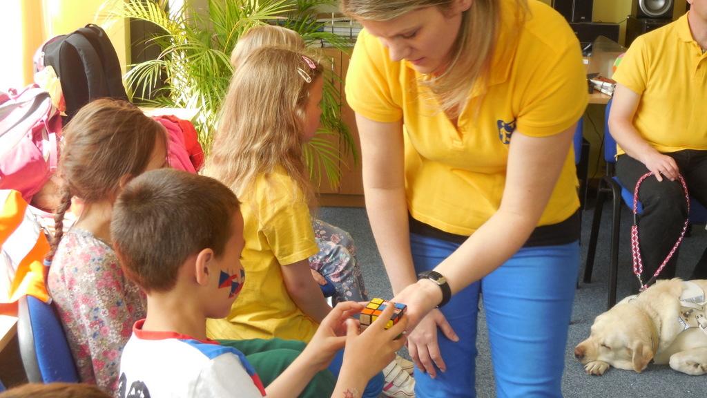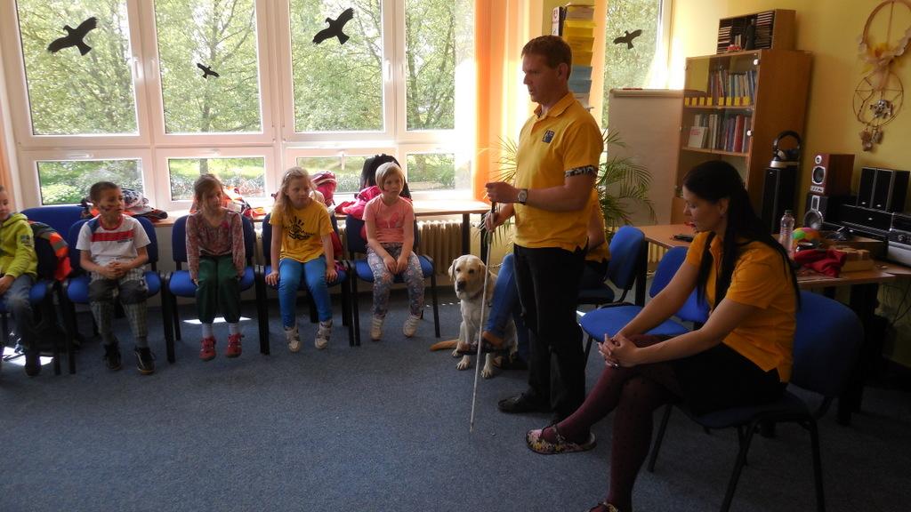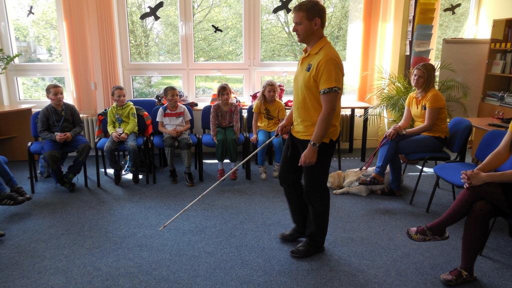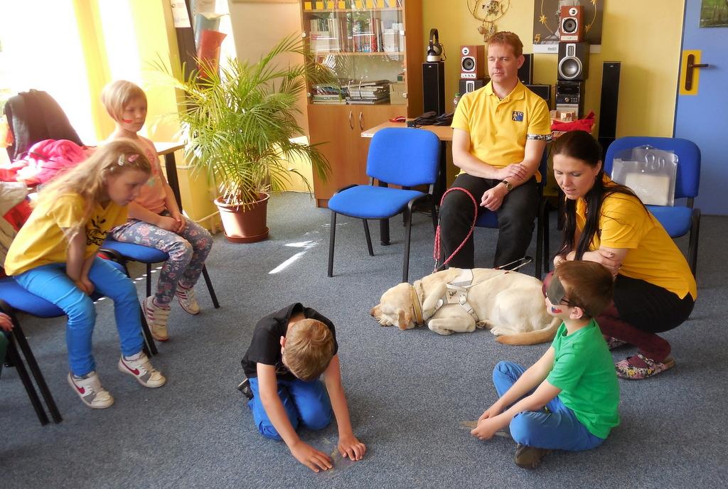 Zúčastnili jsme se zážitkového semináře v TyfloCentru. Zaskočilo nás trošku setkání s nevidomým Péťou, ale byli jsme mezi velmi příjemnými lidmi a dozvěděli jsme se, jak můžeme my pomoci lidem se zrakovým postižením.