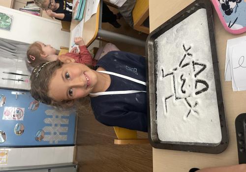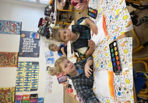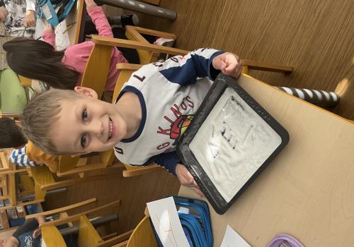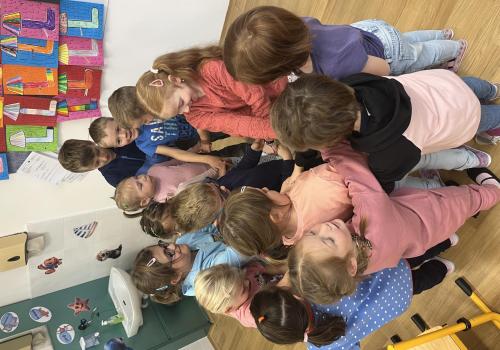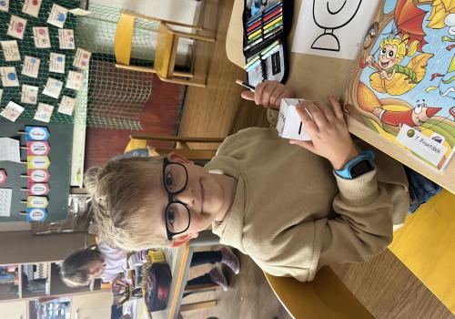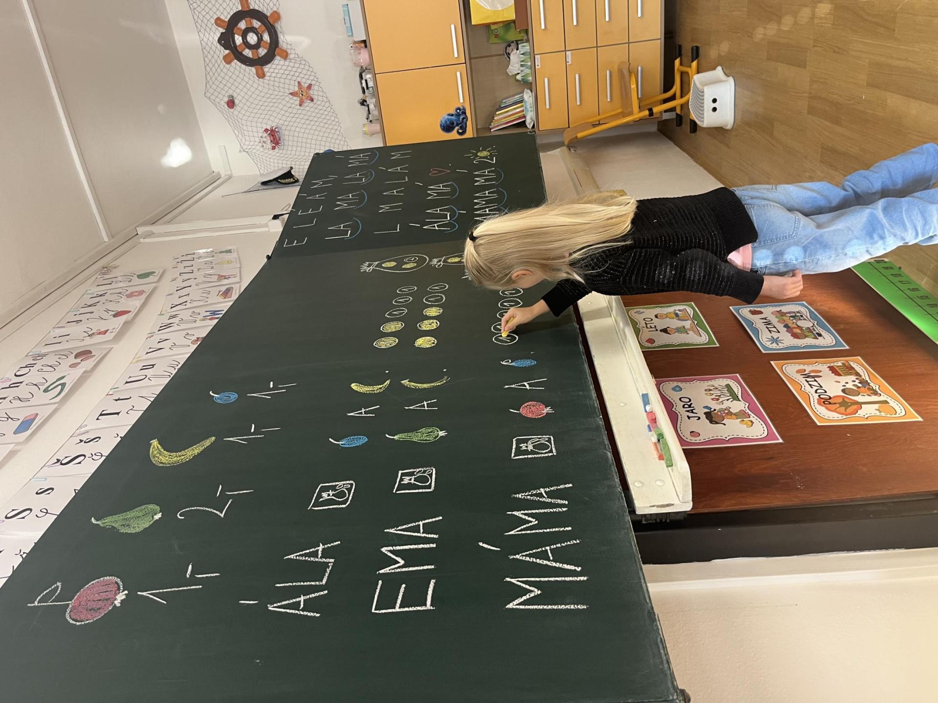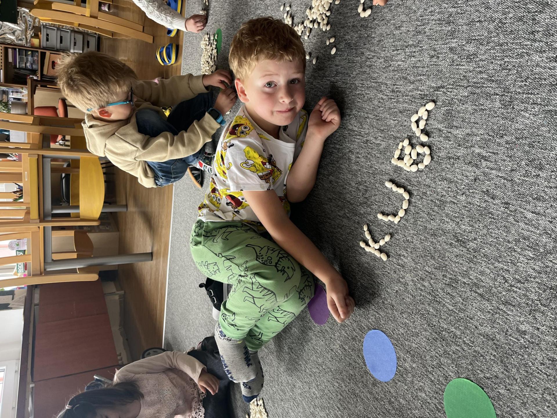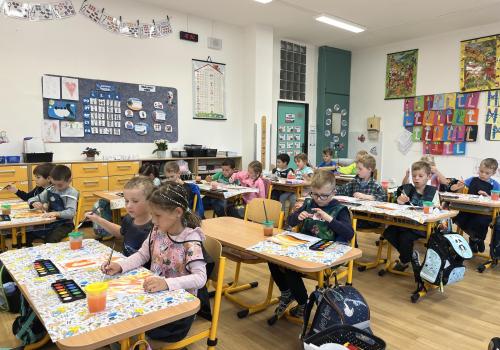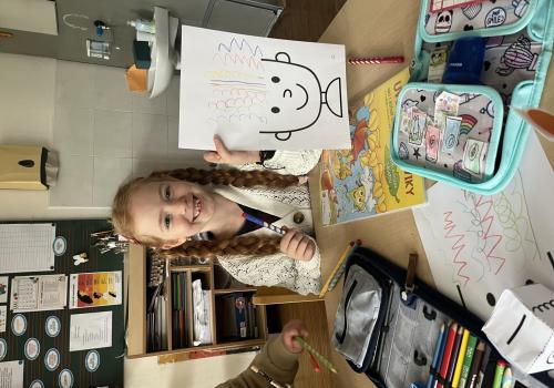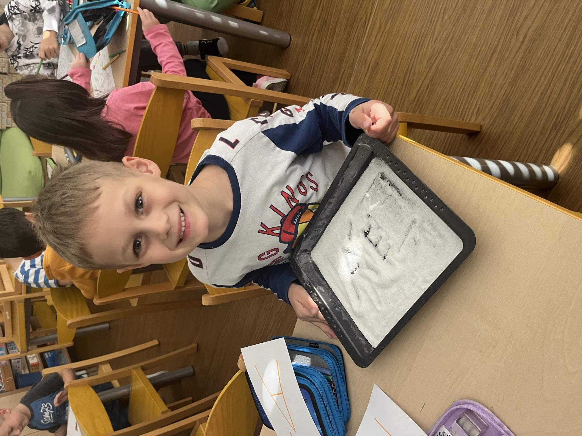 Učení prokládáme také zábavnými aktivitami. Uvolňujeme si ruku a zároveň tvoříme panáčka s bláznivými vlasy. Tvary písmenek si upevňujeme skládáním z fazolek nebo kreslením do soli. Vyzkoušeli jsme i aktivitu na spolupráci – děti měly za úkol se domluvit a společně rozmotat „zamotané ruce“. V hudební výchově jsme si hráli na zrcadlo a zkoušeli napodobovat spolužákovy pohyby. Při tvořivých činnostech jsme se naladili na podzim pomocí malby vodovými barvami, což děti velmi bavilo.