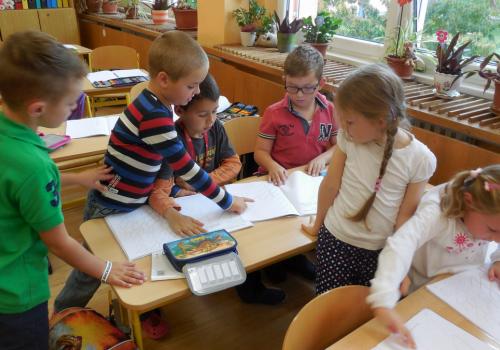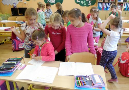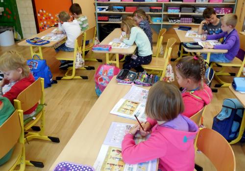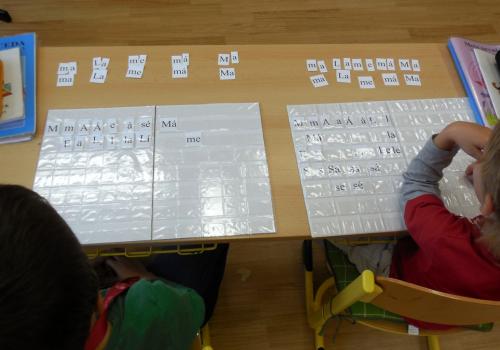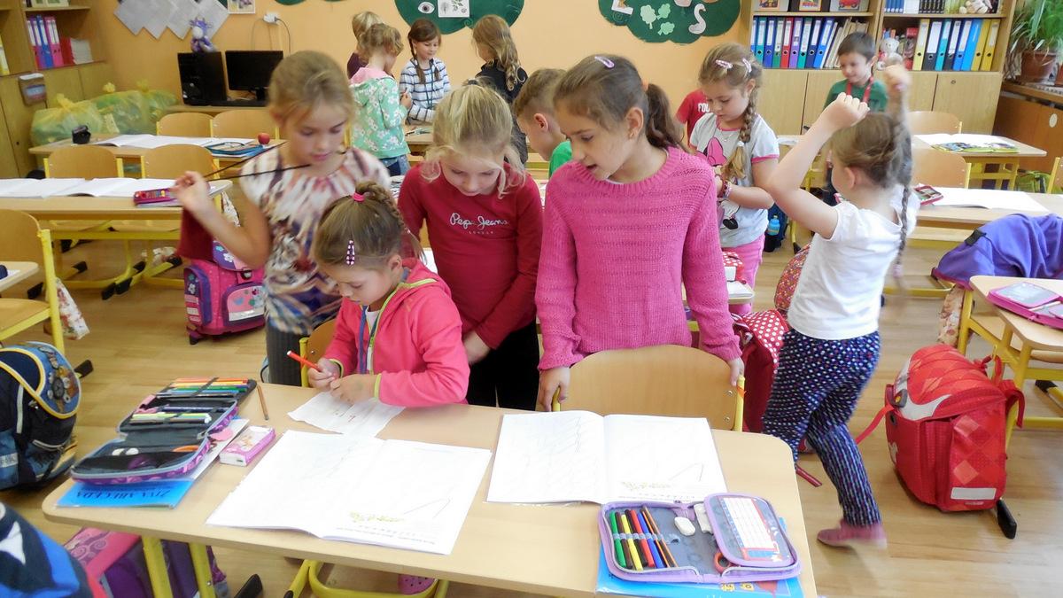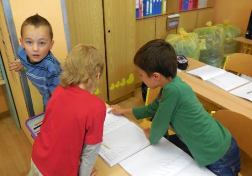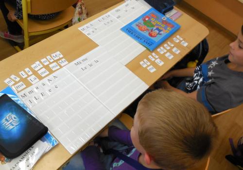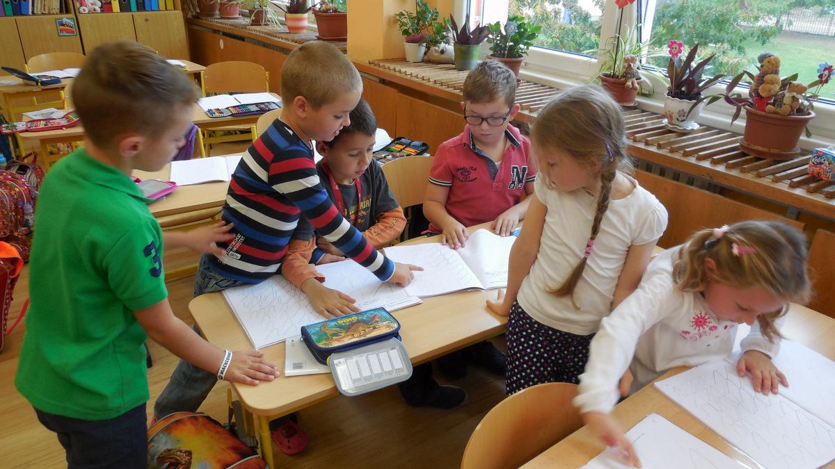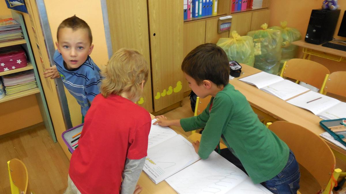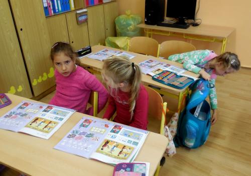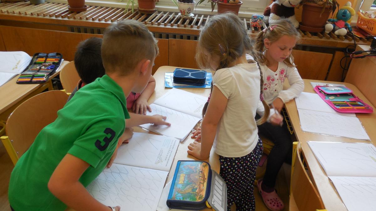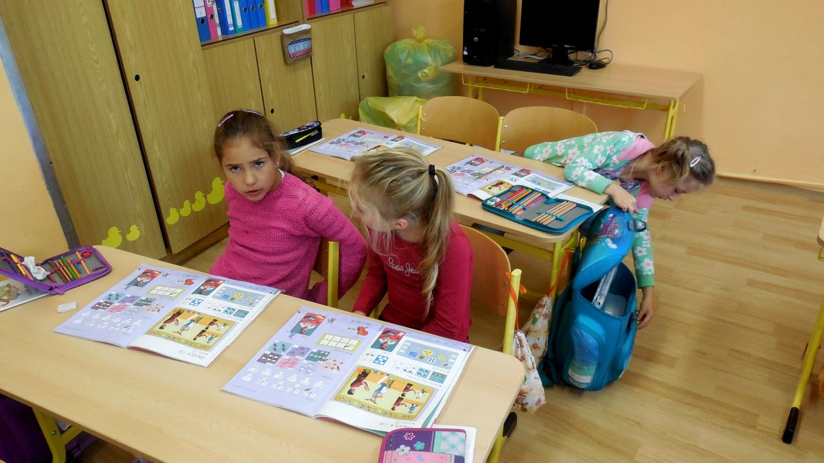 číst - skládat slabiky z písmenek, psát - správně sedět a držet tužku, počítat