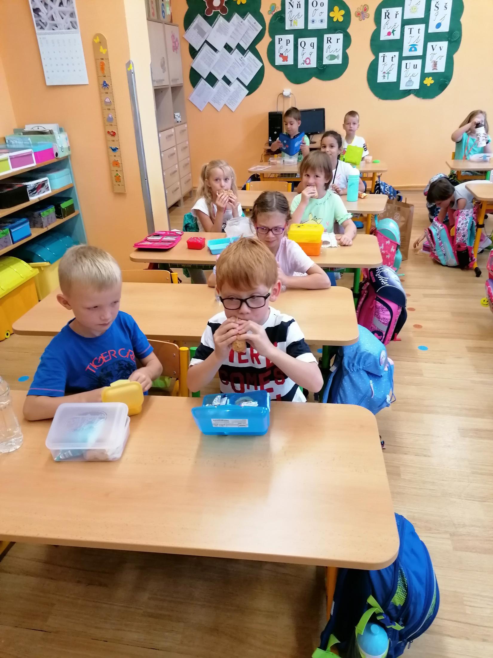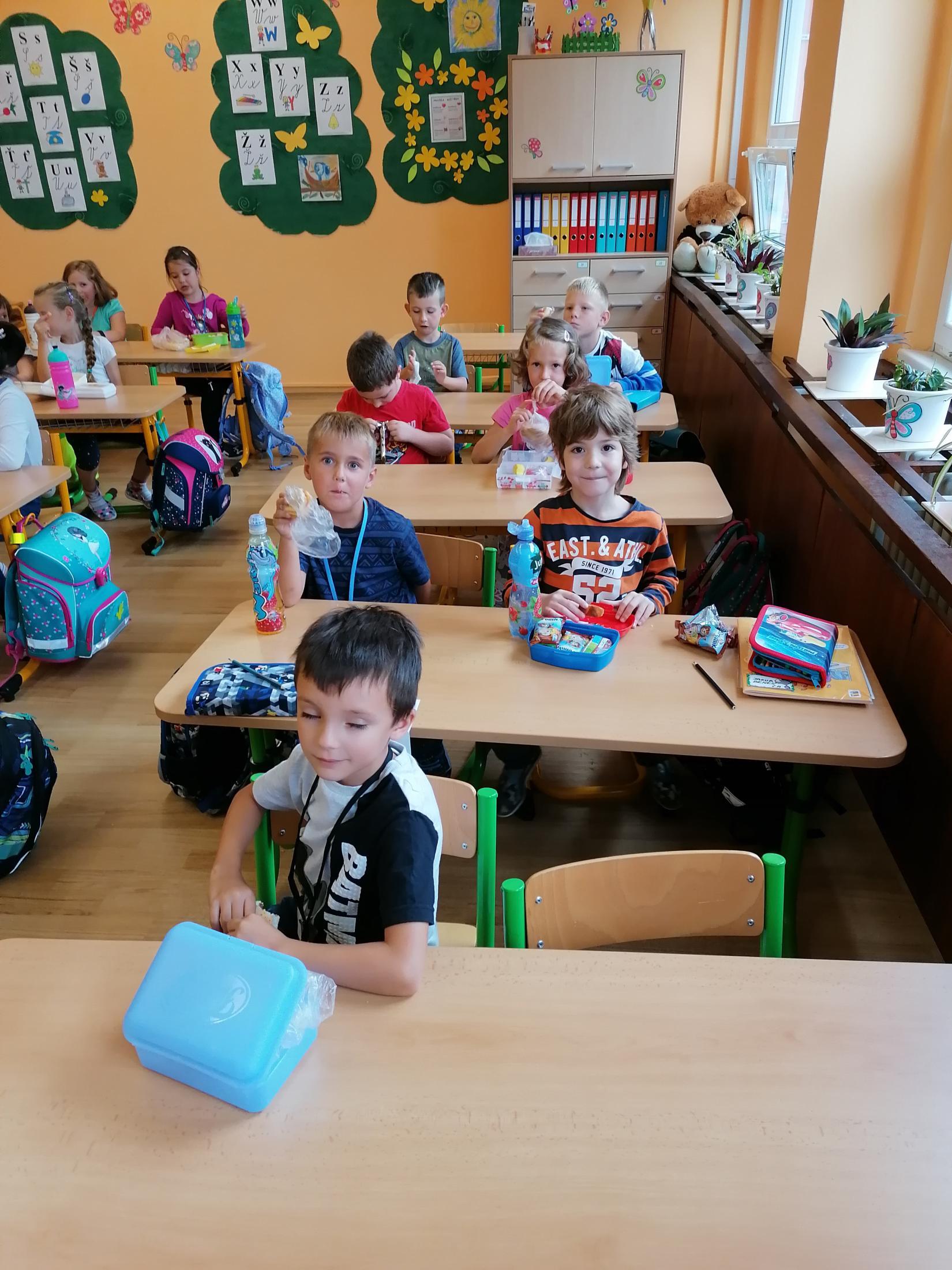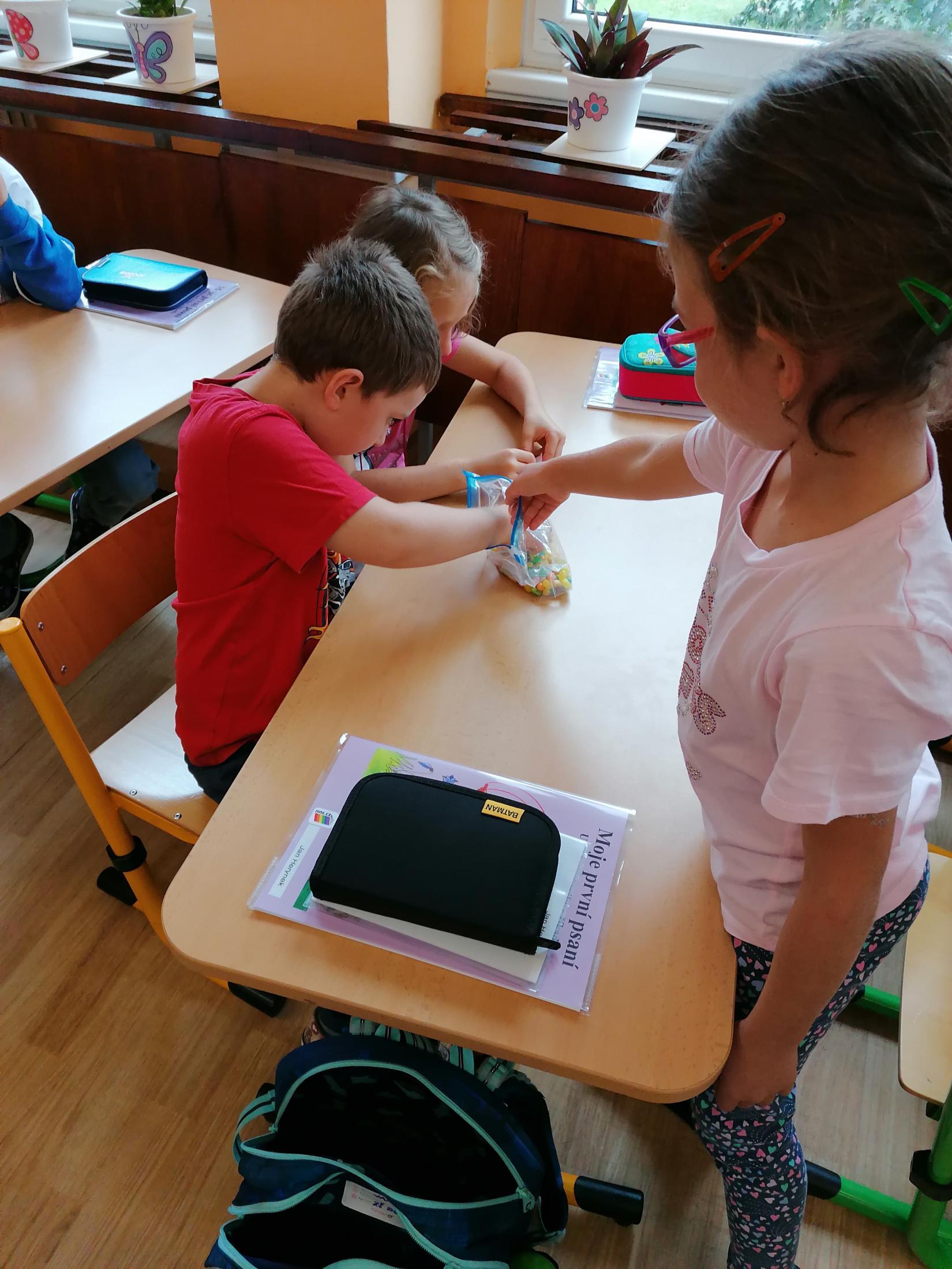 Už umíme i svačit a rozdávání bonbónků nám taky jde.