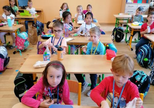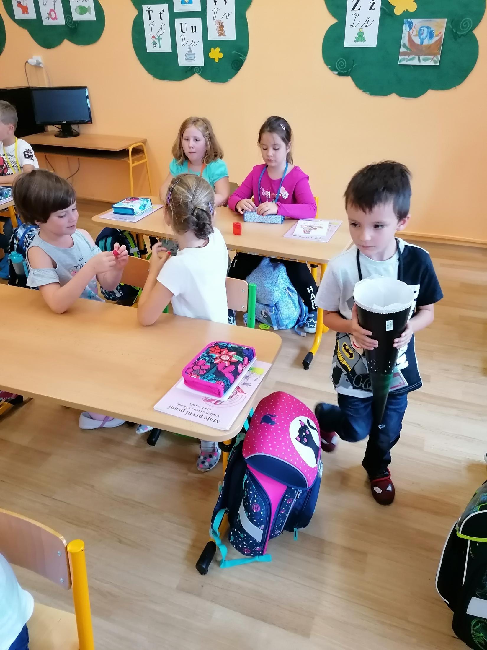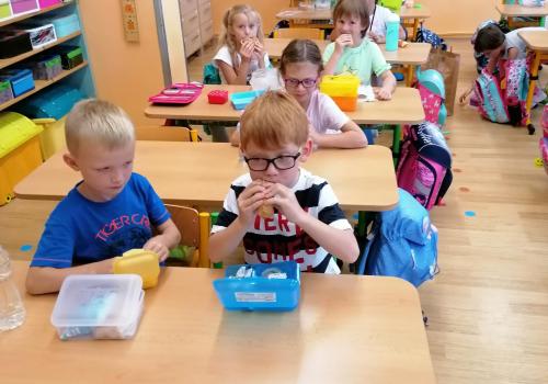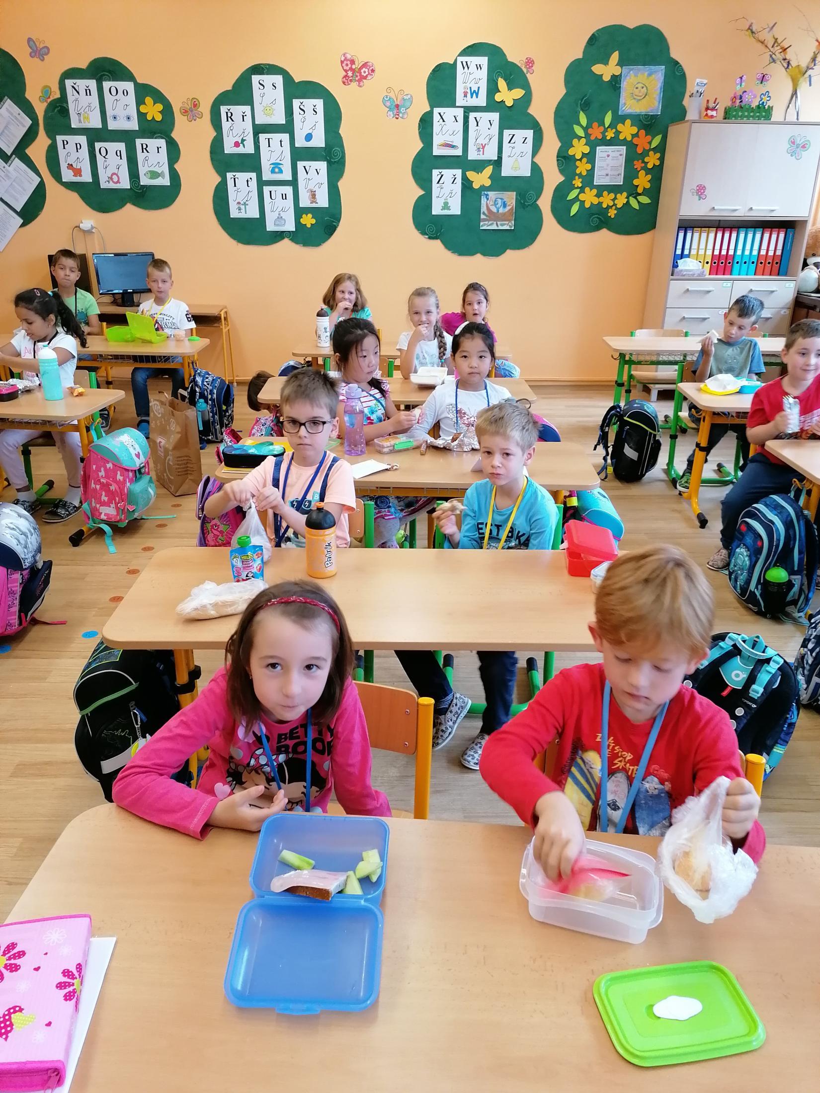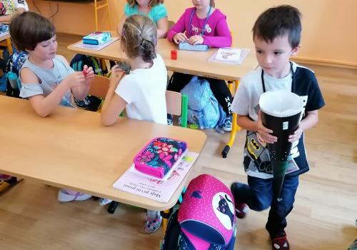 Už umíme i svačit a rozdávání bonbónků nám taky jde.