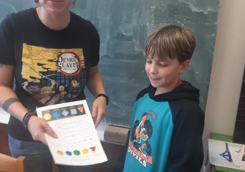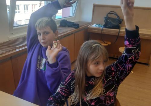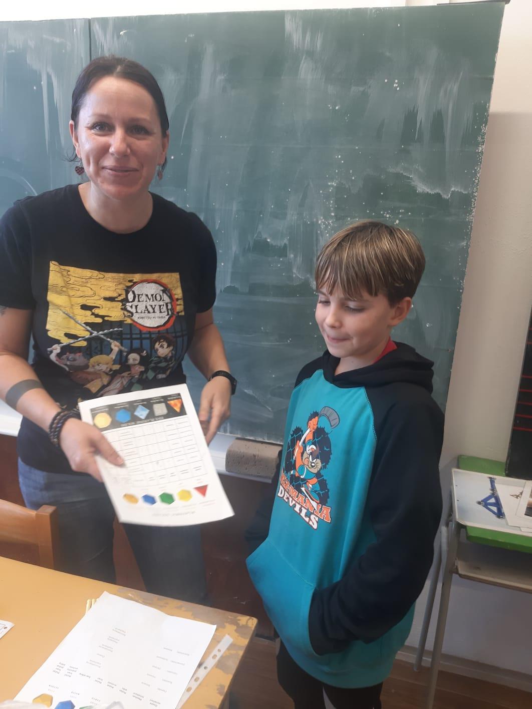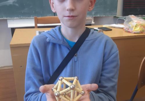 Kromě jiného měla naše lektorka připravený výborný pracovní list, kam žáci ve skupinách měli zapisovat počty hran, stěn a vrcholů u geometrických útvarů v prostoru, konkrétně platónských těles. Úkol to byl pro mnohé nadmíru obtížný, někteří jej nedokončili ani po skončení odpolední dvouhodinovky tvořivých činností, úzce spjatých s rozvíjením prostorové představivosti.