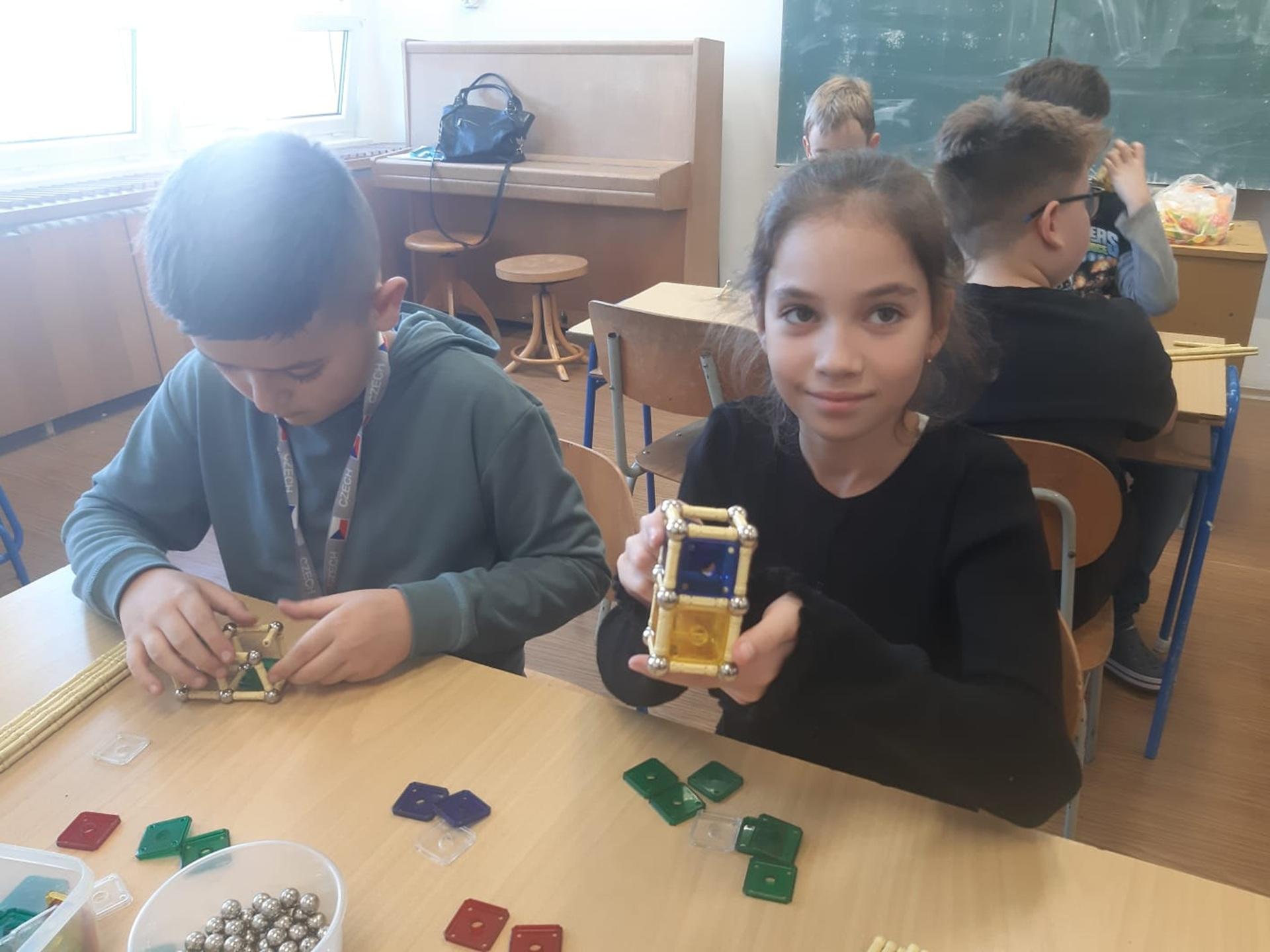 Děti experimentovaly se stavebnicí a vytvářely různé obrazce i tělesa. Tvořivou práci s jasným a rychlým výsledkem máloco nahradí.