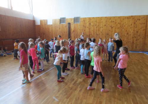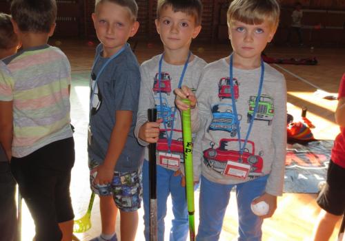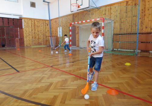 V pondělí si děti vyzkoušely slalom s florbalkou a také si trochu zatancovaly