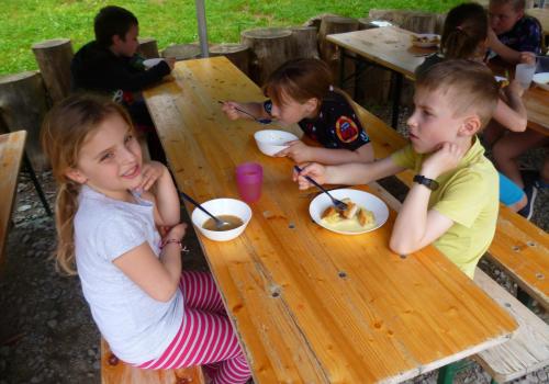 Dnešní probuzení bylo deštivé. Během dne trošku sprchlo, ale pořád je příjemné teplo. I dnes jsme měli bohatý a zajímavý program. Na čerstvém vzduchu nám všem vyhládlo. Dobré jídlo si každý vychutnal ve venkovní nebo vnitřní jídelně.