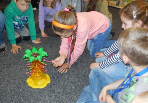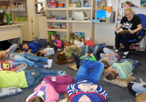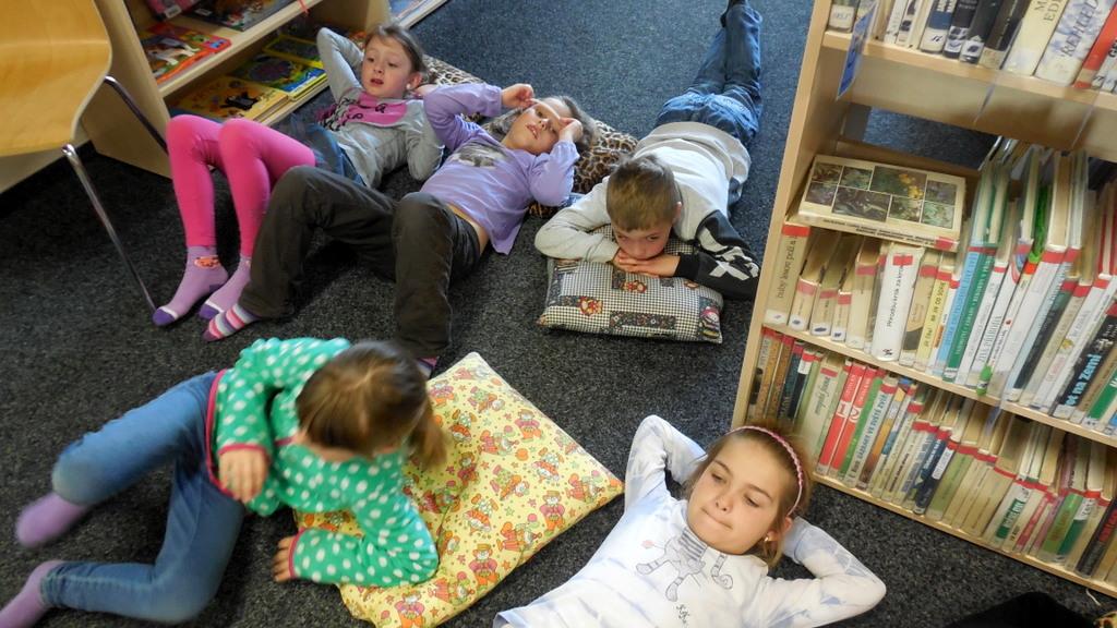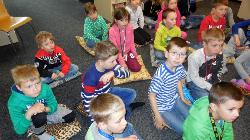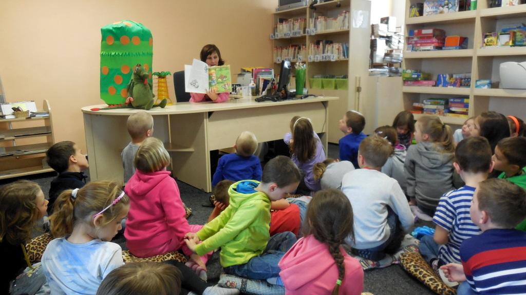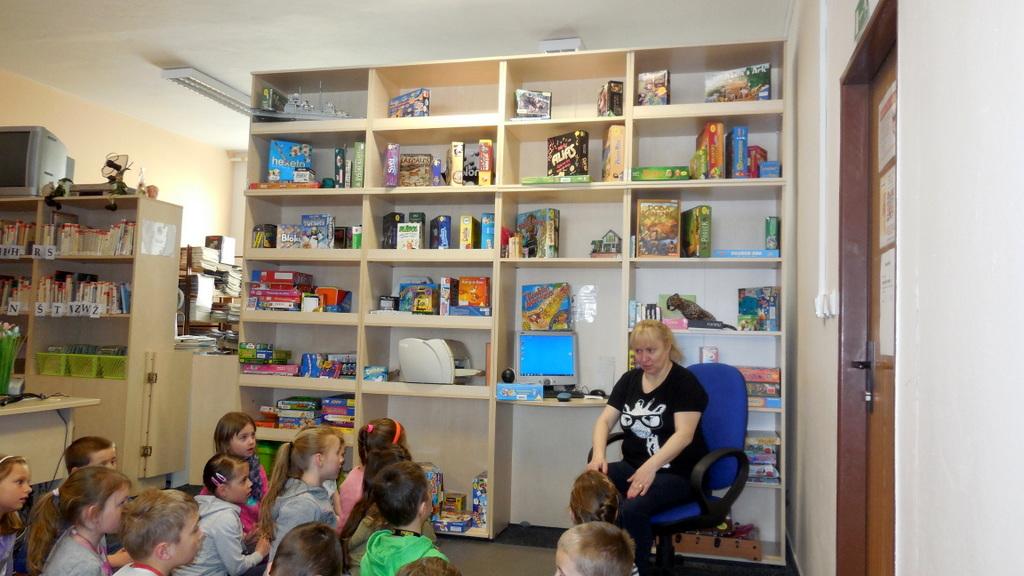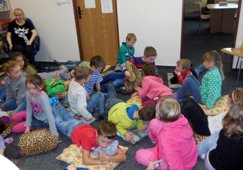 Při naši první společné návštěvě knihovny jsme se seznámili s tím, jak to vlastně v knihovně "chodí", přečetli jsme si úryvek z knížky Prázdniny s dráčkem a zahráli jsme si i hry.