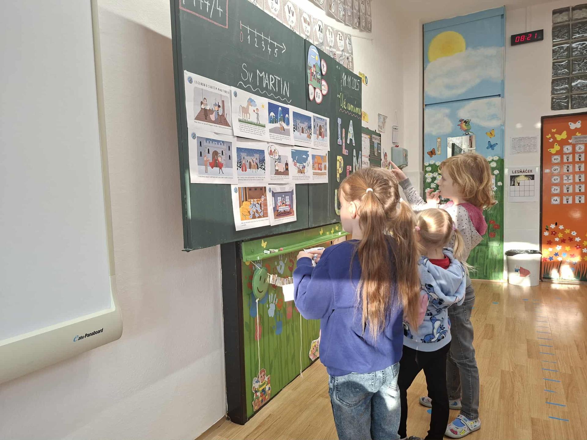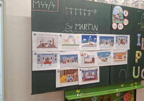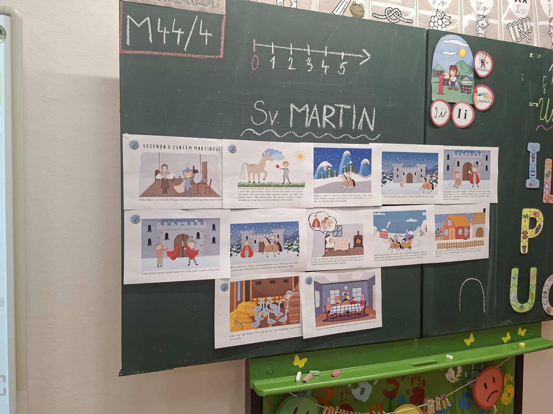 Včerejší den jsme věnovali svatému Martinovi. Povídali jsme si o tom, kdo svatý Martin byl, a poslechli jsme si jeho legendu o tom, jak se podělil o svůj plášť s žebrákem. Děti se dozvěděly, proč se svátek sv. Martina slaví právě 11. listopadu a co se v tento den tradičně jí – například svatomartinská husa nebo svatomartinské rohlíčky.
