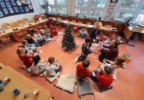 Poslední školní den v roce 2025 jsme společně prožili v příjemné atmosféře na vánoční besídce. Třída vypadala úplně jinak – lavice jsme měli slavnostně uspořádané a vše bylo připravené na velké překvapení. A opravdu! Navštívil nás Ježíšek a nechal nám pod stromečkem dárky.
