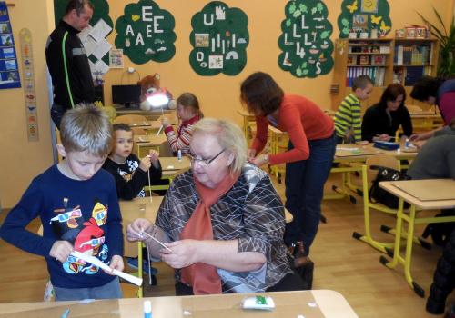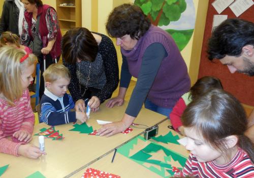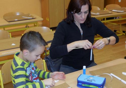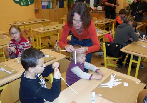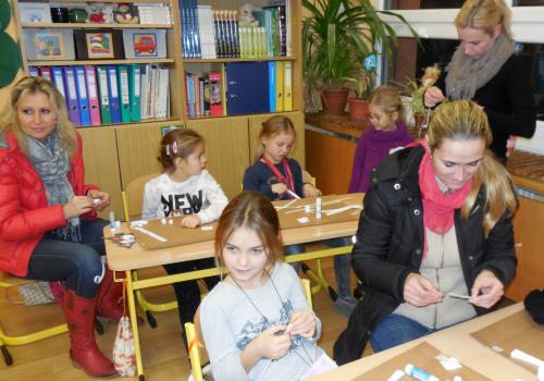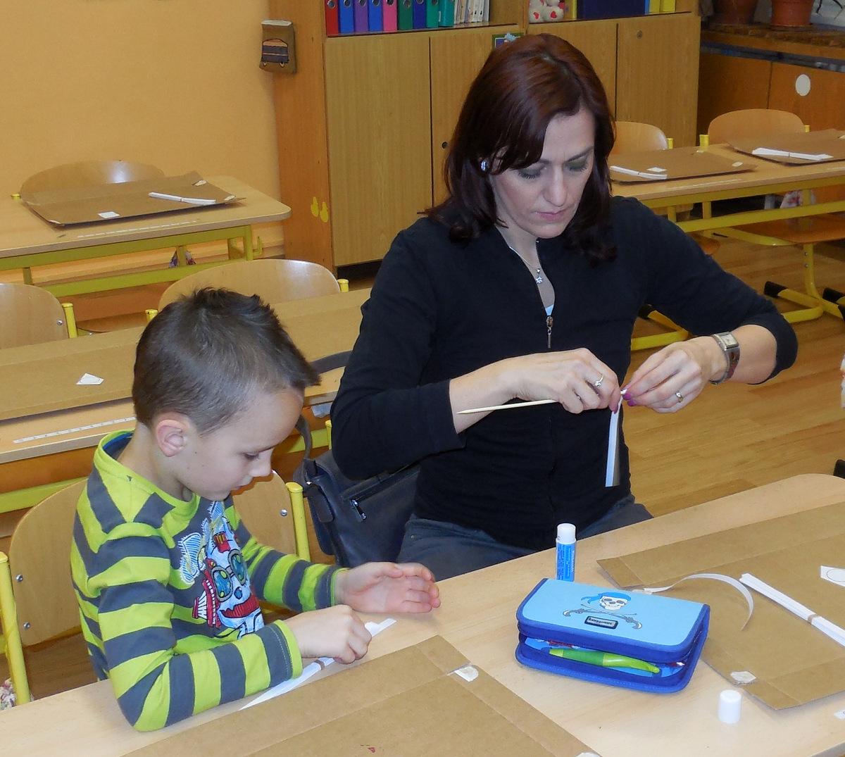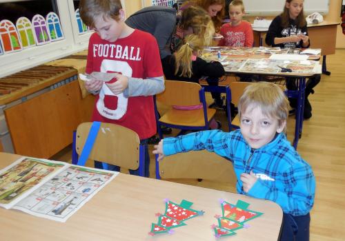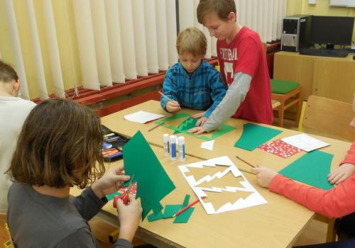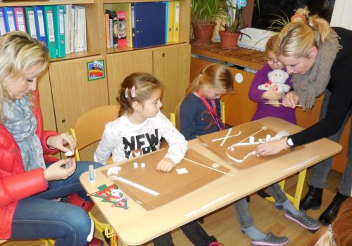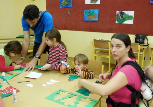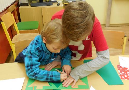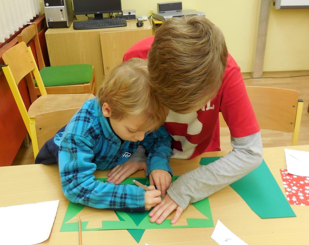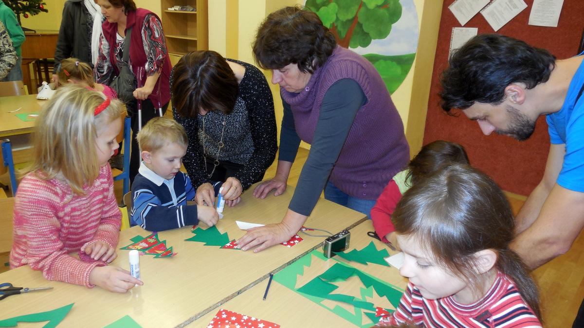 Navštivili jsme školu a vyráběli jsme přáníčka, vánoční nebo zimní dekorace. Pomoc nám přišli velcí pomocníci - maminky, tatínkové, babičky i starší bráškové.