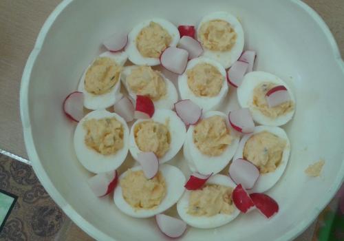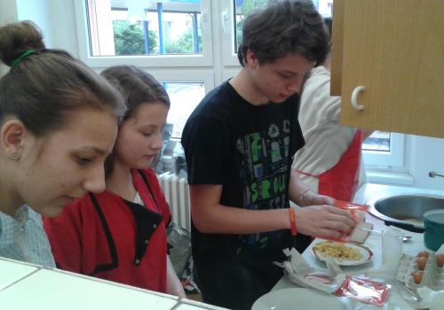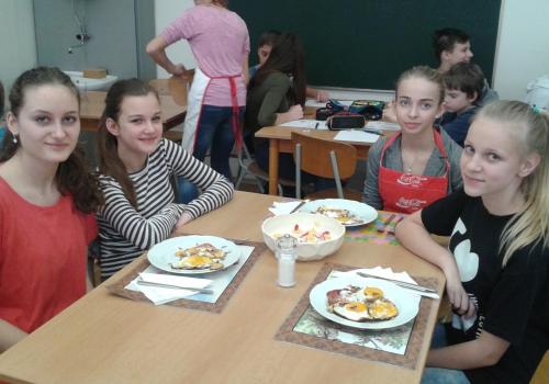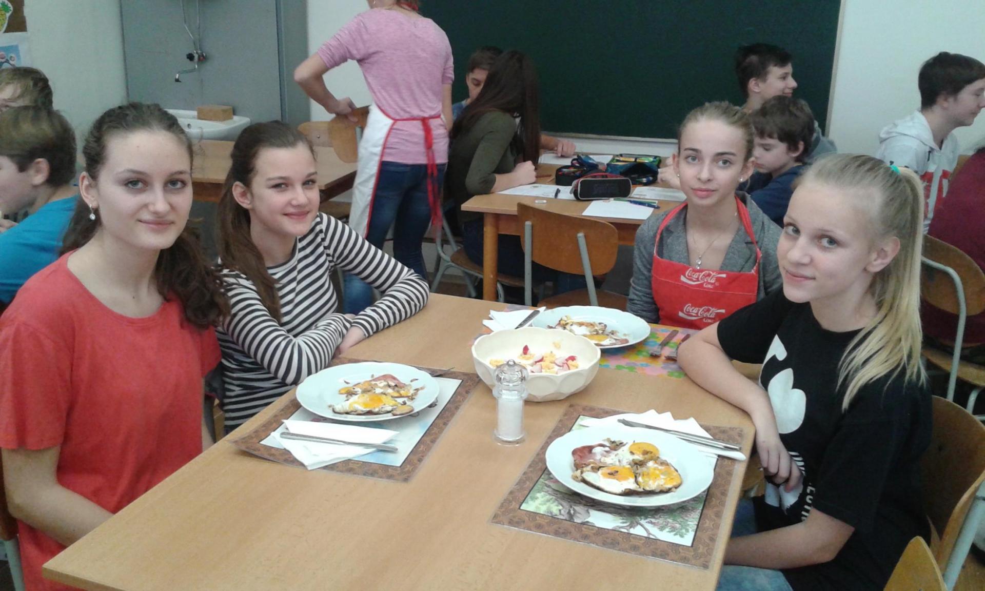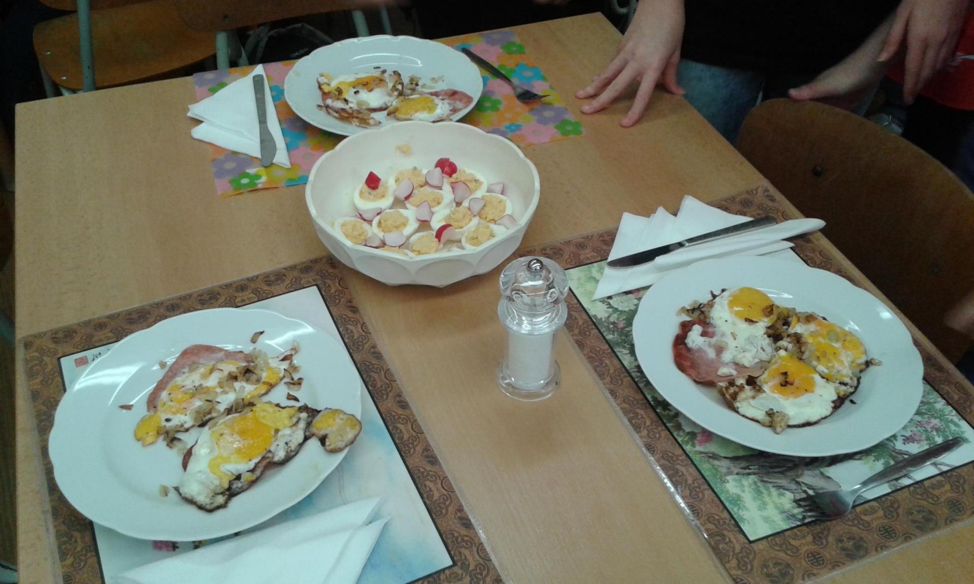 Vajíčka na mnoho způsobů - to bylo další vaření. Každá skupina vyzkoušela připravit vajíčka podle vlastního výběrů - plněná, míchaná, volská oka, ... Vše vypadalo i chutnalo výborně. Někteří žáco bohužel zapomněli na potřebné pomůcky. Ti se věnovali tvorbě projektu na téma Vajíčka. Při dalším vaření nás čekají jídla z brambor. Podívejte se do fotogalerie - dobrou chuť!