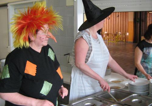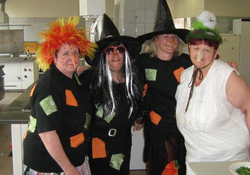 Poslední dubnový oběd ve školní jídelně se nesl ve znamení nadcházející Filipojakubské noci. Naše kuchařky se proměnily v čarodějnice a pořádně oslavily svůj svátek. Ráno přiletěly do kuchyně, kuchařské oblečení schovaly do skříněk a oblékly si své nejoblíbenější šatečky. V kotlích uklohnily oběd a už čekaly na hladové školáky.