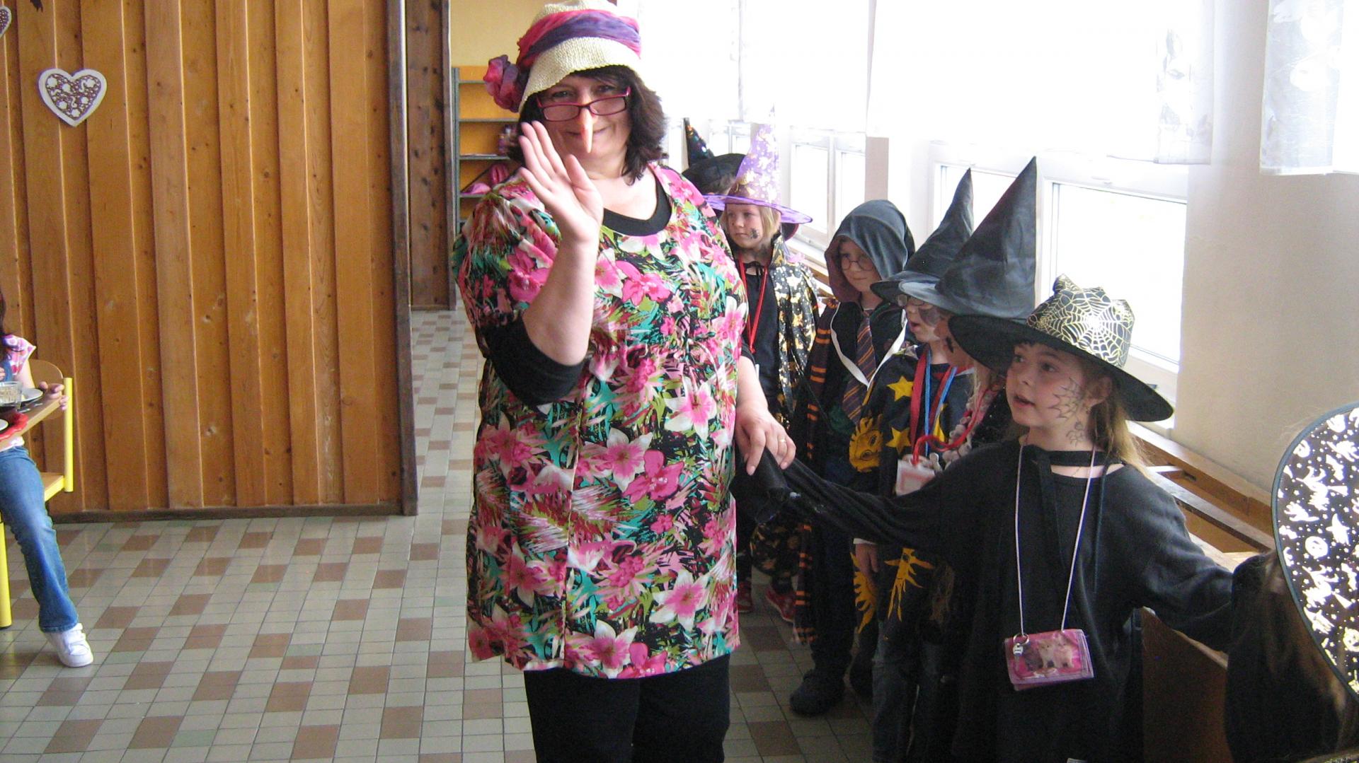 Jaké však bylo překvapení čarodějnických kuchařek, když se místo dětí jídelna zaplnila malými čarodějkami a čaroději. Čarodějnice prostě řádily všude. Však se podívejte na fotečky!