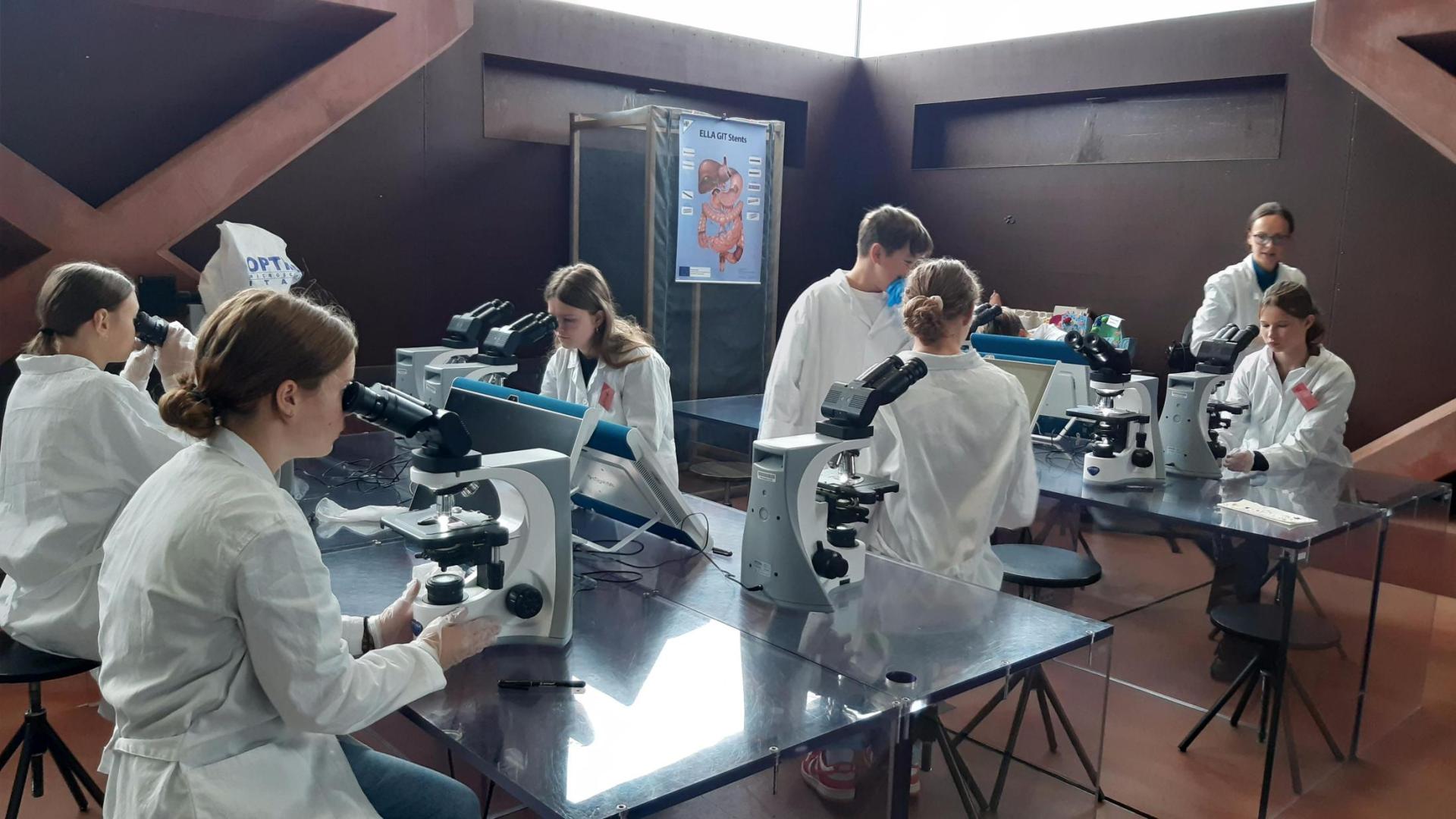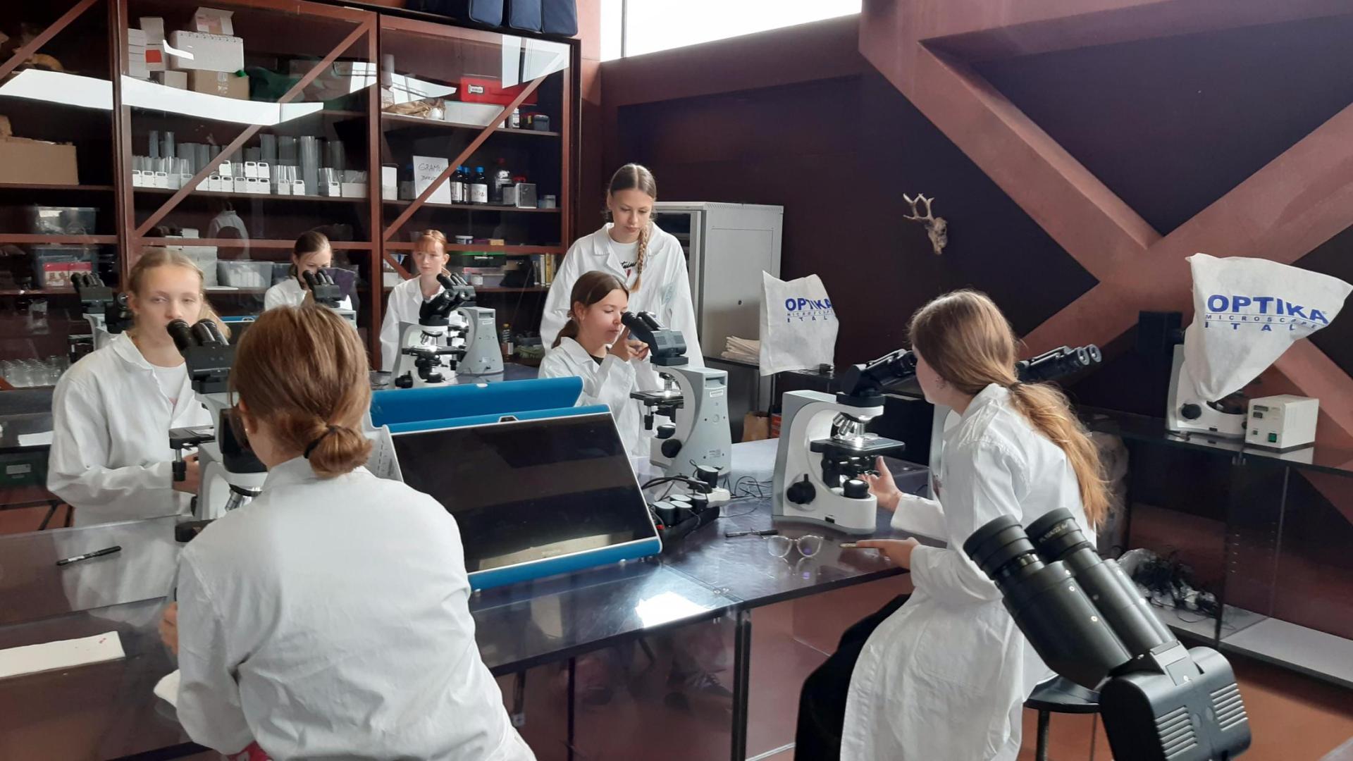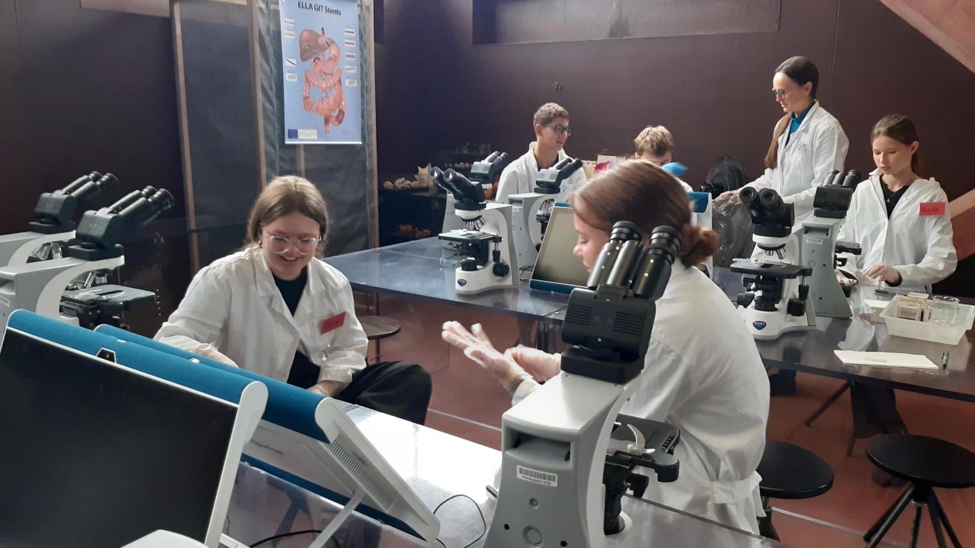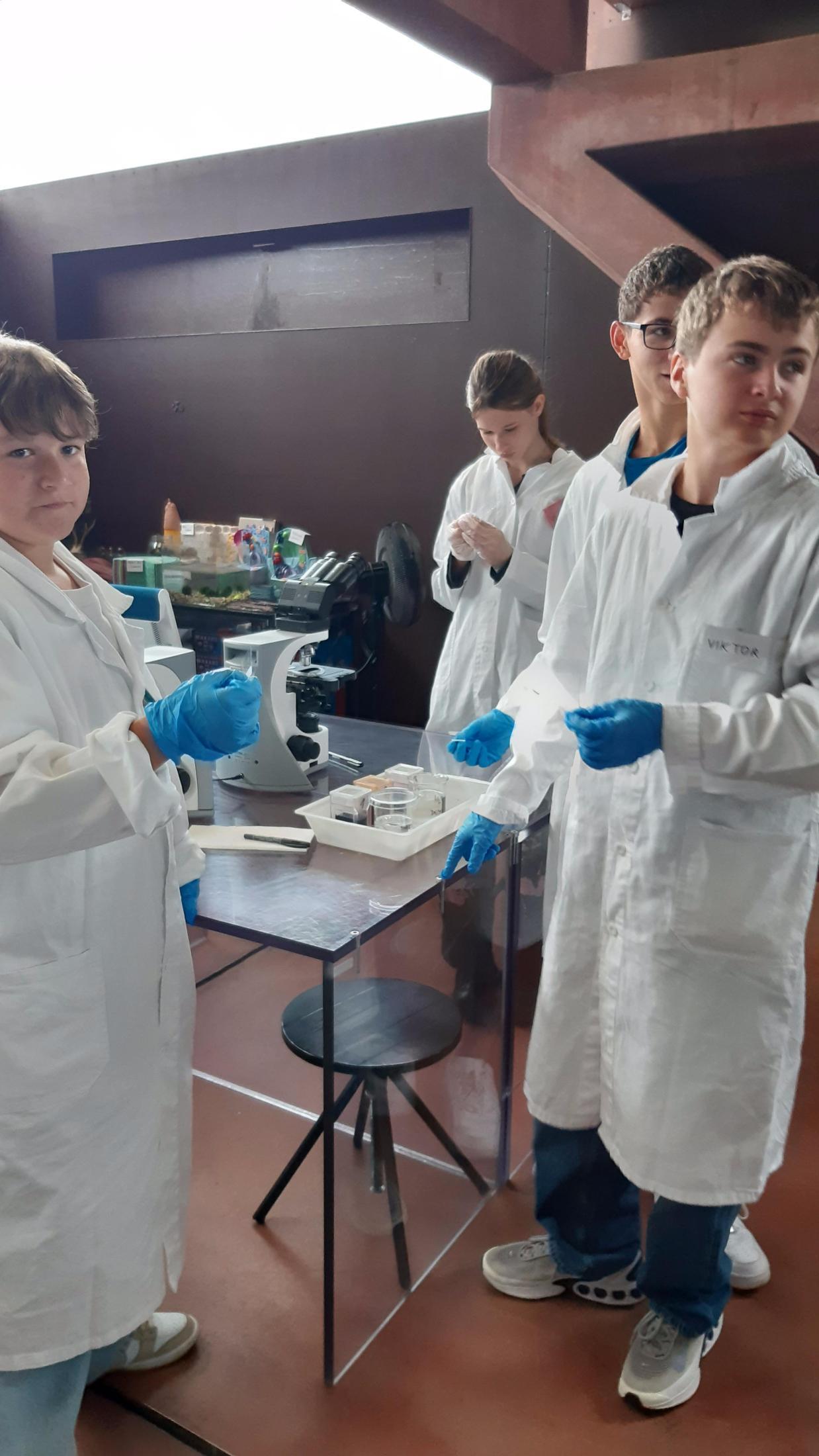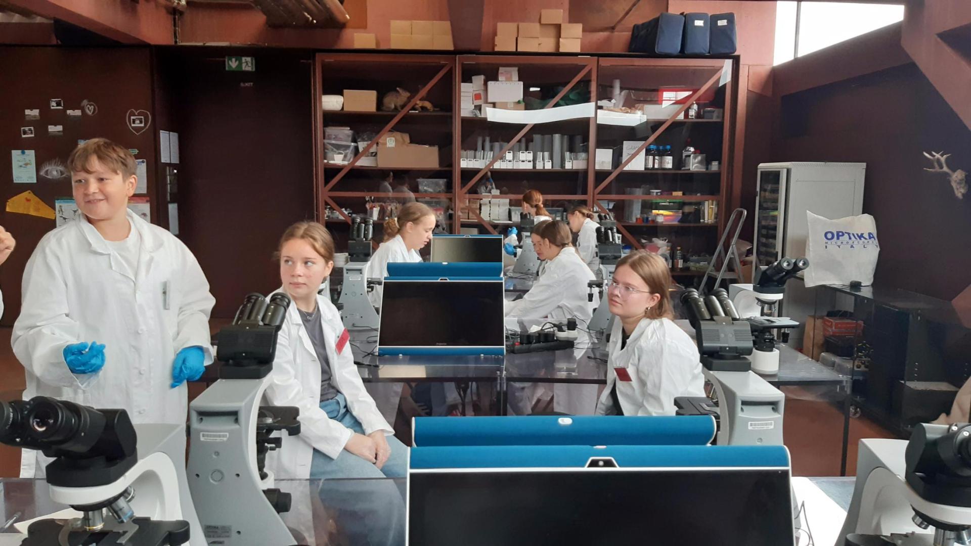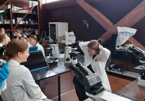 Druhý program byl zaměřený na přírodopis a jmenoval se Mikrosvět v puse. Dozvěděli jsme se, jak je důležitý mikrobiom, který máme ve střevech. Naše střeva jsou zoologická zahrada, kde žije až 1 kg bakterií. Některé bakterie jsou důležité (pomáhají tvořit vitamíny), jiné jsou škodlivé (vedou k nemocem). Naše strava ovlivňuje, které bakterie ve střevech budeme mít. Mikrobiom stimuluje imunitní systém a jeho nerovnováha vede k nemocem. Pomocí Gramova barvení jsme pod mikroskopem pozorovali obsah ústní dutiny. Dozvěděli jsme se, že koky jsou kolečka a bacily tyčinky, a že bakterie jsou větší než viry.