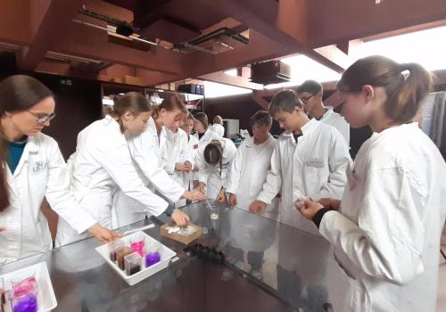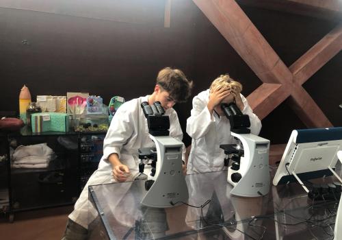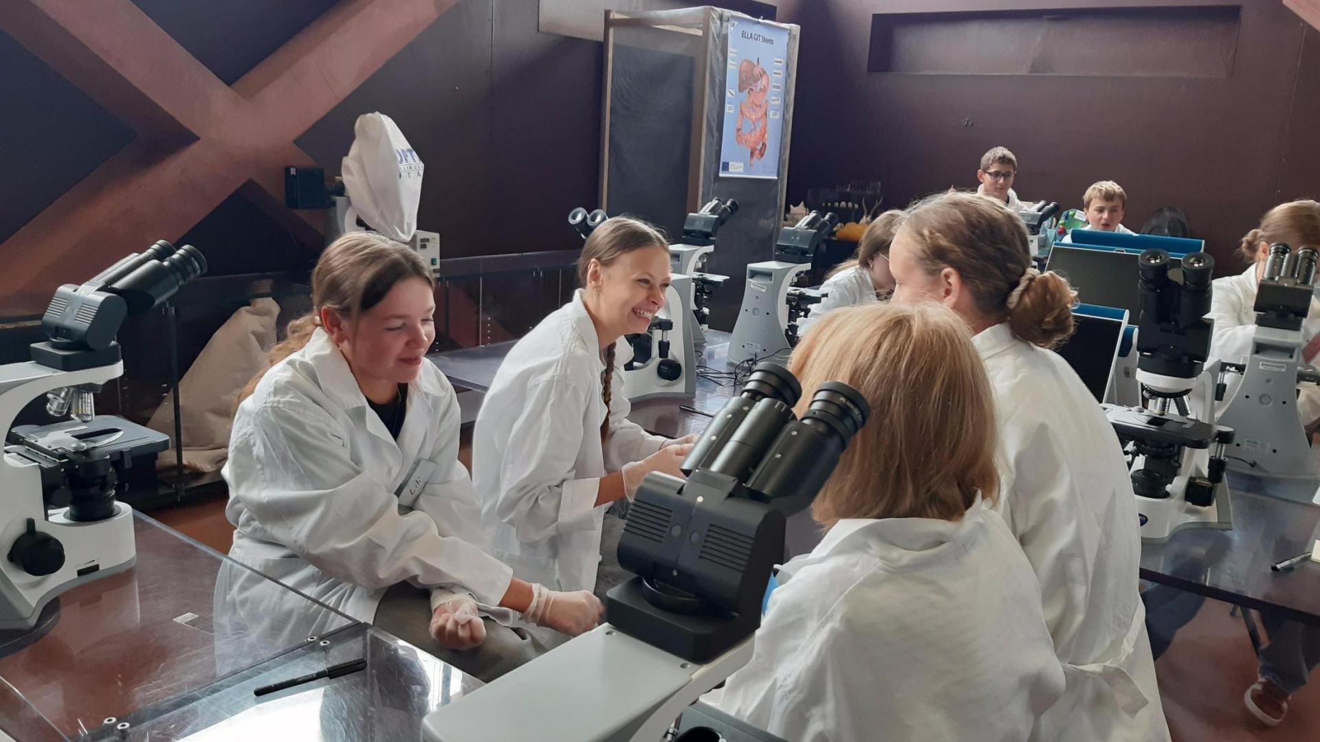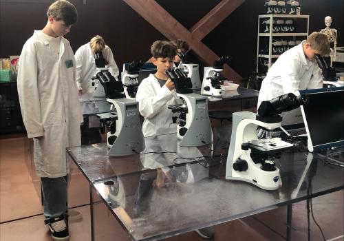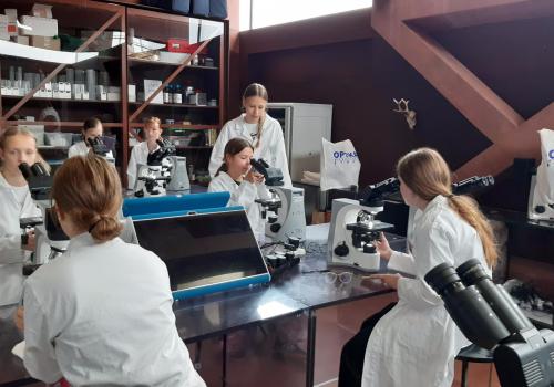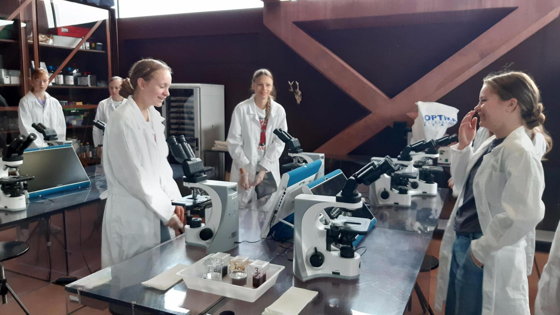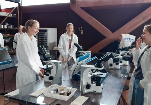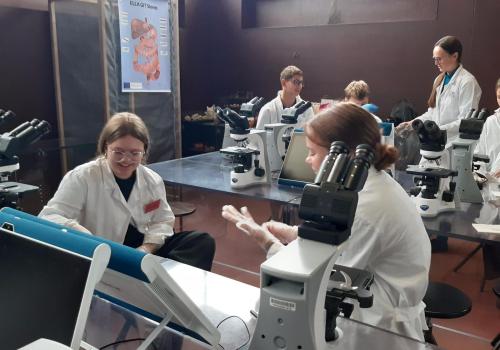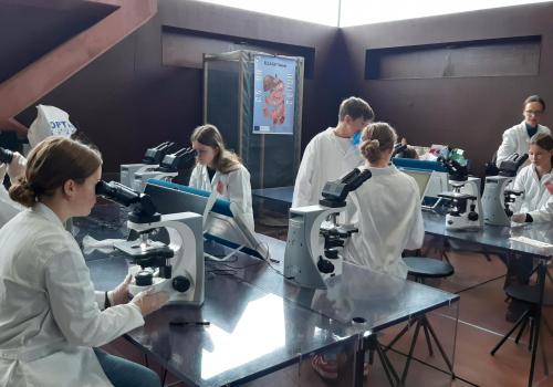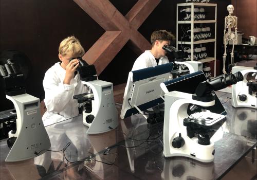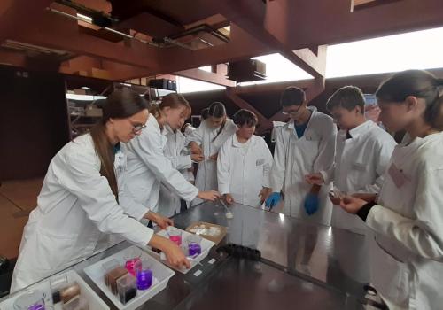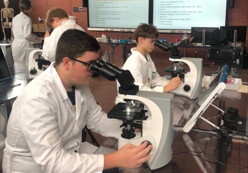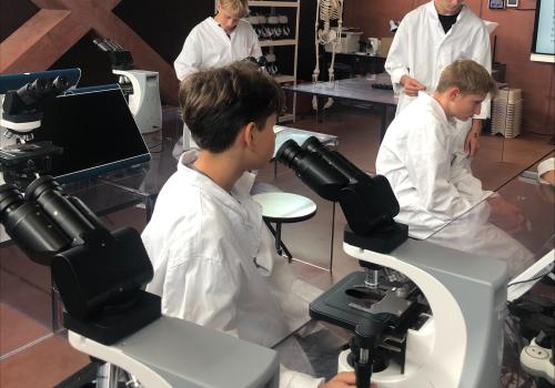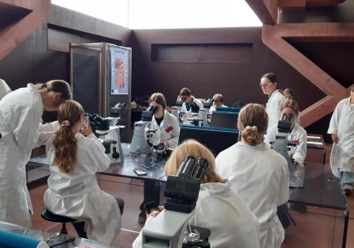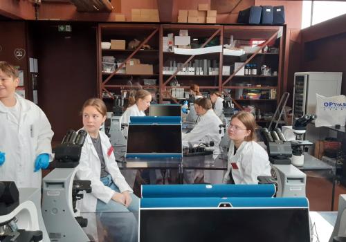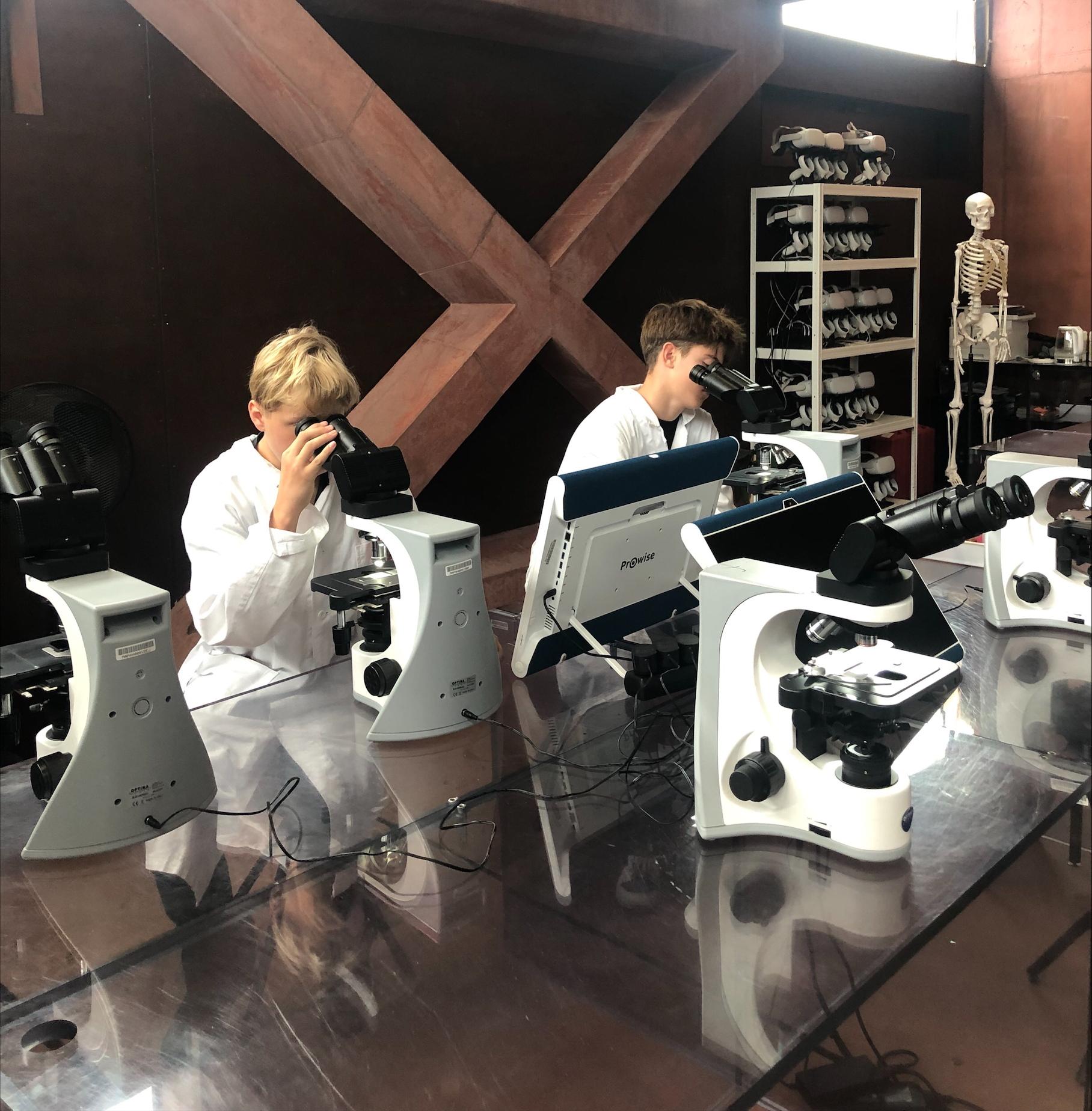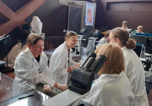 Druhý program byl zaměřený na přírodopis a jmenoval se Mikrosvět v puse. Dozvěděli jsme se, jak je důležitý mikrobiom, který máme ve střevech. Naše střeva jsou zoologická zahrada, kde žije až 1 kg bakterií. Některé bakterie jsou důležité (pomáhají tvořit vitamíny), jiné jsou škodlivé (vedou k nemocem). Naše strava ovlivňuje, které bakterie ve střevech budeme mít. Mikrobiom stimuluje imunitní systém a jeho nerovnováha vede k nemocem. Pomocí Gramova barvení jsme pod mikroskopem pozorovali obsah ústní dutiny. Dozvěděli jsme se, že koky jsou kolečka a bacily tyčinky, a že bakterie jsou větší než viry.