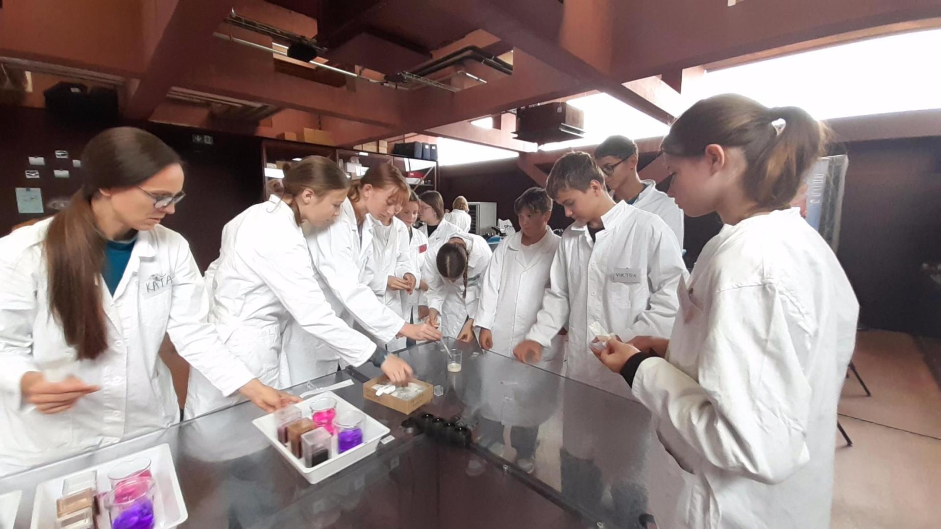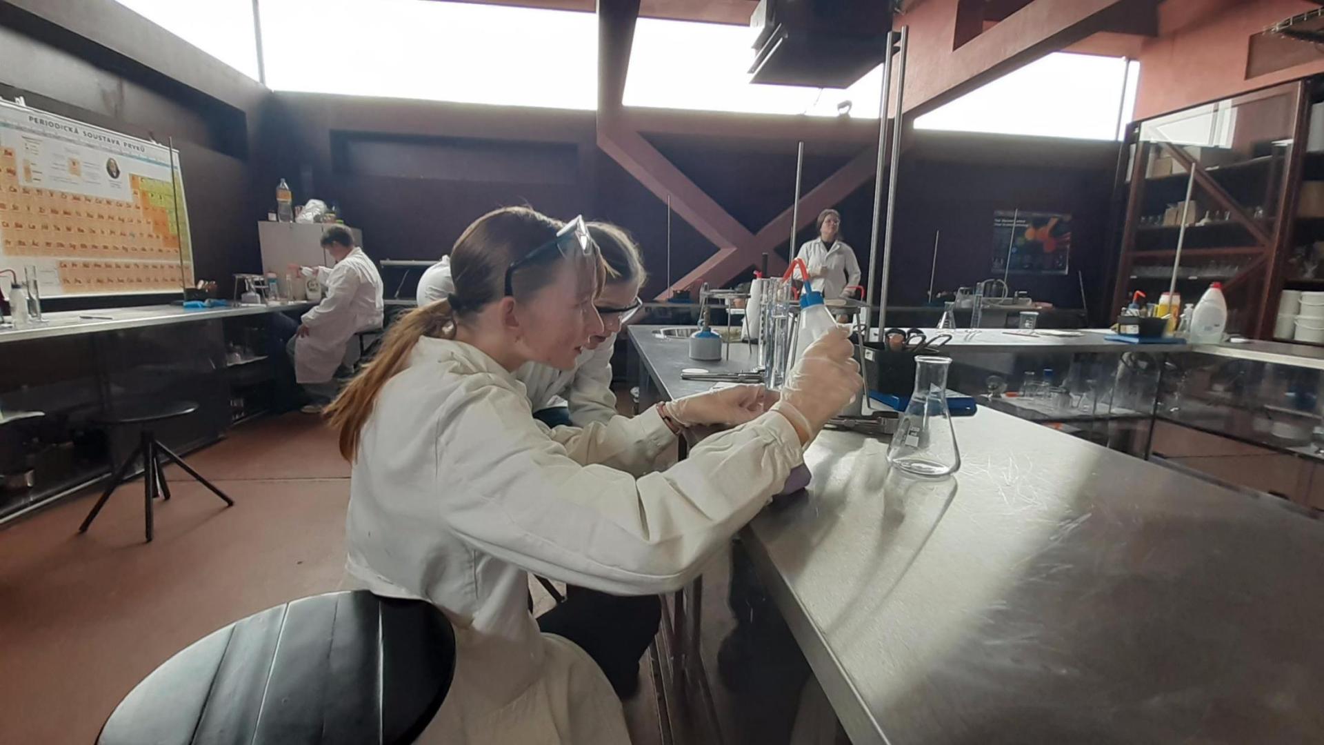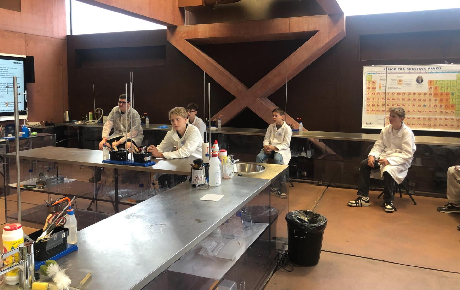 Ve čtvrtek 18. 09. 2025 se naše třída zúčastnila dvou výukových programů ve Sféře v Automatických mlýnech. Jeden program byl zaměřený na chemii a jmenoval se Světélkující krystaly.