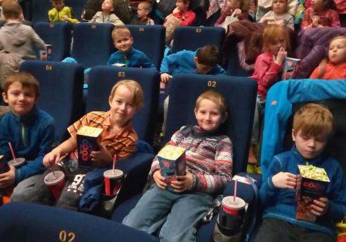 Ve čtvrtek jsme měli ve škole pohodu. Pouštěli jsme lodičky, baštili cukroví a hráli si hry. Pátek patřil kinu a vánoční pohádce Grich.