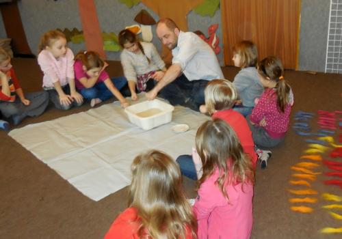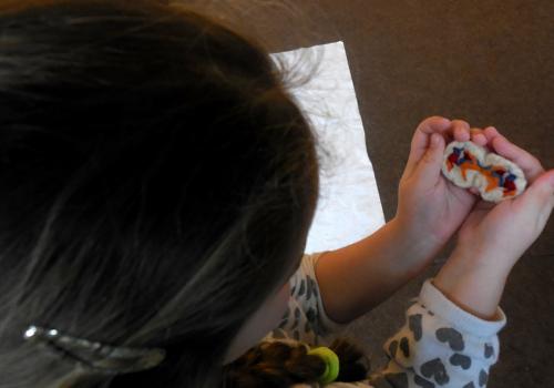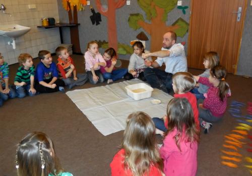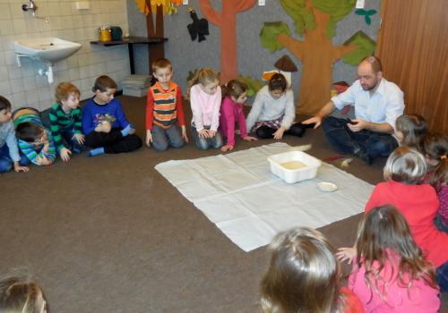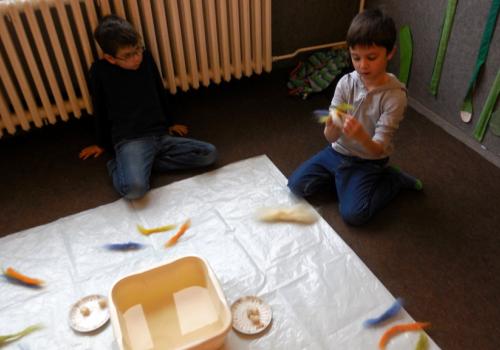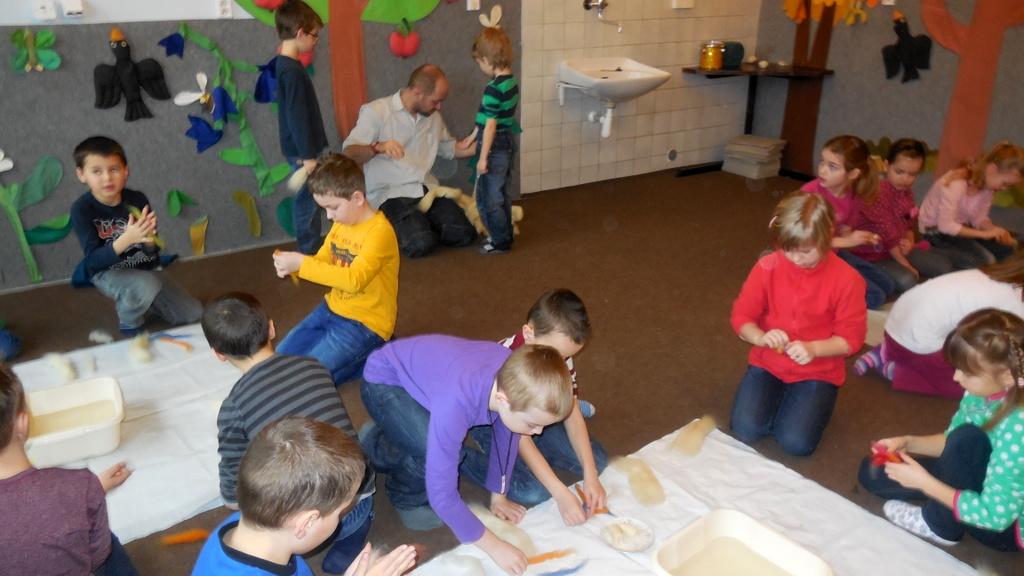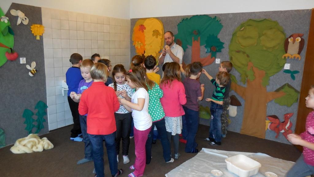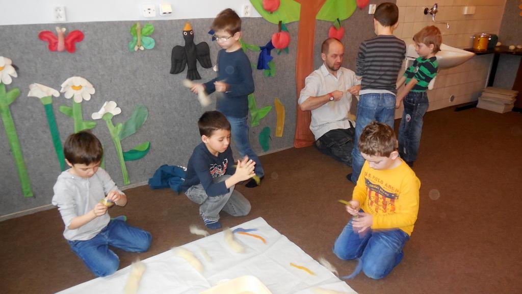 V Ekocentru jsme z ovčí vlny mačkali, kouleli a zase mačkali a kouleli kuličky. Dalo to hodně koulení a mačkání. Ondra nám poradil zaklínadlo a že se naše práce určitě vyplatí. A taky JO! Uvnitř kuličky je pěkný obrázek.