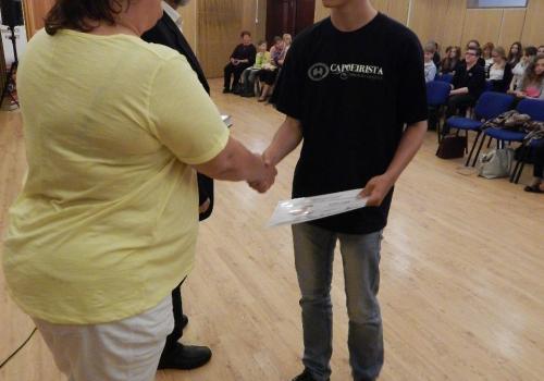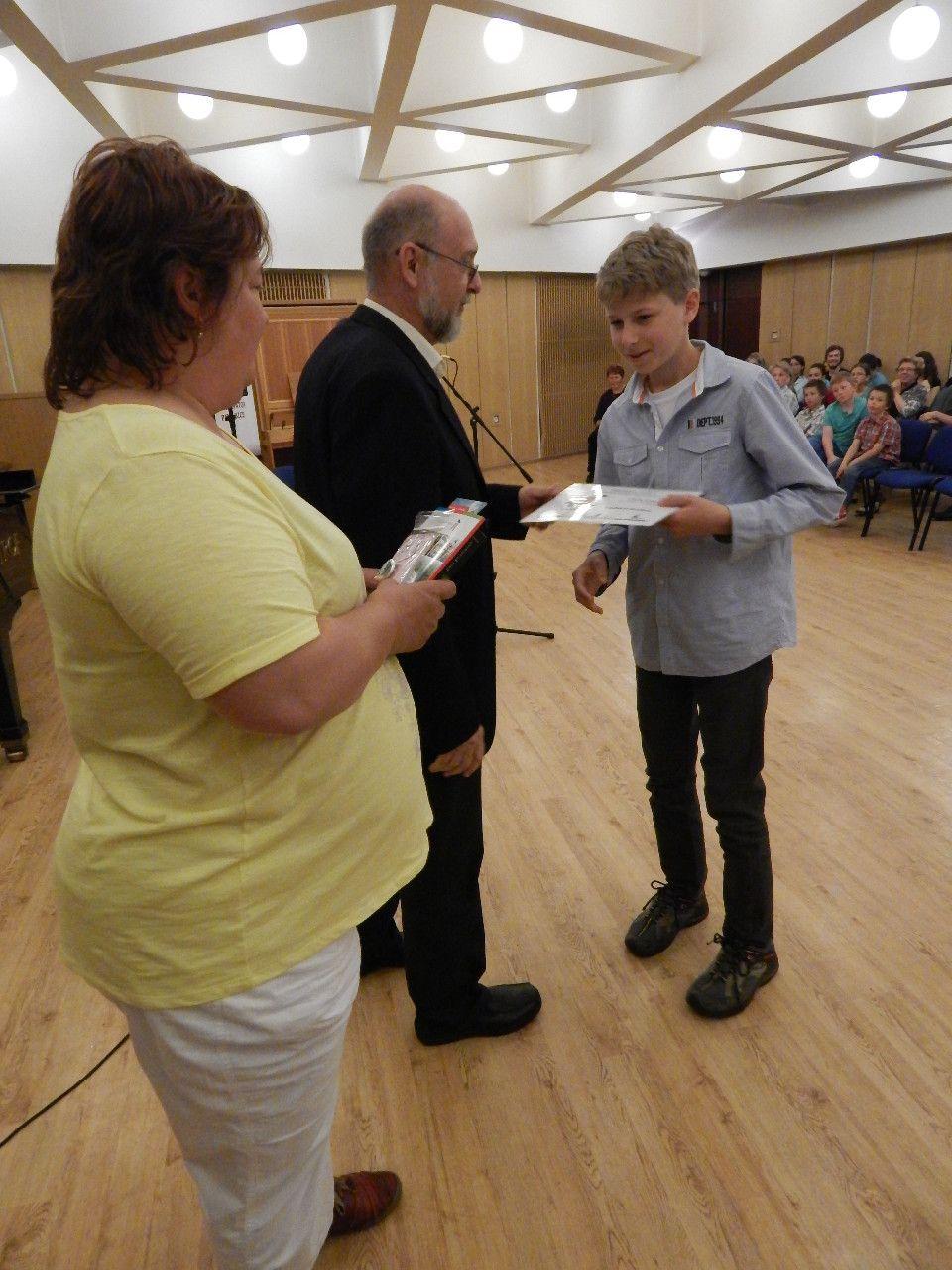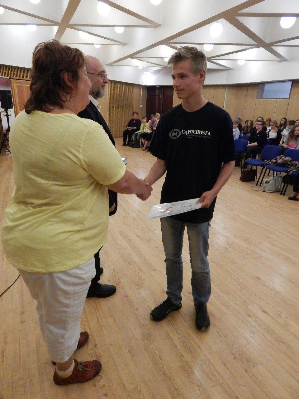 Slavnostní vyhlášení literární soutěže „O Pardubický pramínek “, která se pořádá pod záštitou Krajské knihovny v Pardubicích, se konalo v pardubickém Domě hudby. Na vyhlášení jsme šli společně s paní učitelkou Hlobilovou a spolužáky Petrem Kučerou, Davidem Vinšem a Vojtou Kučerou. Vyhlášení se konalo v místnosti s varhany a zvláštně zdobeným stropem, byly zde vyskládány židle do několika řad tak, aby se každý přítomný vešel. Úvodní řeč měla ředitelka krajské knihovny a spisovatel - psycholog Dr. Macháček, kteří poté předávali ceny a gratulovali umístěným. O hudební zpestření se několikrát postarali studenti konzervatoře. Samotné vyhlašování a předávání cen vypadalo tak, že po kategoriích byla vyvolávána jména umístěných, kteří následně přešli k paní ředitelce knihovny a podali si s ní a s panem psychologem ruku, dostali diplom, knížku a jiné drobné ceny, podepsali se do předávací listiny a šli si za potlesku ostatních zpět sednout. Na konci jsme se všichni společně vyfotili. Za naši školu se umístil Vojta Kučera na 2. místě v kategorii 6. - 7. tříd a já, Vojtěch Makula, na 3. místě v kategorii 8. – 9. tříd.