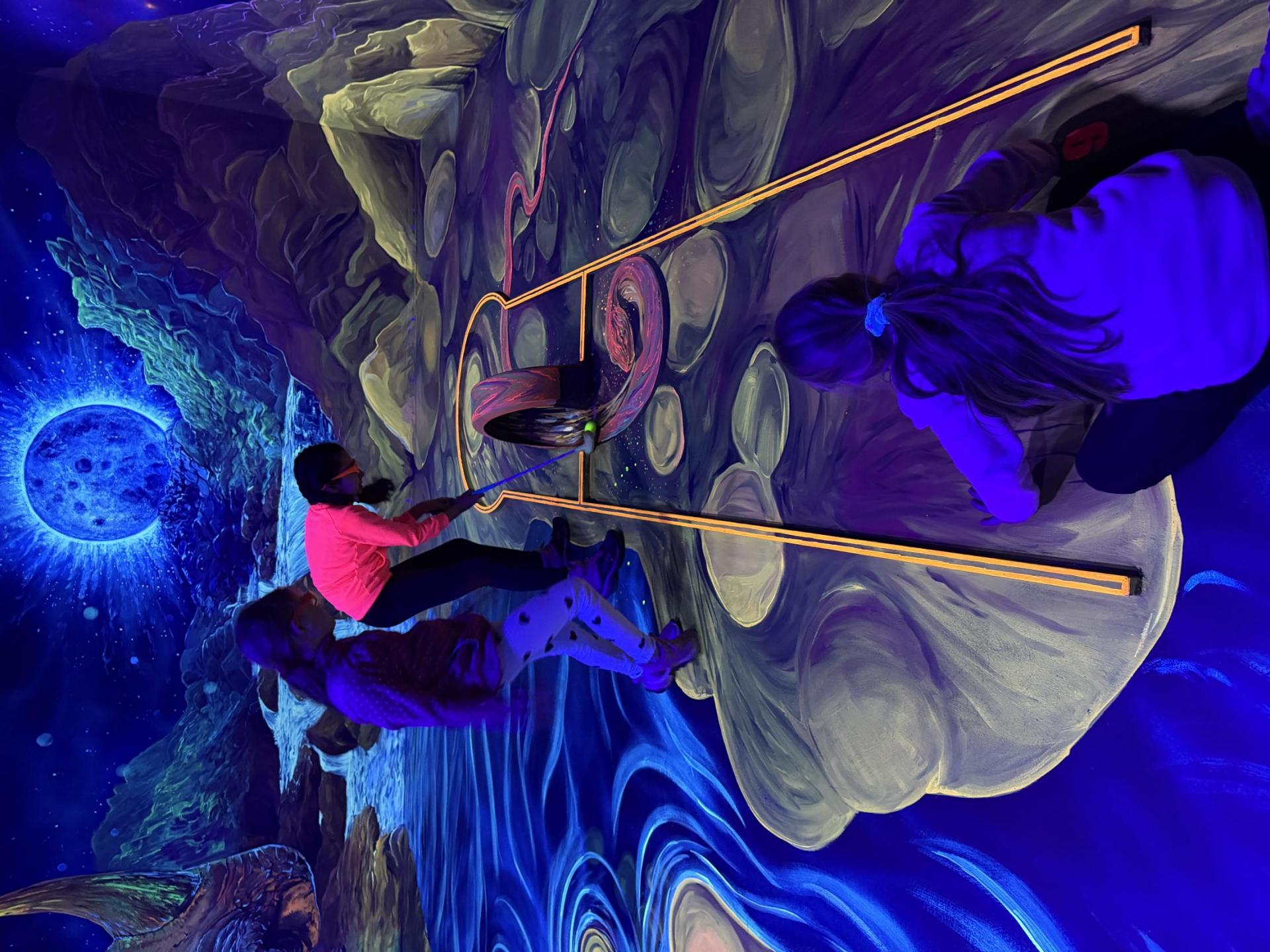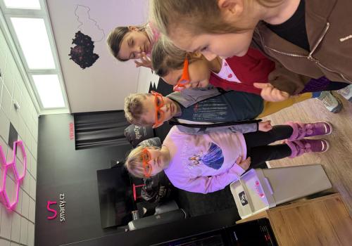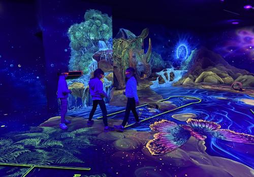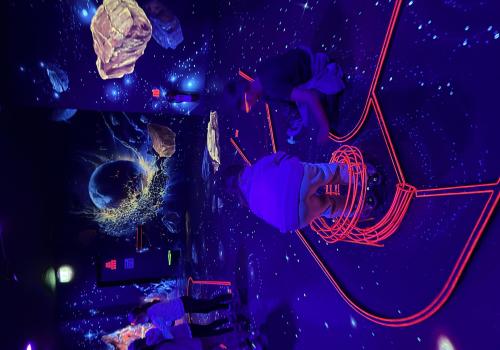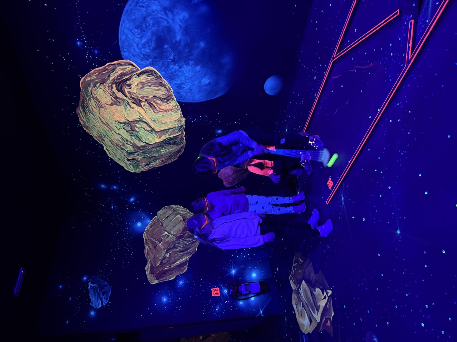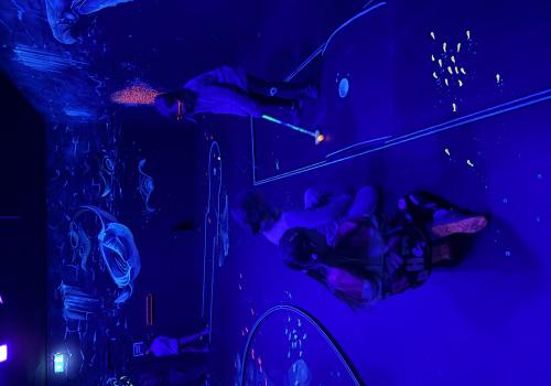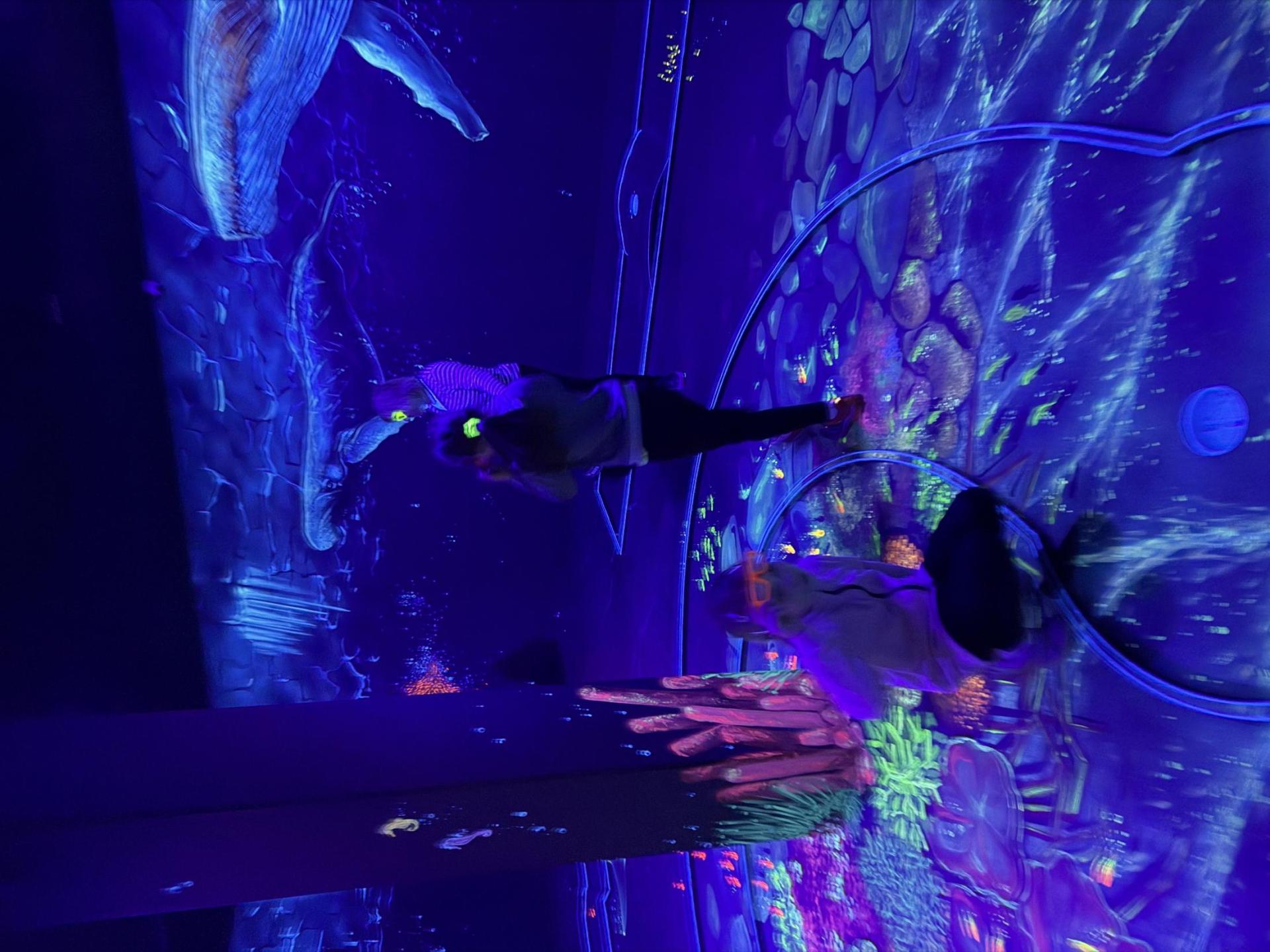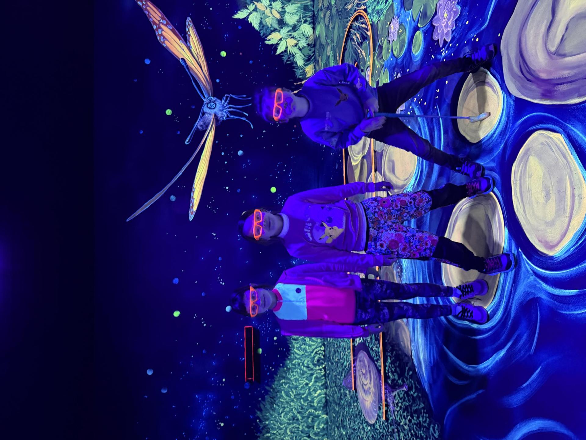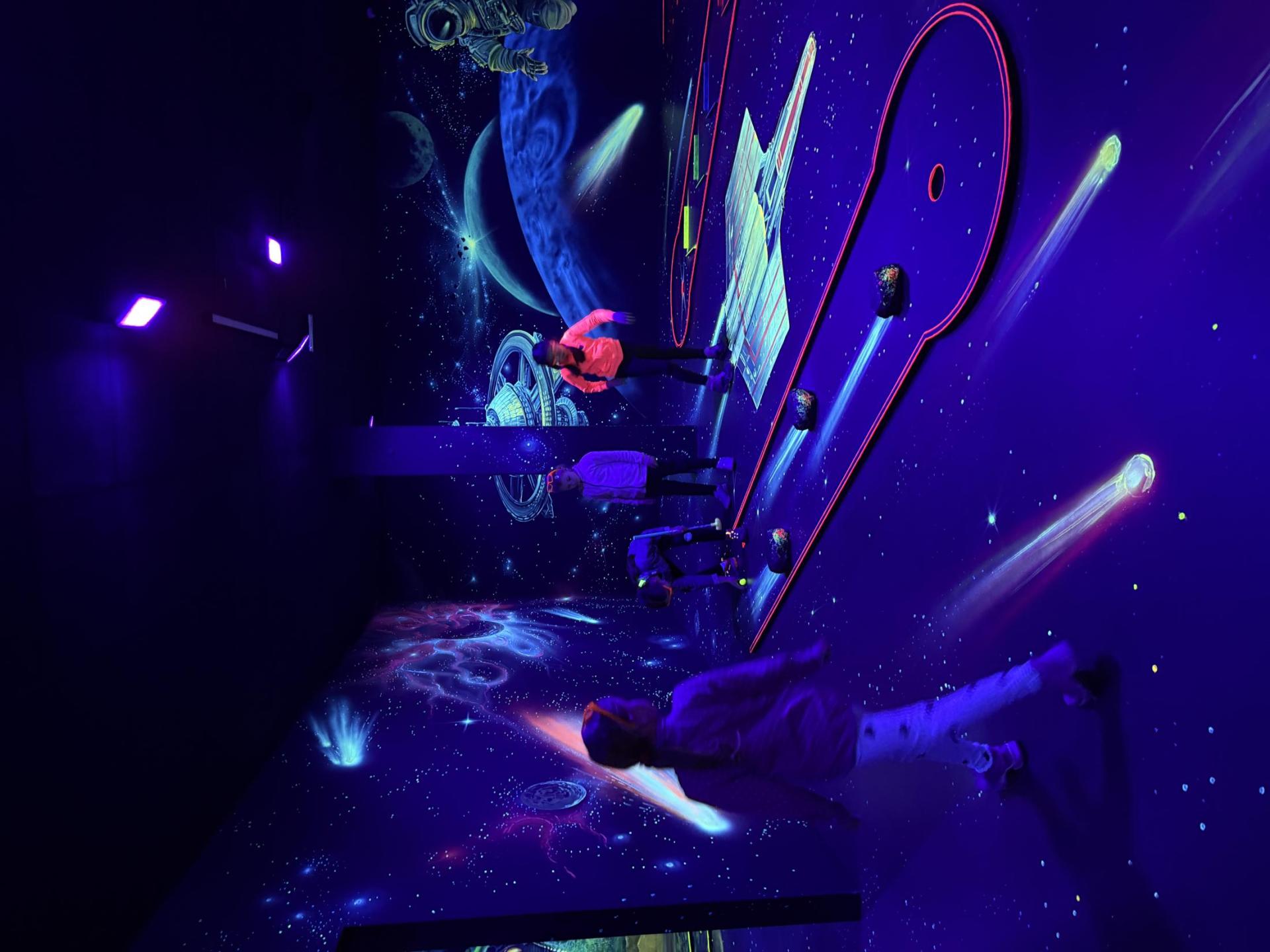 Vydali jsme se vlakem, projeli okružní jízdu Hradcem až jsme dorazili na 3D Black Light Minigolf.