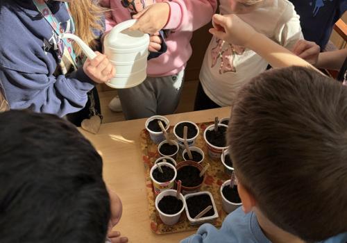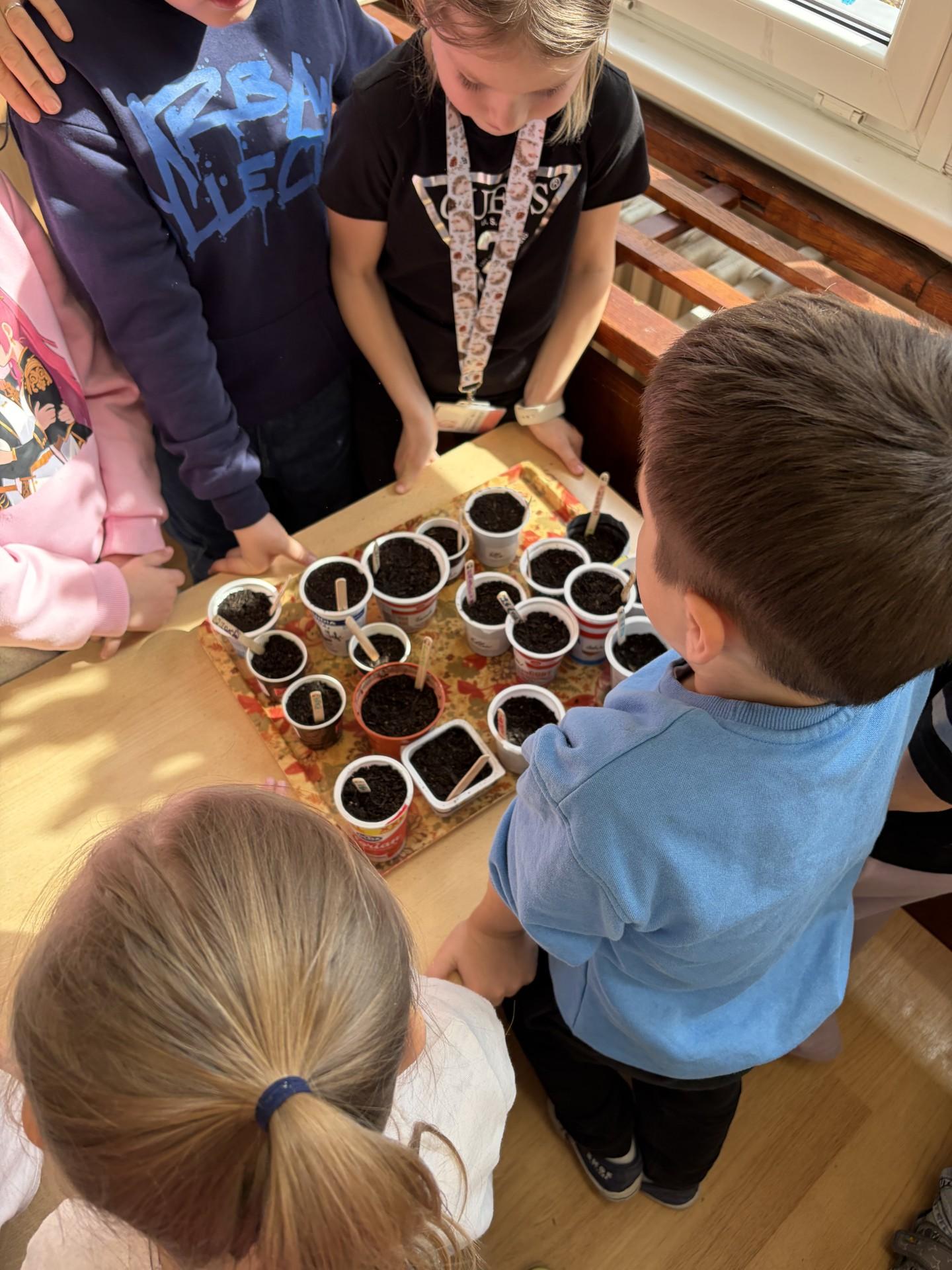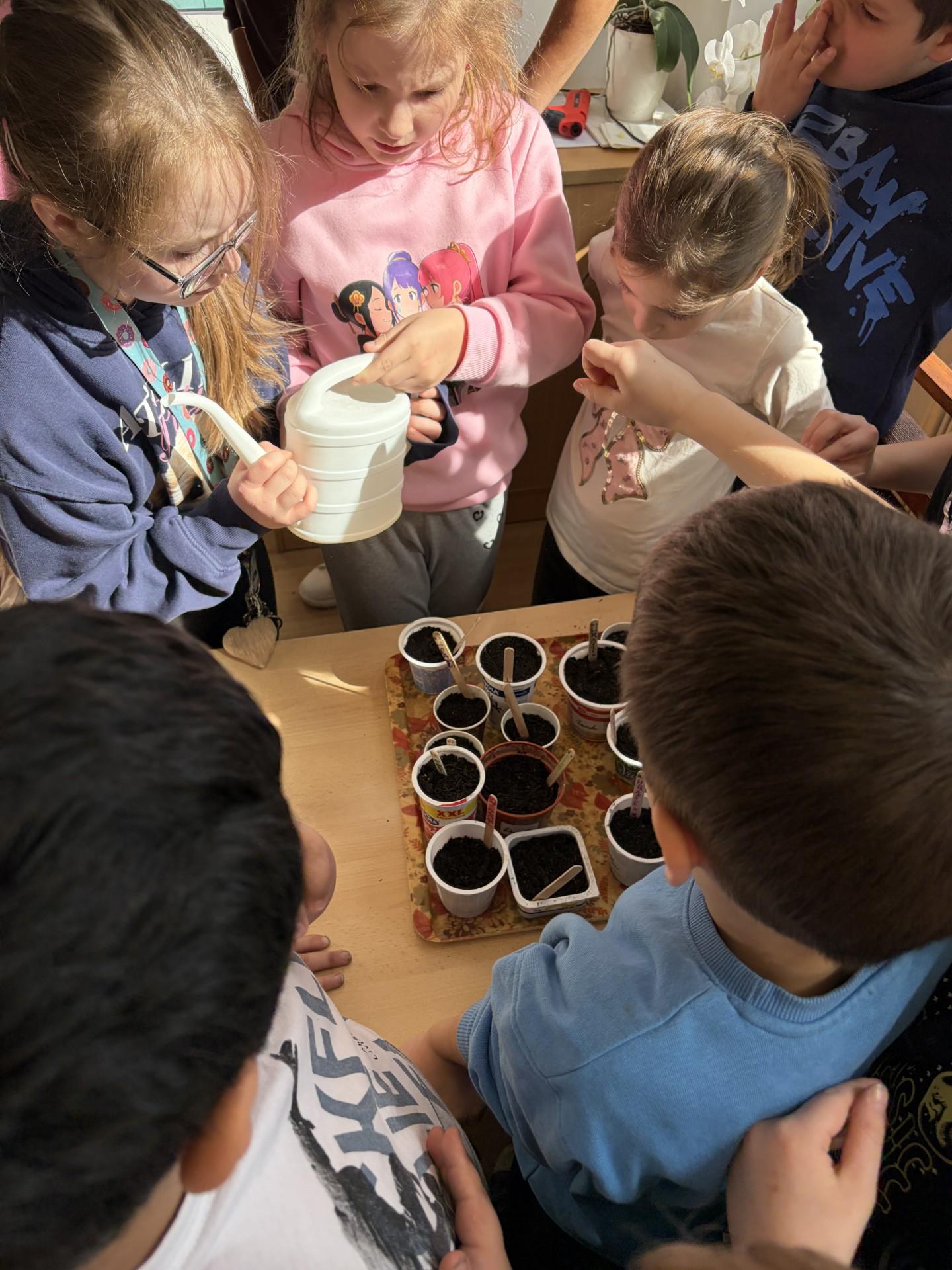 Včera jsme si ve třídě povídali o rostlinkách – jak rostou, co potřebují k životu a jak se o ně správně starat. Společně jsme si pak vyzkoušeli zasadit hrášek do květináčku. Každý měl možnost přiložit ruku k dílu a pomoci s výsadbou. Teď budeme naši rostlinku pravidelně zalévat, pozorovat, jak roste, a starat se o ni, aby se jí u nás dobře dařilo.