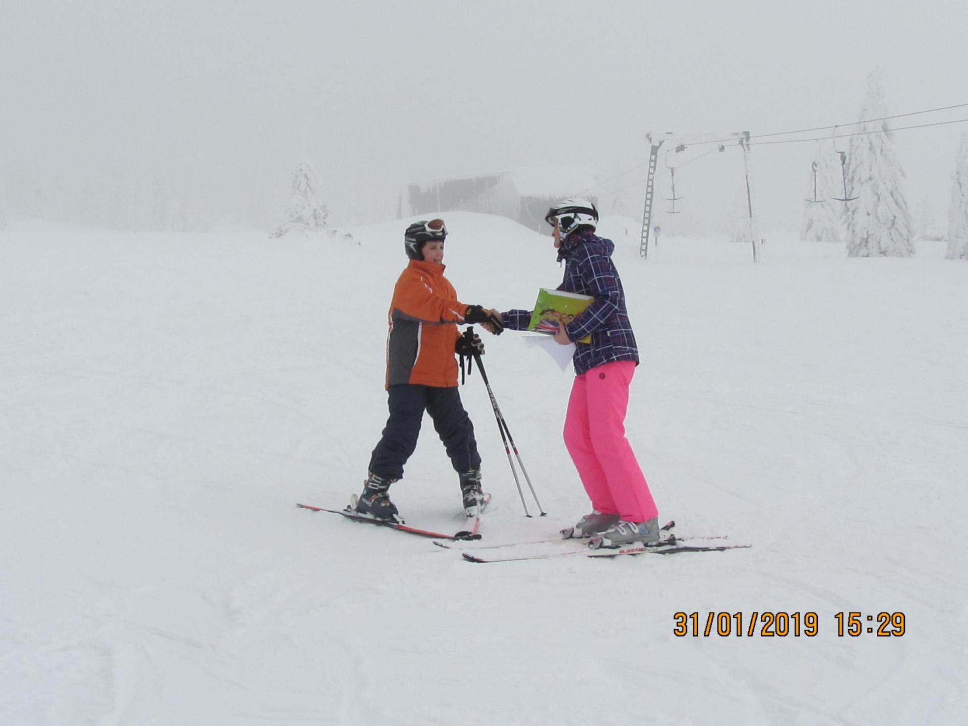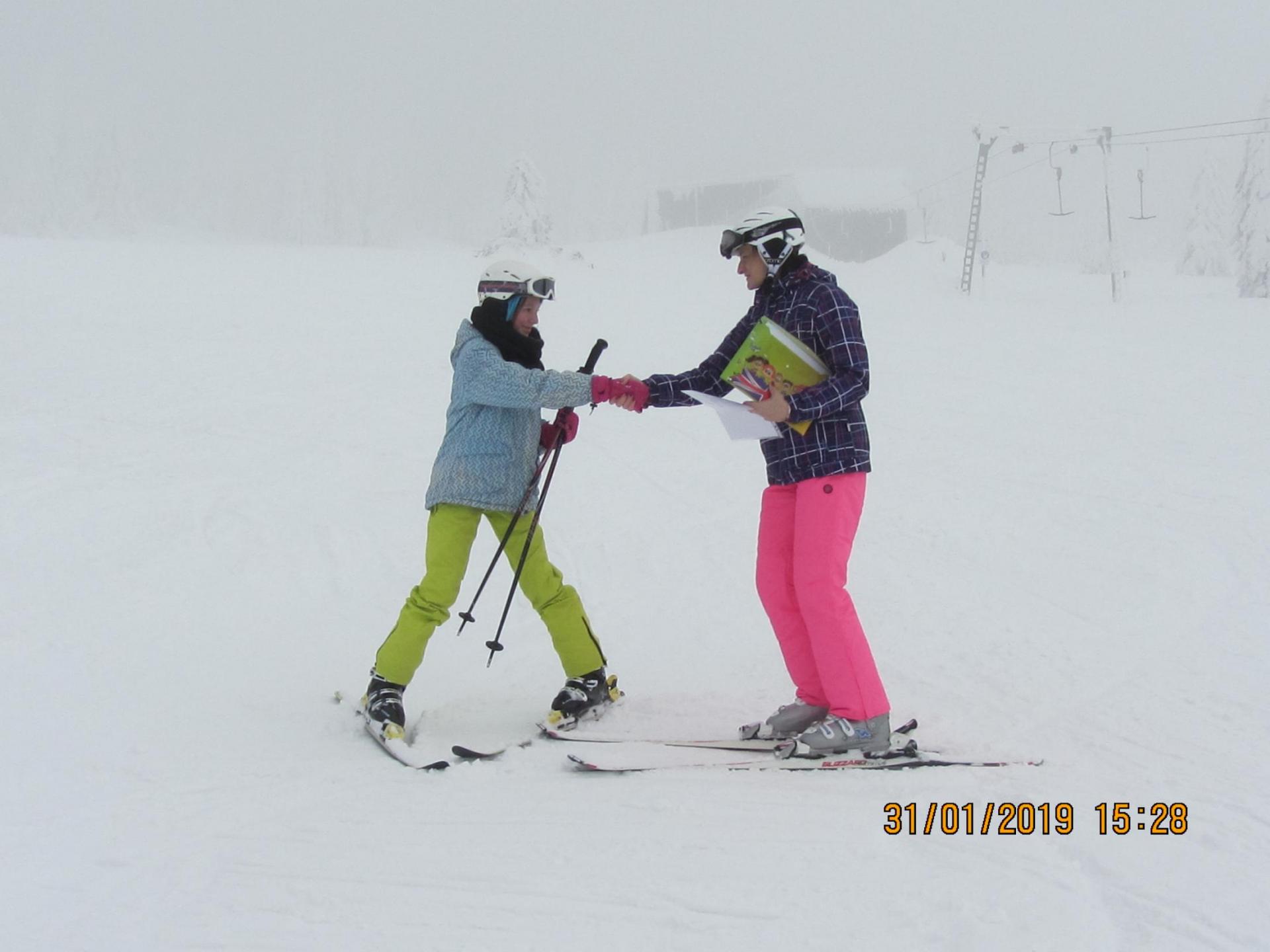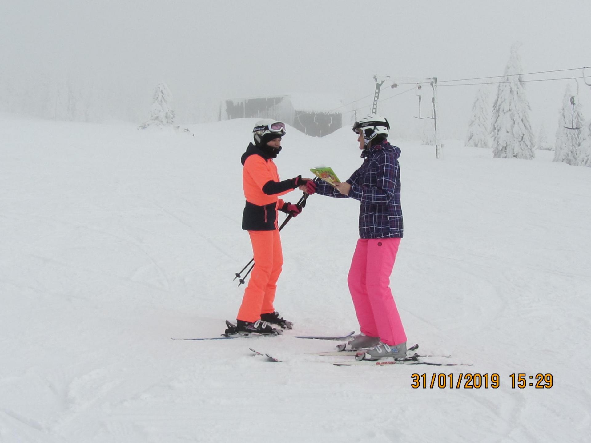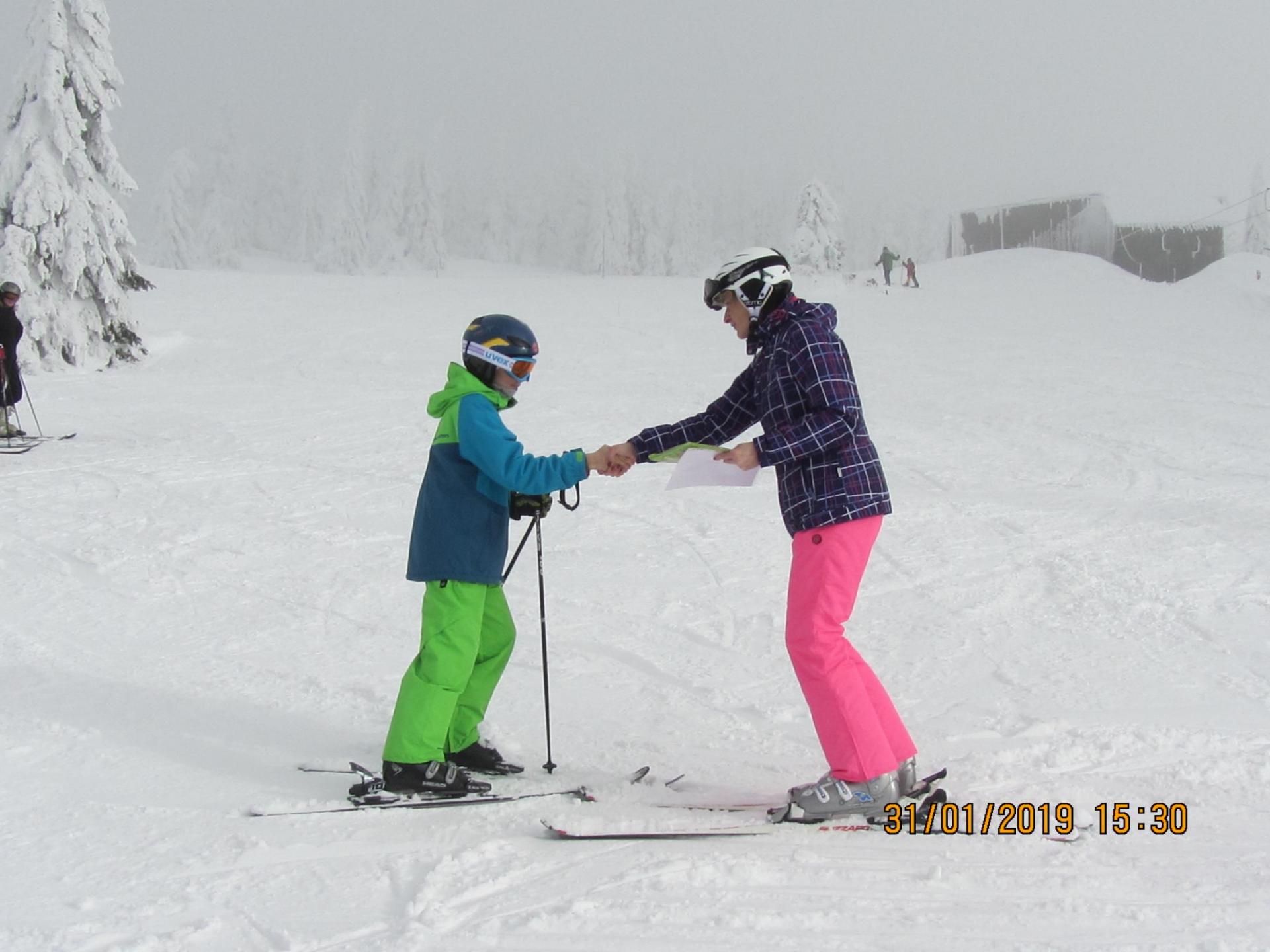 Letošní pololetní vysvědčení dostaly některé děti na horách na svahu ...musely si pro něj dojet na lyžích a zvládly to na jedničku .