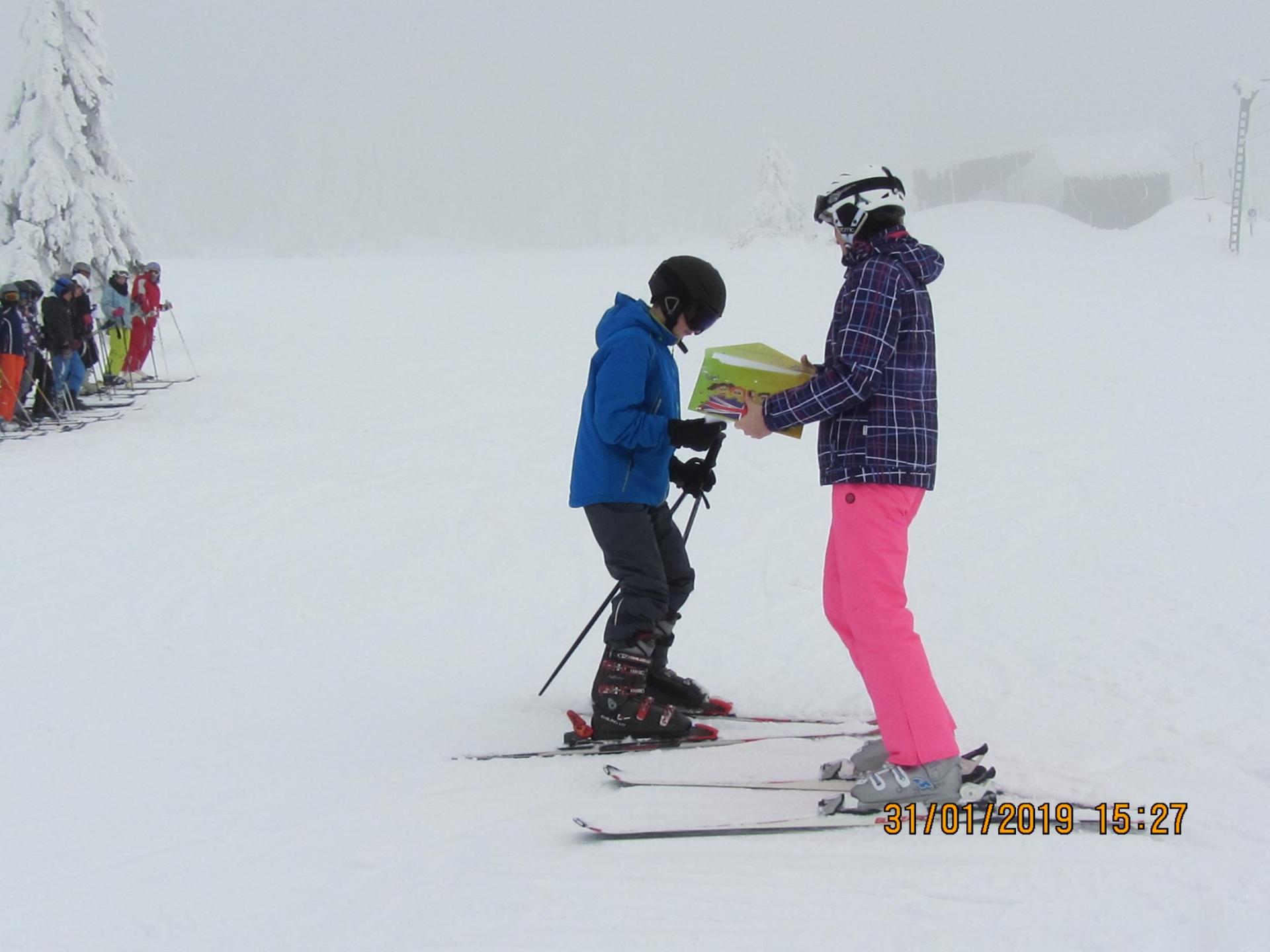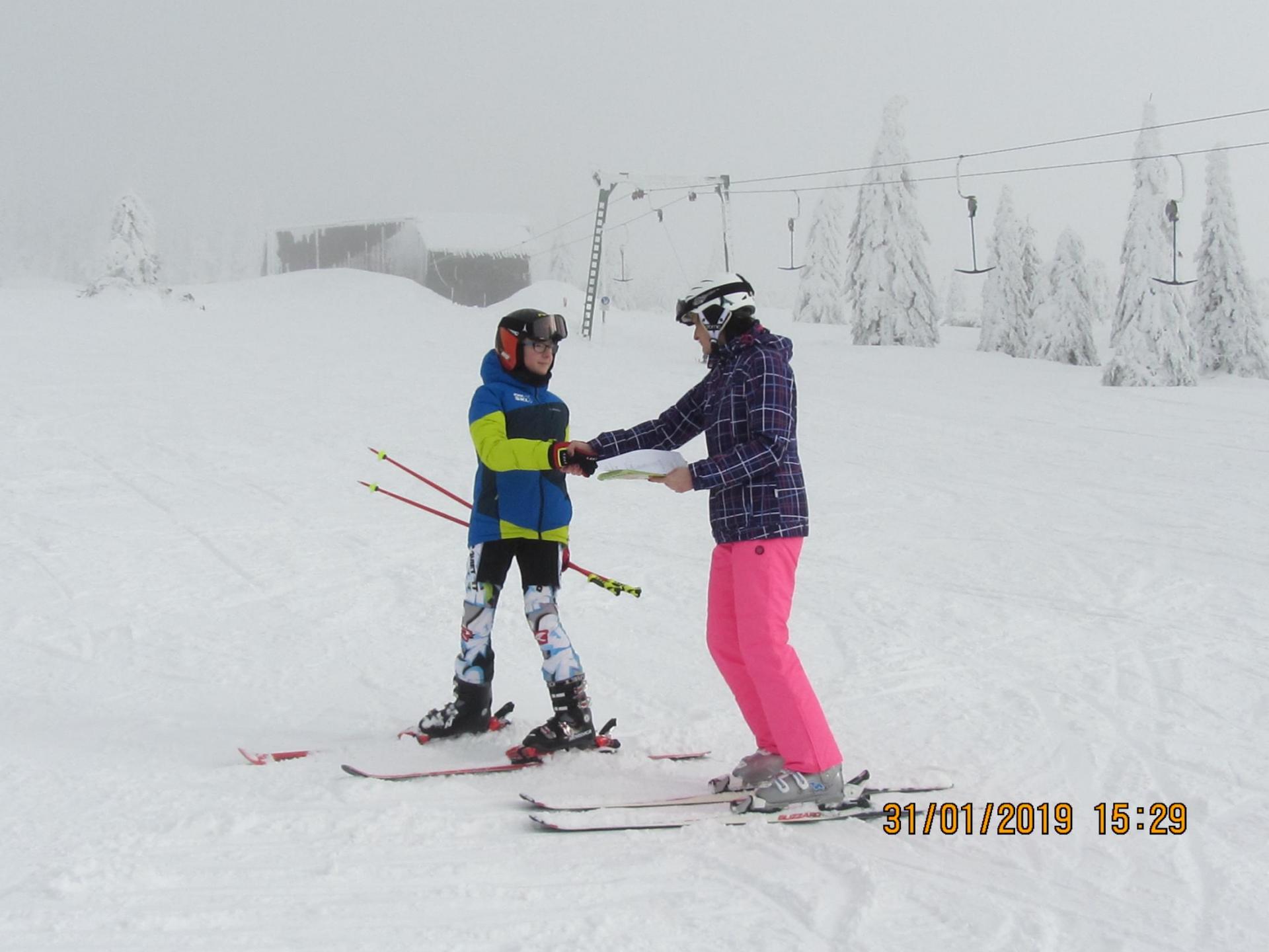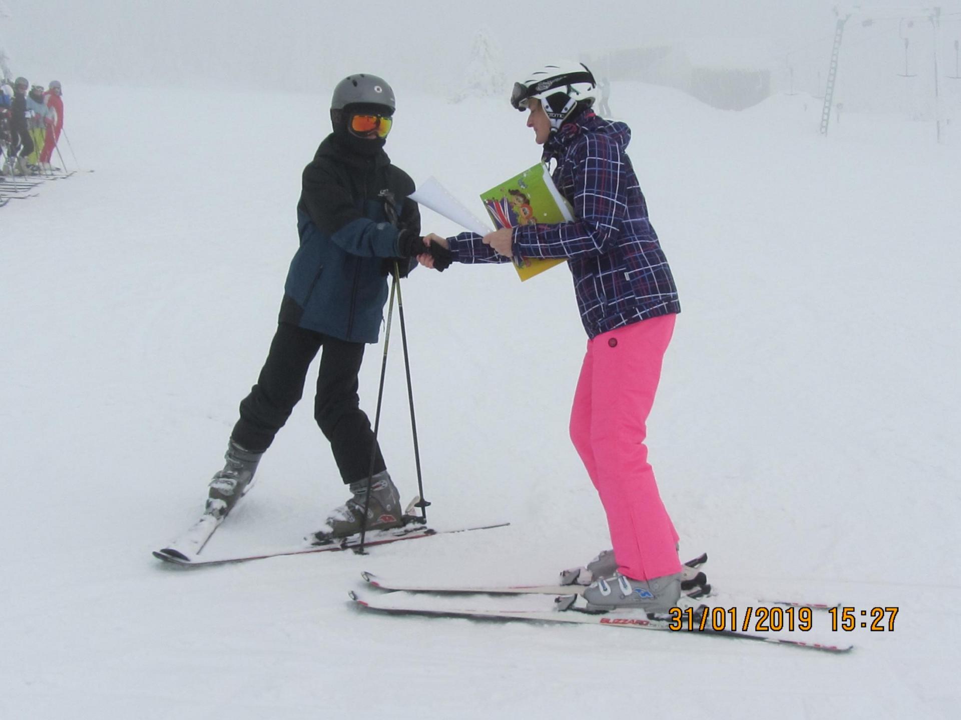 Letošní pololetní vysvědčení dostaly některé děti na horách na svahu ...musely si pro něj dojet na lyžích a zvládly to na jedničku .