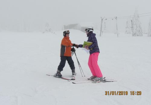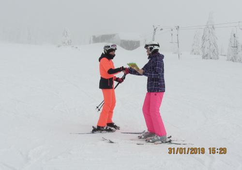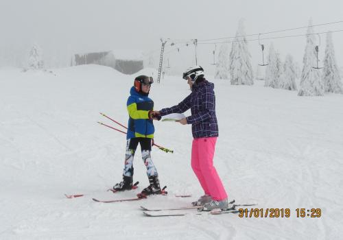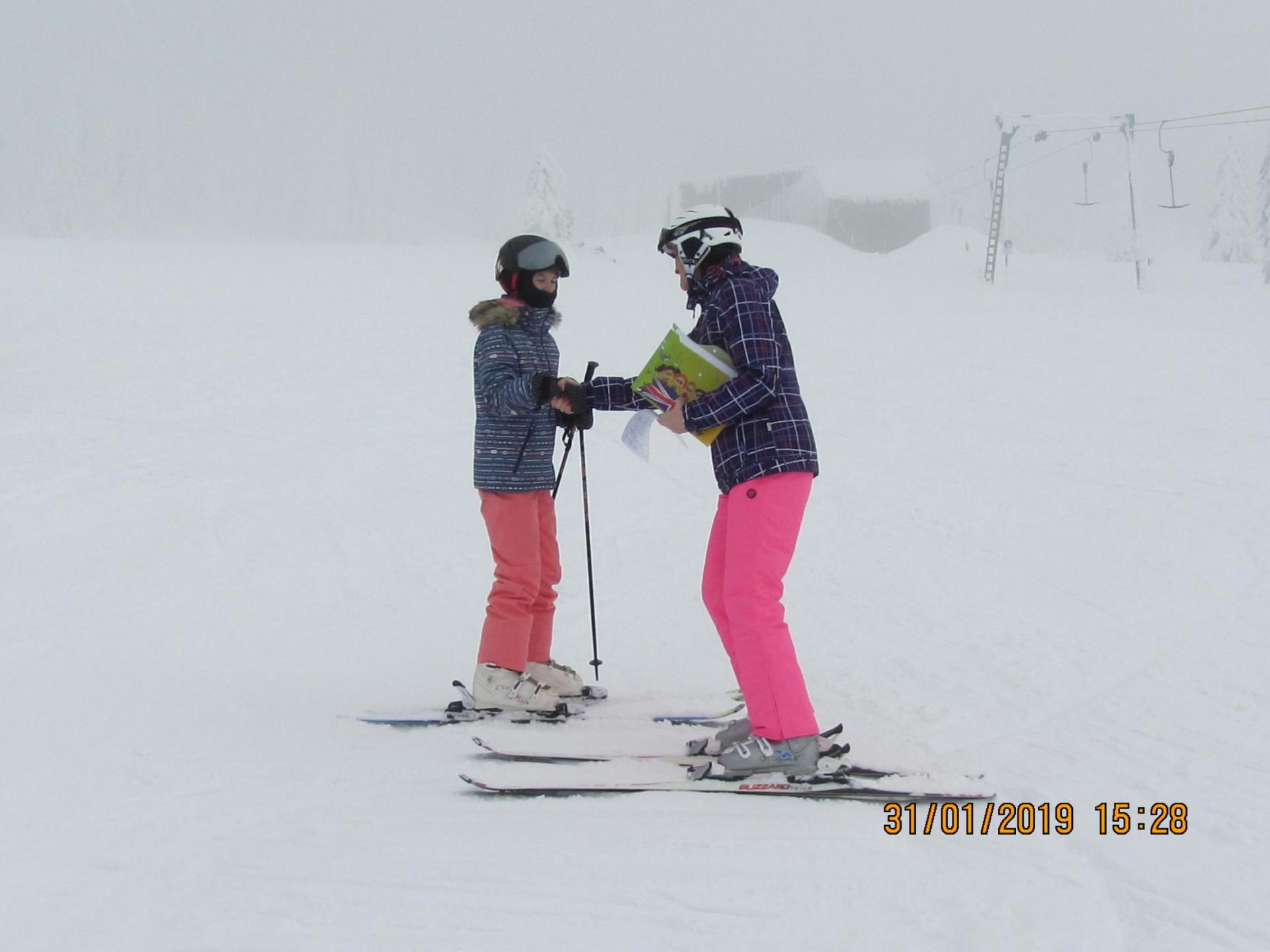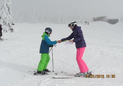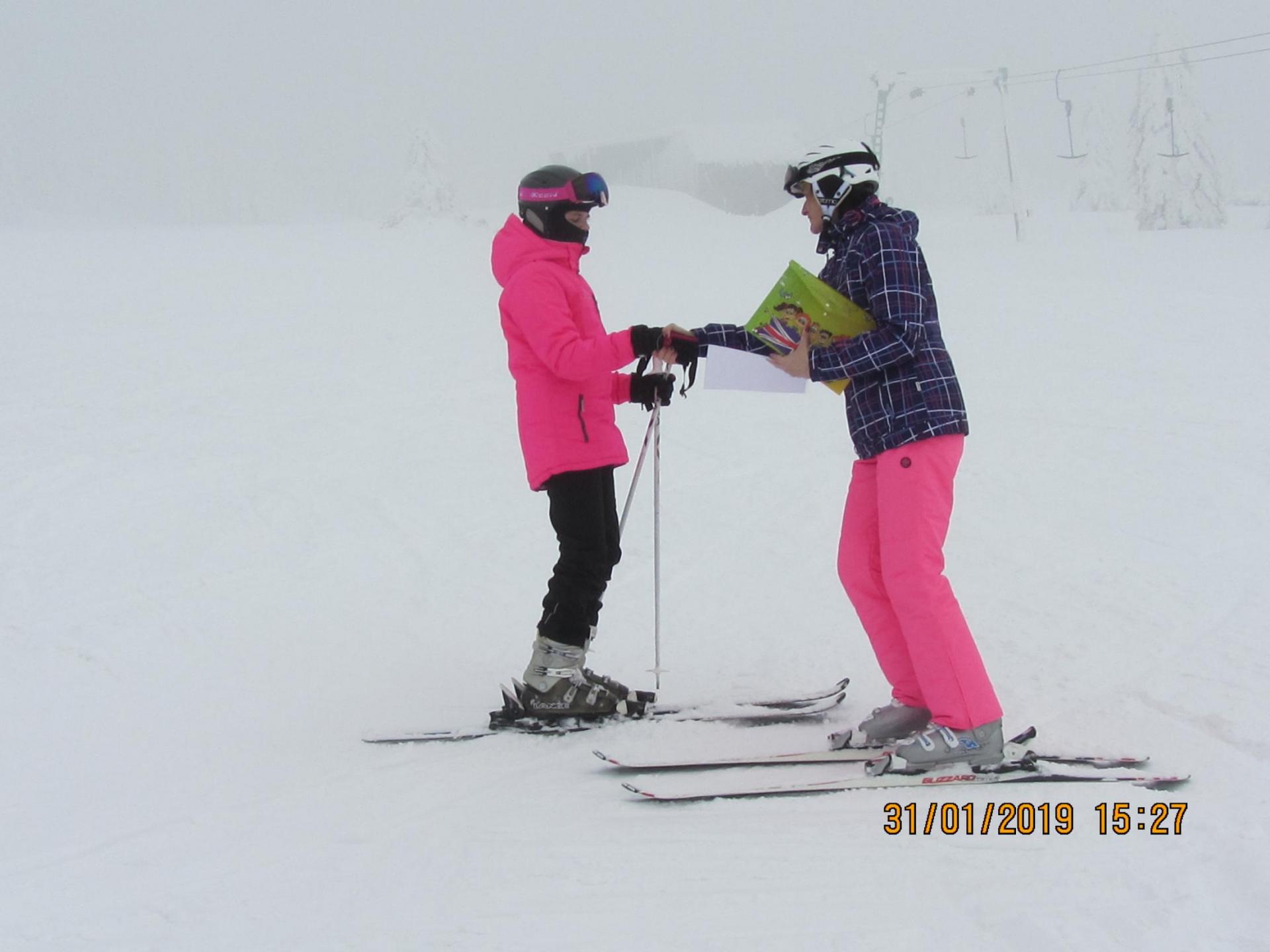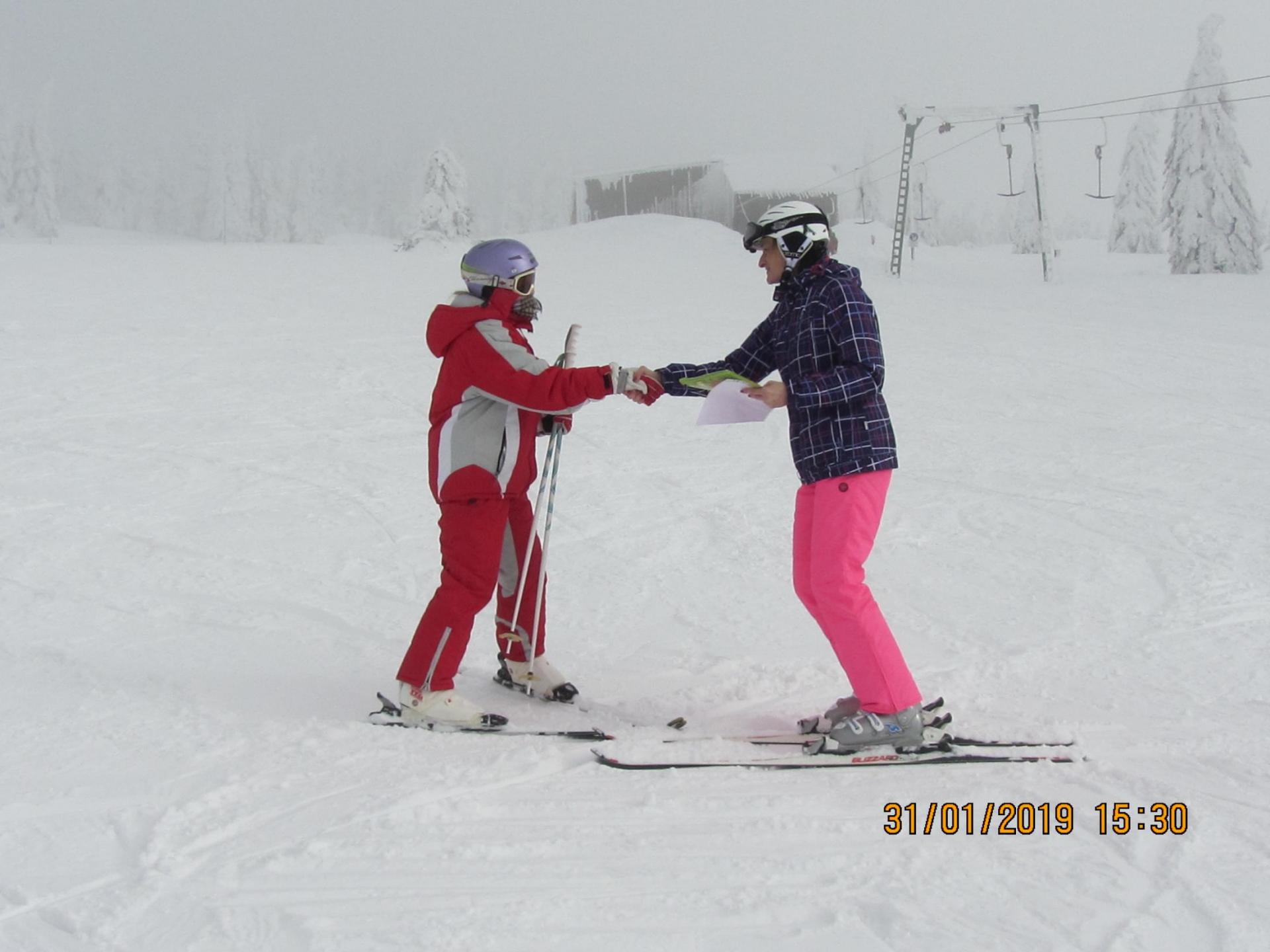 Letošní pololetní vysvědčení dostaly některé děti na horách na svahu ...musely si pro něj dojet na lyžích a zvládly to na jedničku .