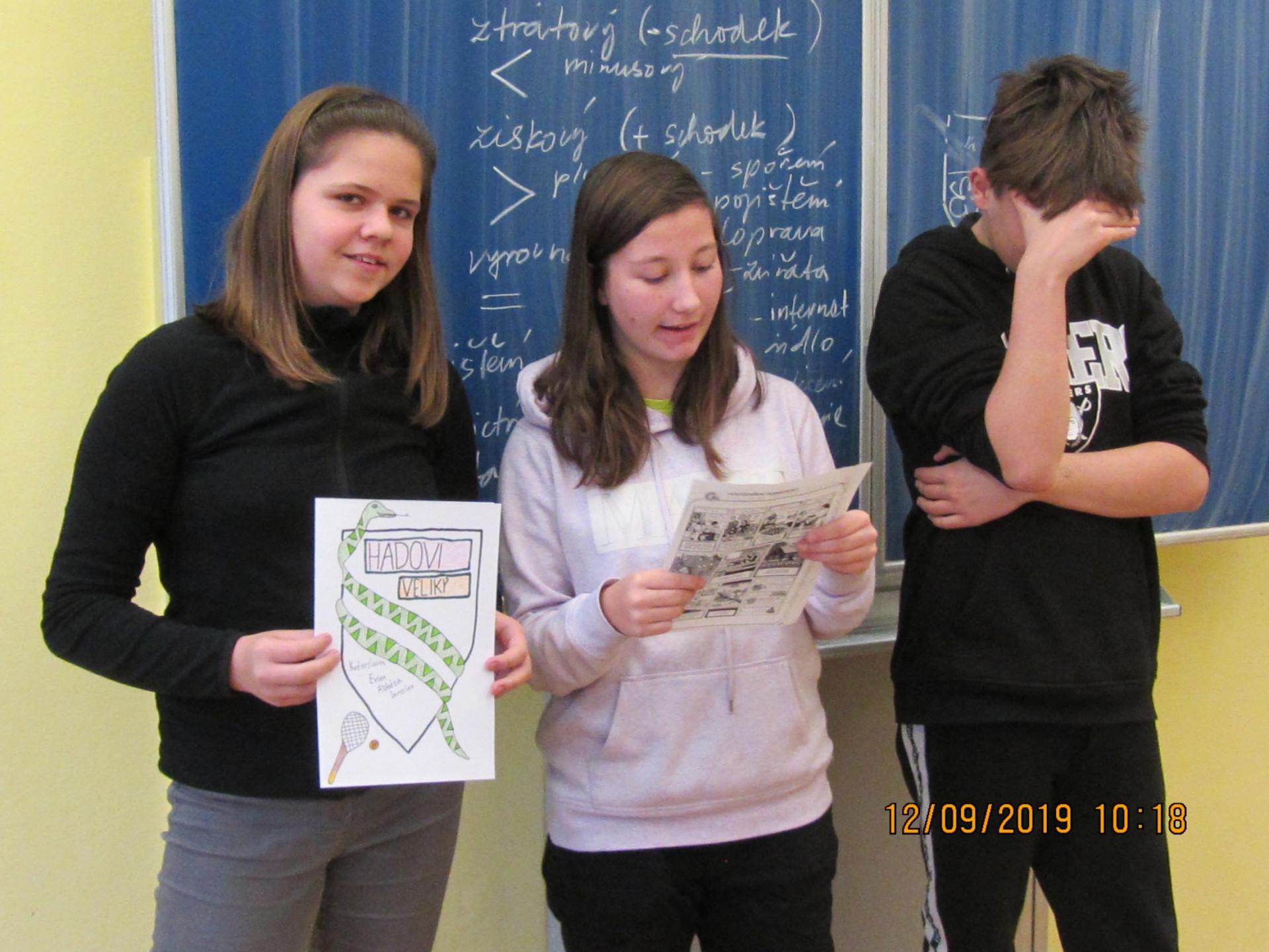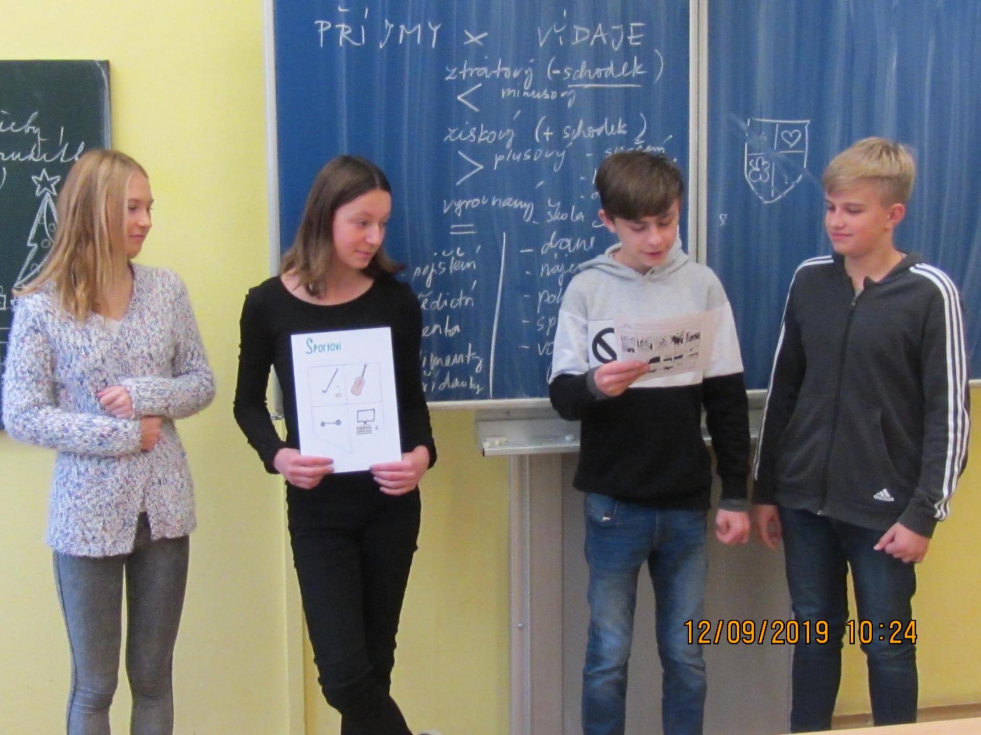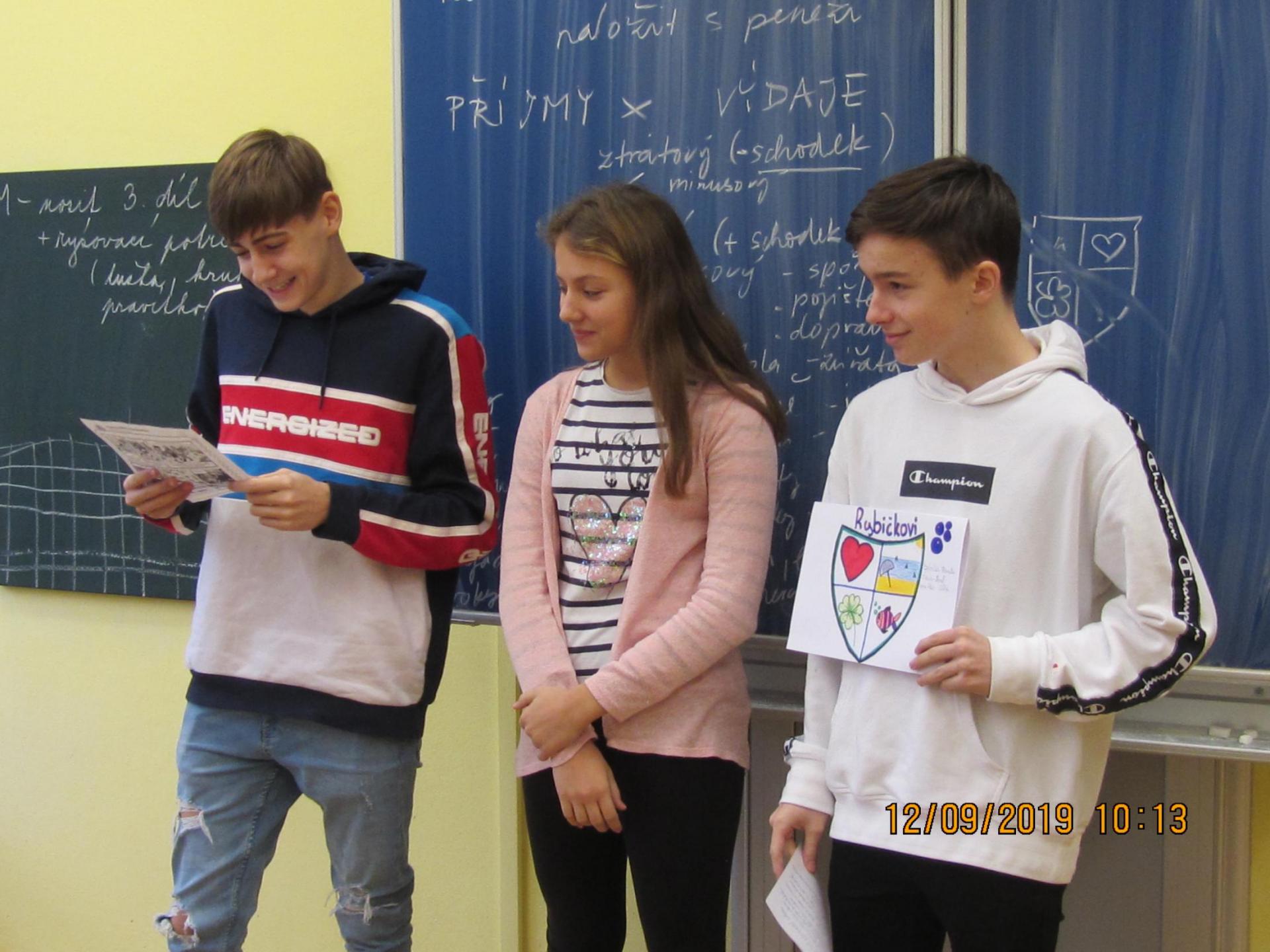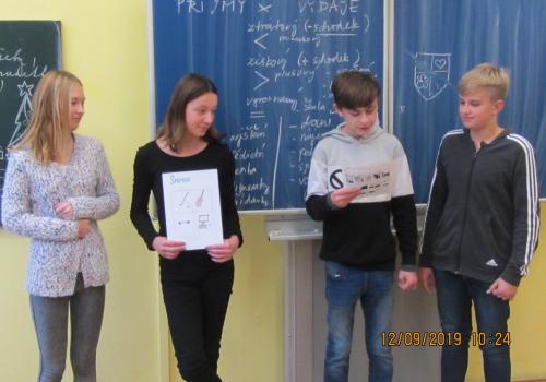Dne 9.12.2019 začal ve třídě 8.A projekt "Rozumíme penězům" zaměřený na rozvoj finanční gramotnosti. Během 8. a 9. ročníku proběhnou celkem 4 projektové dny zaměřené pokaždé na jiné téma. Prvním tématem bylo "HOSPODAŘENÍ DOMÁCNOSTI". Žáci měli zpočátku obavy, jak bude výuka probíhat a zda jim to k něčemu bude, avšak postupně se zapojovali do jednotlivých aktivit, zadané úkoly plnili skvěle, a i přes toto nejnáročnější téma se přenesli výborně a myslím, že si i nějaký ten poznatek odnesli !! Hned na začátku si žáci vybrali role v domácnosti, které jsou jim sympatické (matky, otcové, dcery, synové, babičky..) a dle výběru pak zjistili, do které předem namodelované domácnosti patří (buď jsou sociálně slabší domácnost, průměrná či bohatší), a v nich budou řešit různé finanční situace ze života. Dnes si vytvořili svůj rozpočet domácnosti a zjistili (nebo si připomněli), co všechno patří do příjmů a výdajů domácnosti. Cílem bylo rozpočet upravit tak, aby byly domácnosti v "plusu", tedy aby příjmy převyšovaly nad výdaji. Vymysleli si i své názvy domácností a erby, takže představuji: HAVLÍČKOVI, RYBIČKOVI, HADOVI+VELIKÝ, SPORTOVI, KOSTÍKOVI, FLEXIBILNÍ. Ohlédnutí za projetkovým dnem viz foto.
