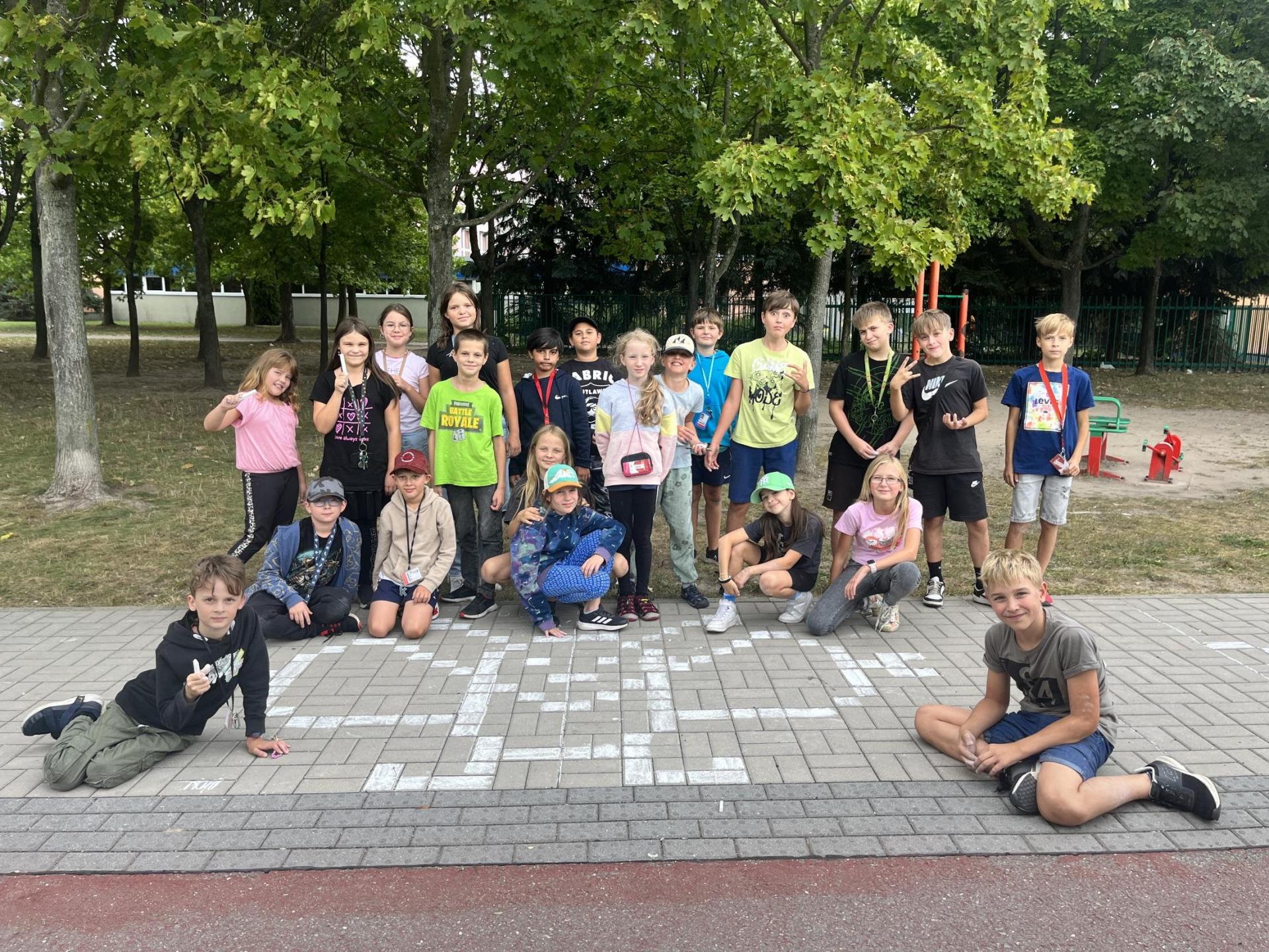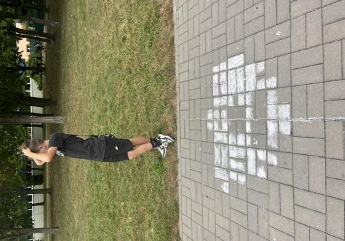 Začali jsme hudebkou, kterou jsme zaujali i kolemjdoucí, když jsme seděli v kruhu s reprákem uprostřed a zpívali jsme písničky. Pak jsme si zahráli rytmické pexeso, které bychom hráli až do večera. Potom jsme v rámci tvořivek kreslili osově souměrné obrázky. Jeden vymyslel a druhý zrcadlově dokreslil. Ani jsme netušili, že to vlastně bylo učivo z geometrie, které jsme si takto zopakovali.