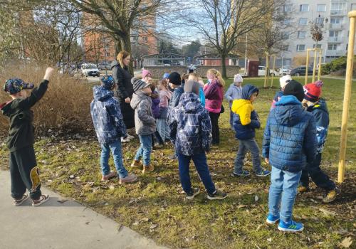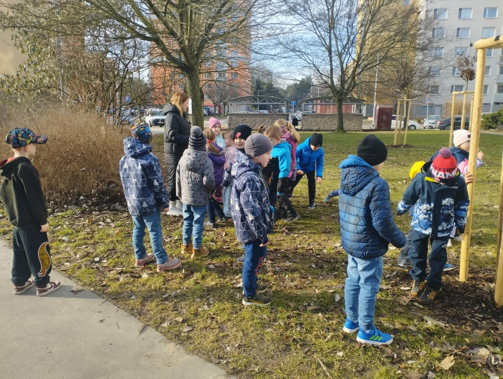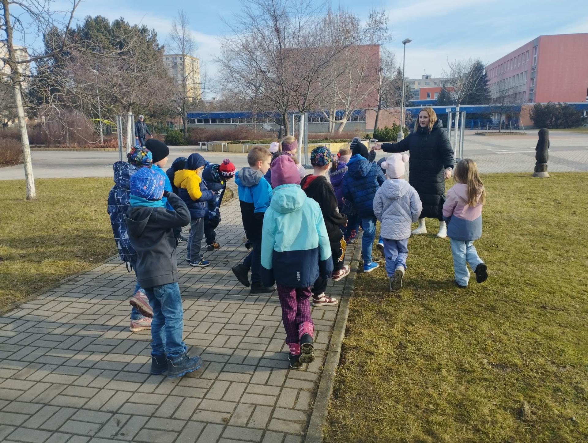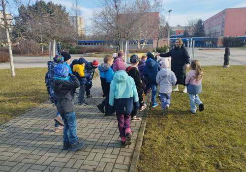 Následovala procházka, která ale nebyla jen obyčejnou cestou. Po trase na děti čekaly pohybové úkoly – skákání, běh, dřepy i jednoduché otázky. Děti si tak vyzkoušely, že pohyb může být zábavný a že zdravý životní styl není jen o jídle, ale také o pravidelném cvičení a pobytu venku. Procházku jsme zakončili na hřišti, kde jsme si společně zaběhali a užili si radost z pohybu.