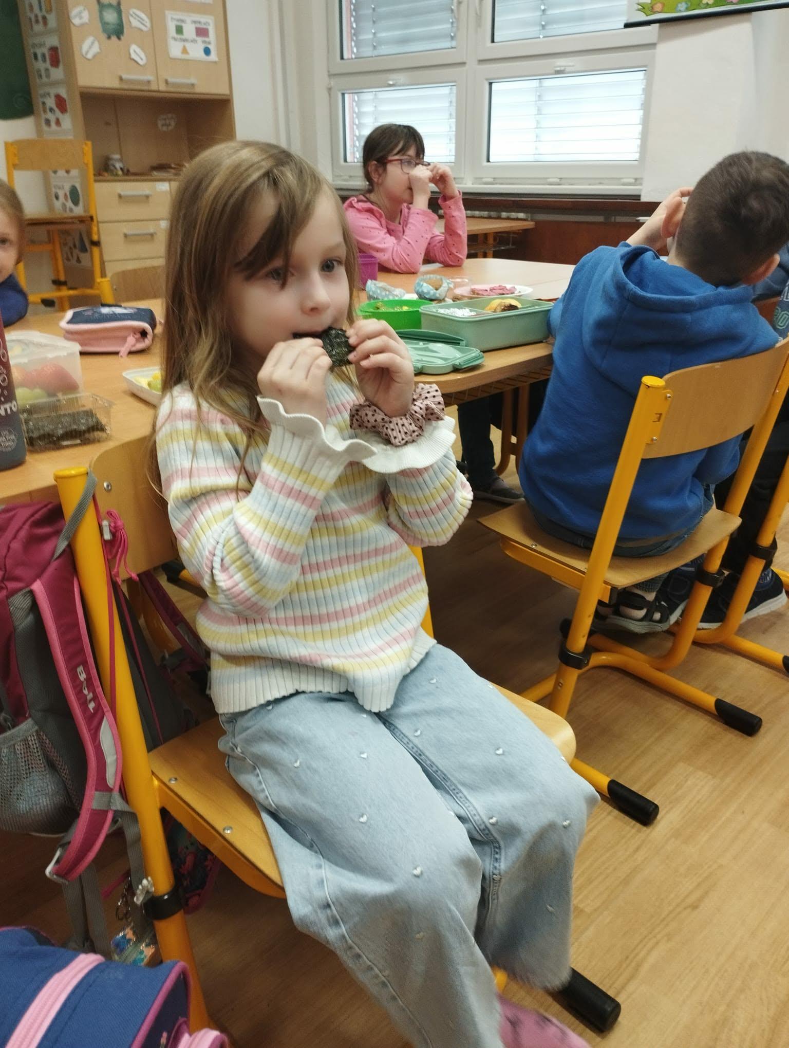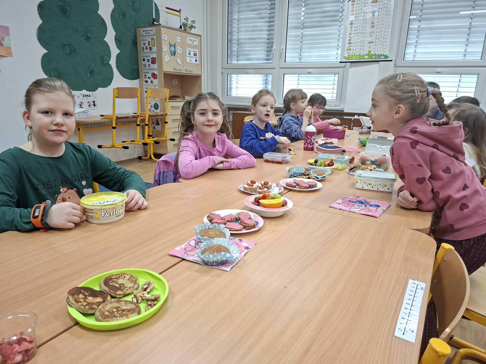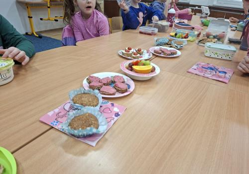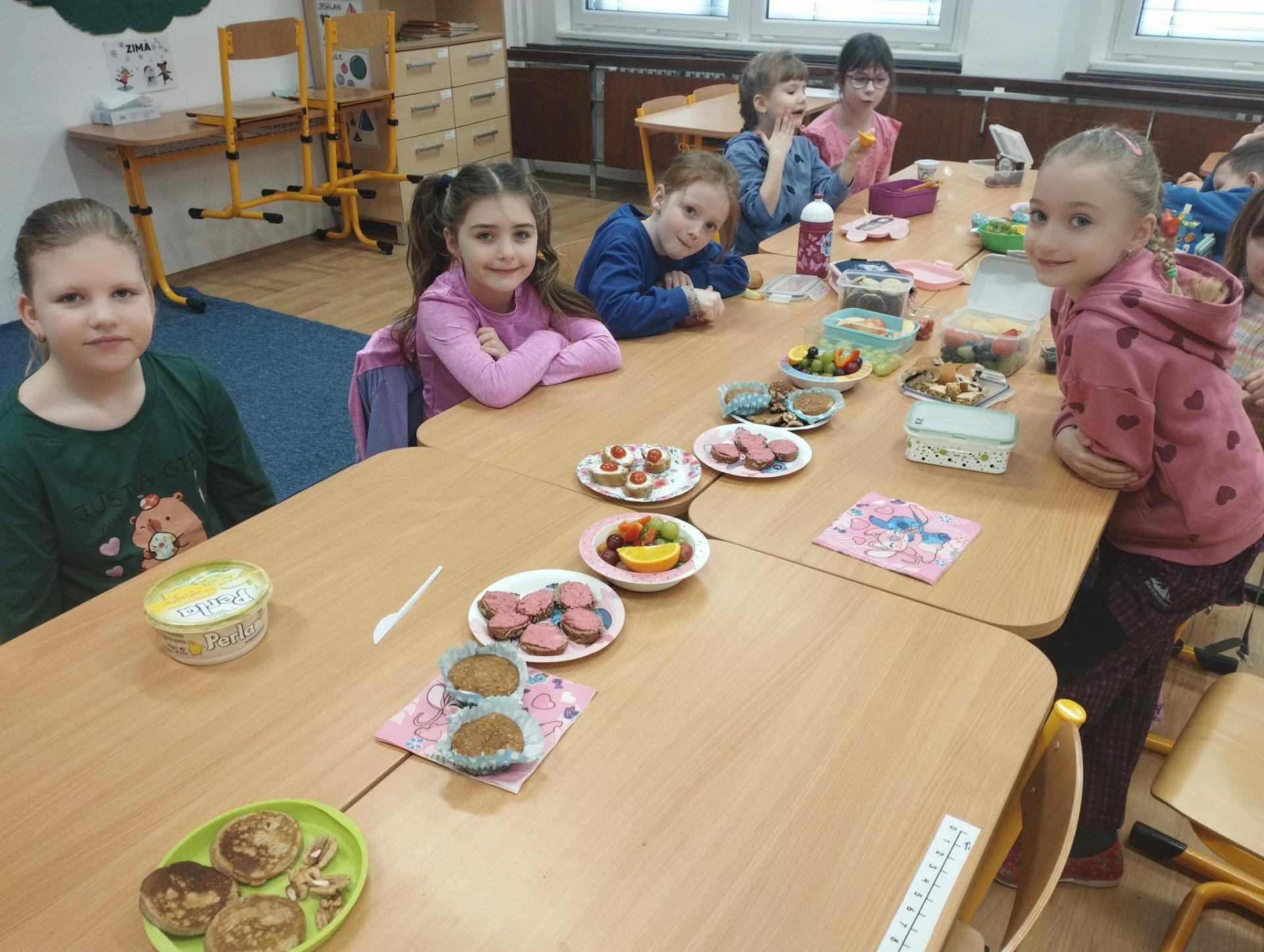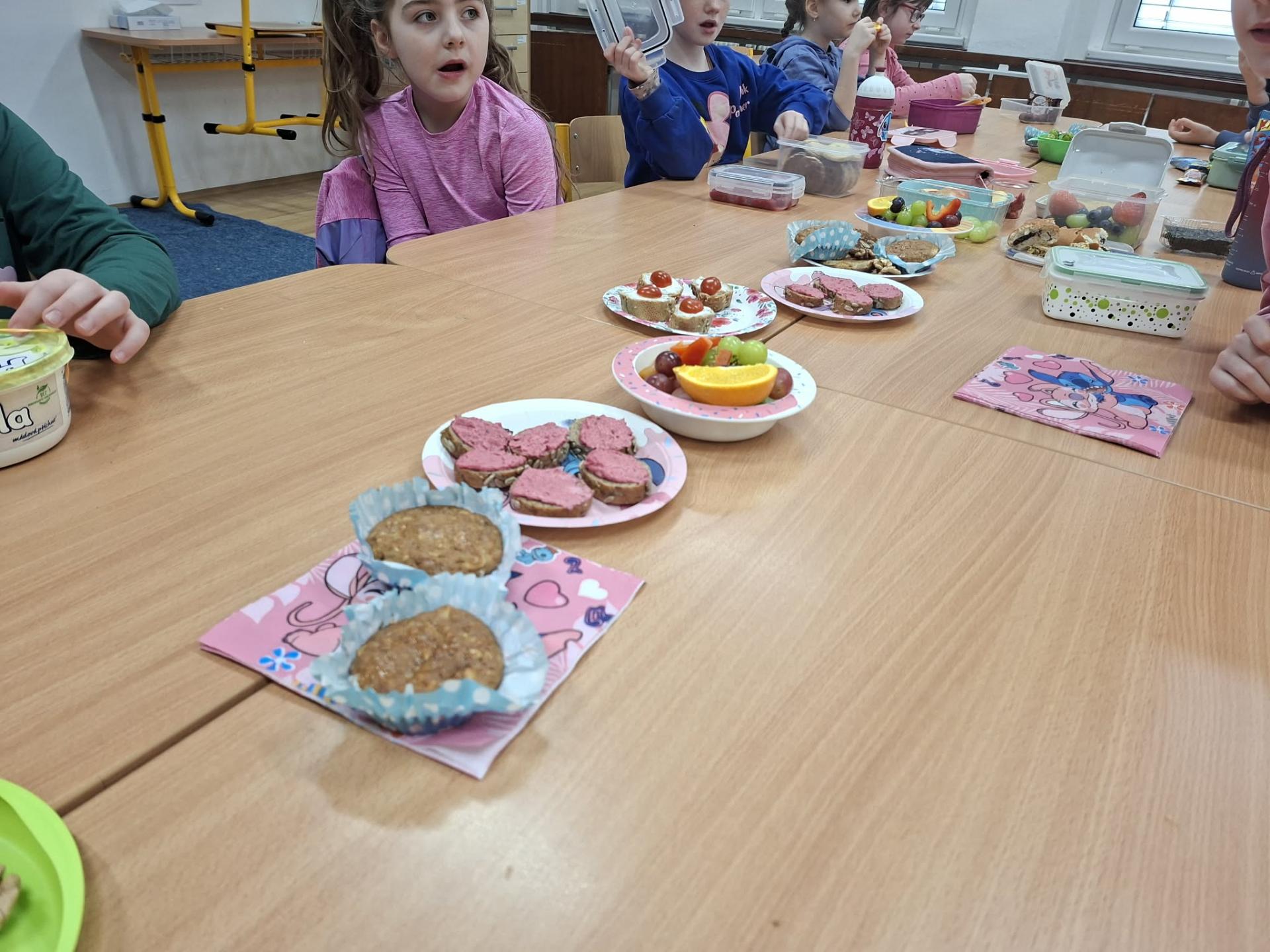 Po pohádce jsme si dali společnou zdravou svačinku. Povídali jsme si o tom, co všechno našemu tělu prospívá, a připomněli jsme si, že ovoce, zelenina a dostatek tekutin jsou důležitou součástí každého dne.