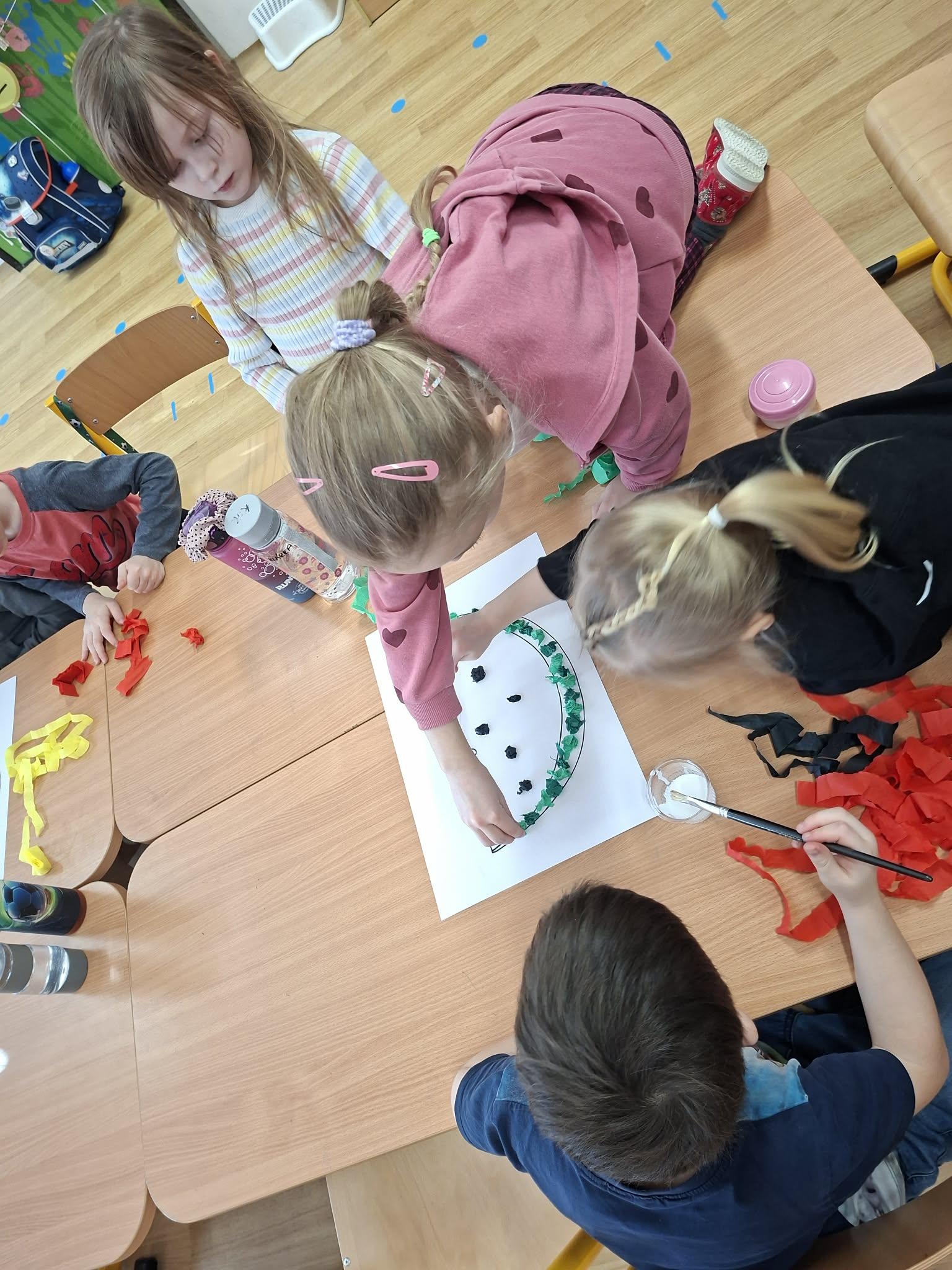 Celý den jsme uzavřeli tvořivou aktivitou – výrobou ovoce formou mozaiky. Děti vytvořily nádherné ovocné obrázky. Procvičily si tak nejen jemnou motoriku, ale i spolupráci a kreativitu.