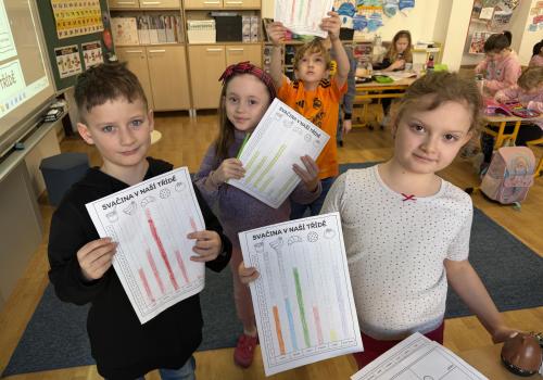 V rámci celoškolního projektu Zdravý životní styl jsme si ukazovali svačiny, probírali jsme, co je zdravé a co ne, poslouchali zdravé pohádky, tvořili diagramy, třídili potraviny a v pátek jsme se vydali nasbírat pár kilometrů do virtuálního závodu.