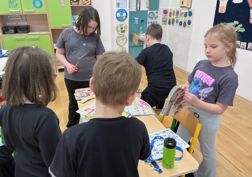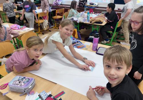 Jsem ráda, jak se dokázaly domluvit a vytvořit krásné koláže. Za svou práci a aktivitu dostaly také malou odměnu. Projektový den jsme si opravdu užili.