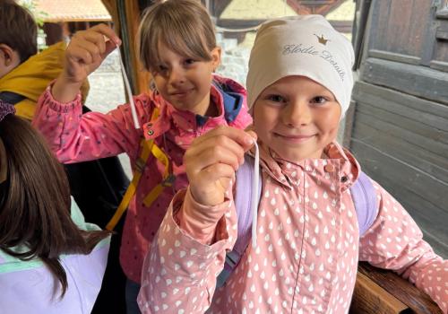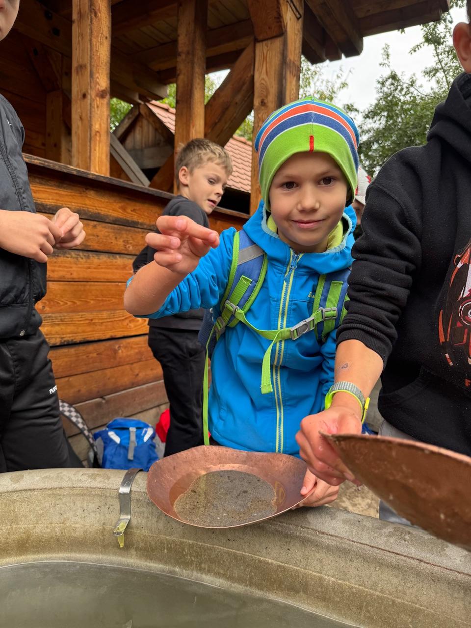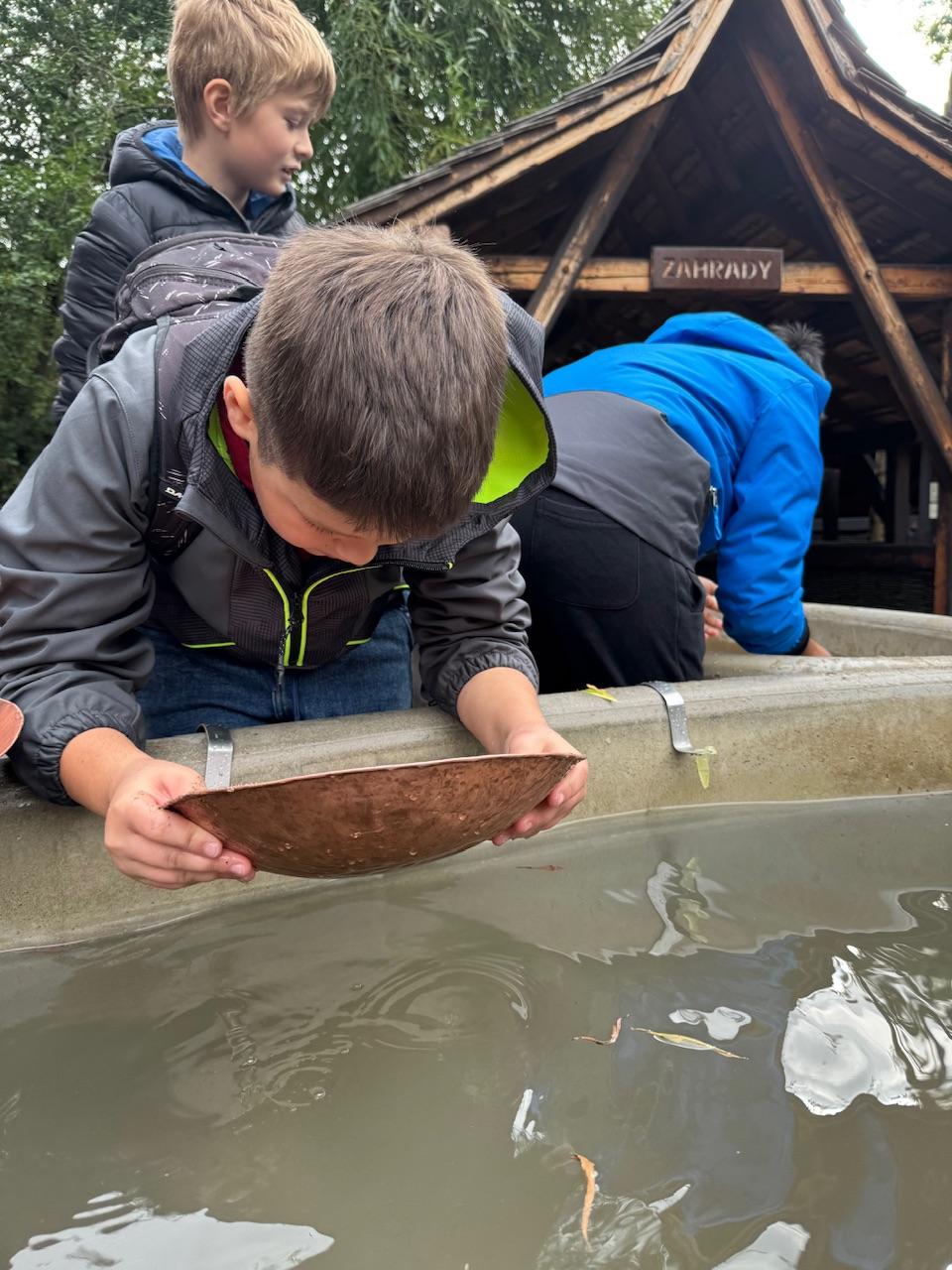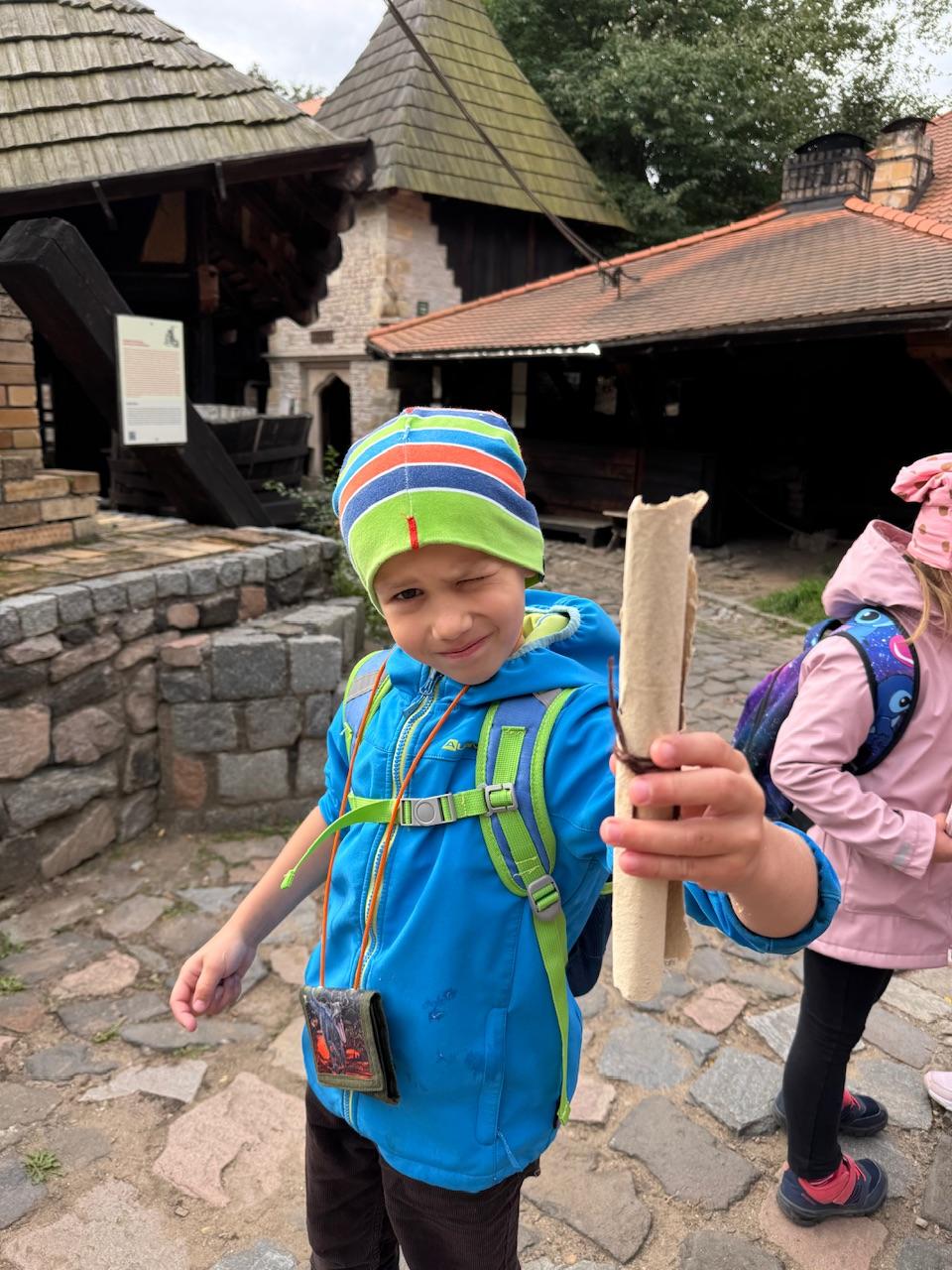 V centru řemesel jsme si nejprve vyměnili koruny za groše. V historické vesnici jsme si vyzkoušeli různá řemesla. Největší úspěch mělo rýžování zlata, výroba papíru, svíček a mýdel, zdobení perníčků. Zaujala nás také drátenická a hrnčířská dílna. V hodovně si někteří koupili něco dobrého na zub. Vyběhali jsme se v bludišti, v zahradách jsme si prohlédli moderní umění, vyhlídku a poznávali bylinky. Viděli jsme velké množství hus a dalších zvířat. Celá exkurze se povedla, včetně počasí.